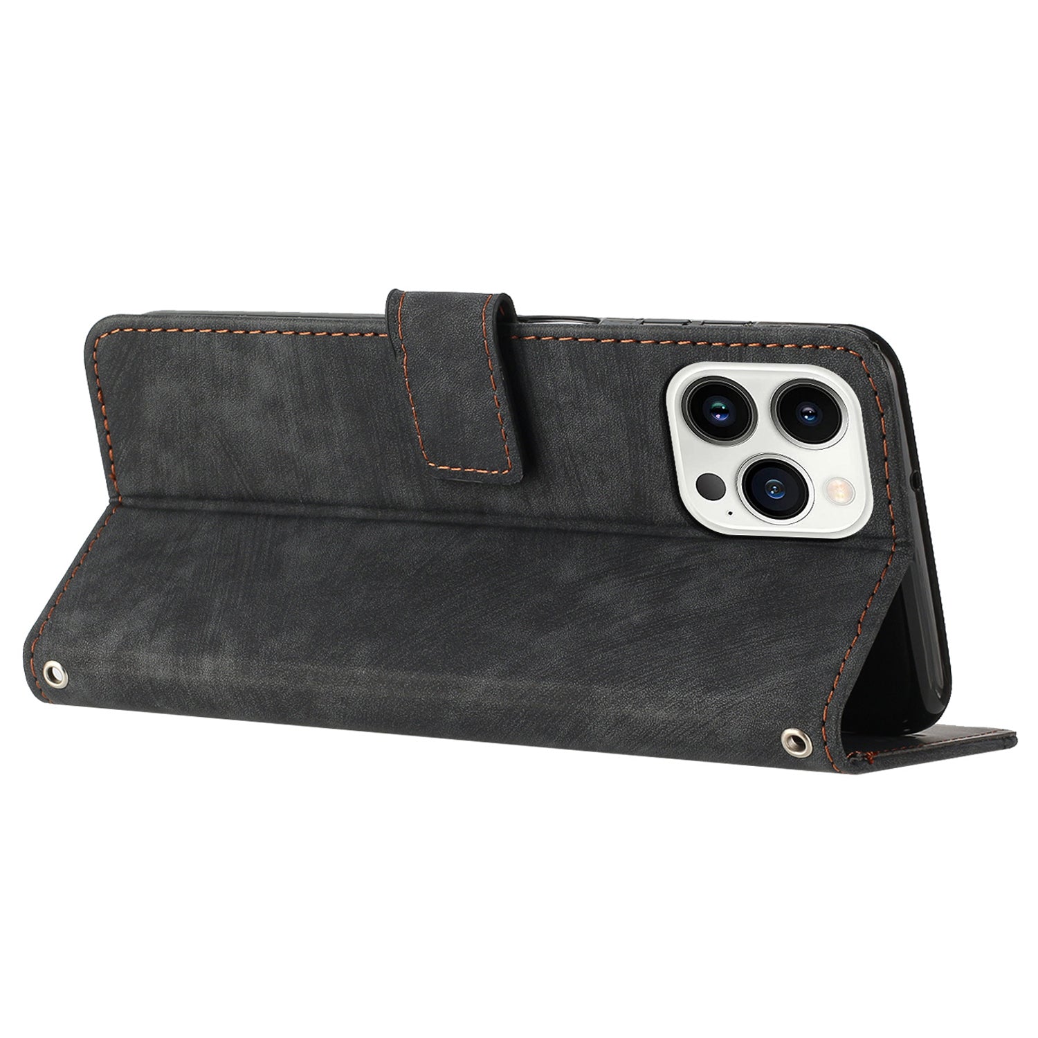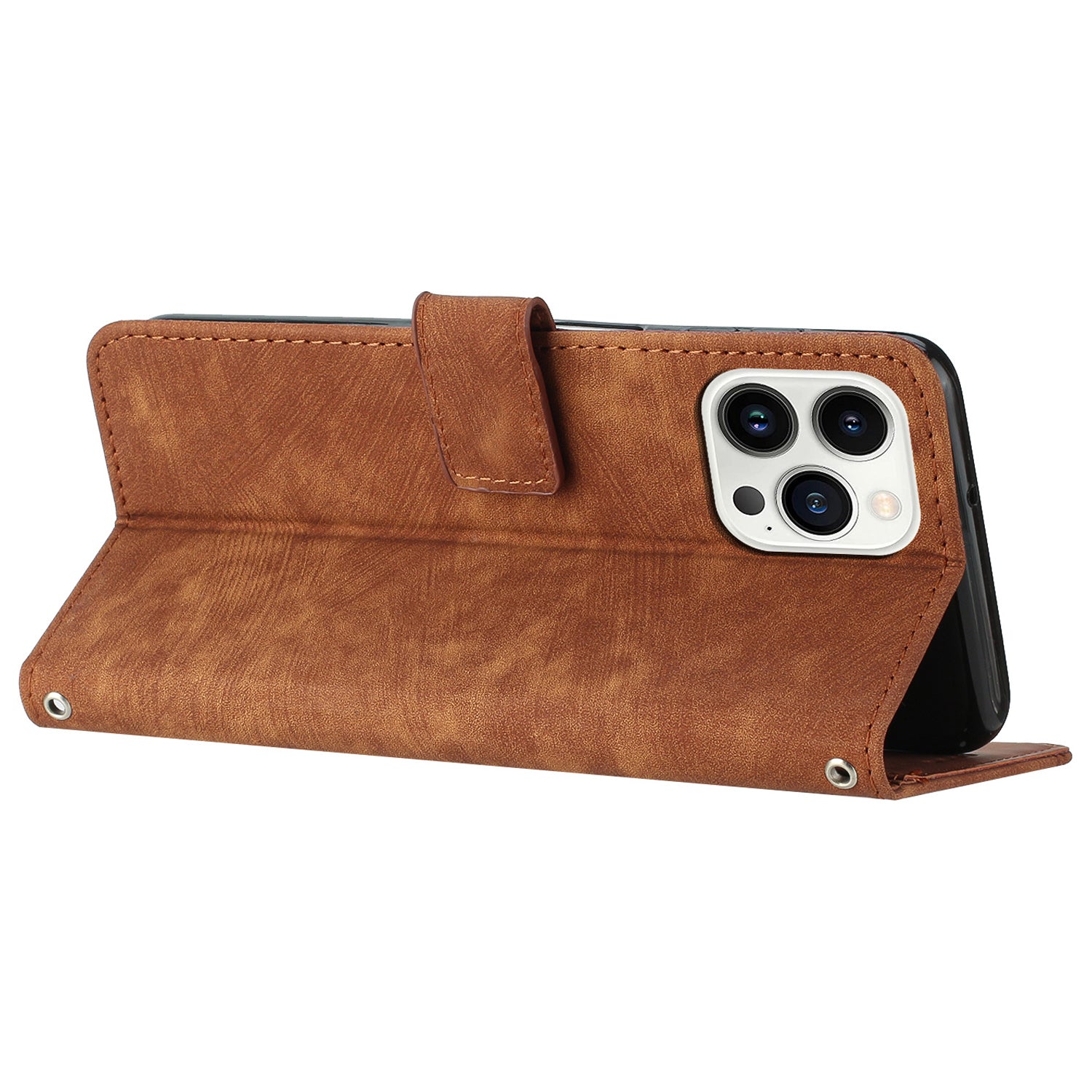 For iPhone 14 Pro PU Leather Skin-touch Protective Cover Lines Imprinted Wallet Stand Folio Phone Case