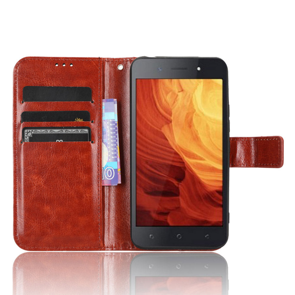 For Itel A18 Crazy Horse Texture Wallet Case PU Leather Stand Folio Flip Phone Cover