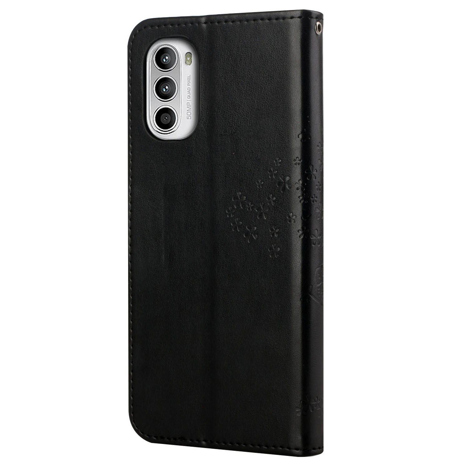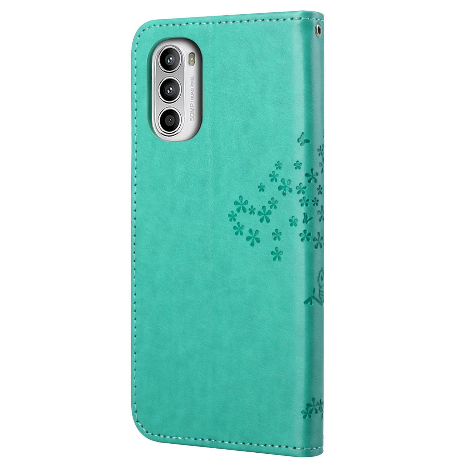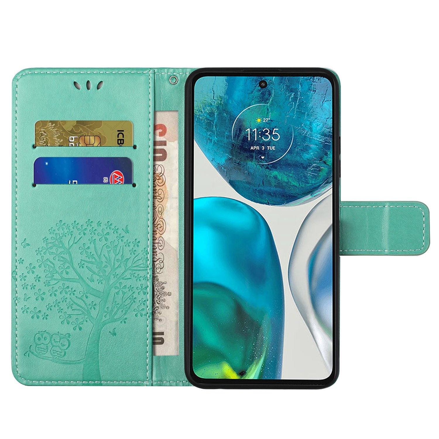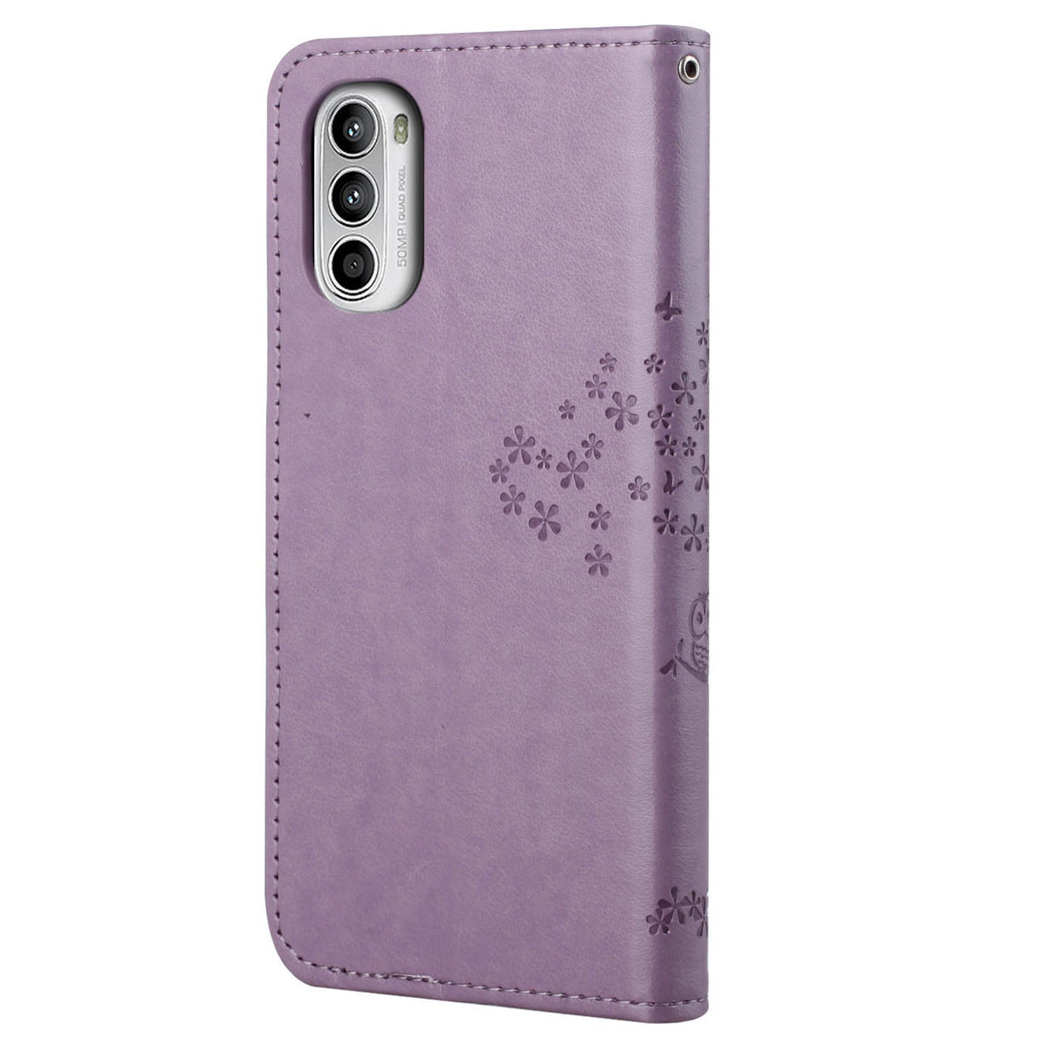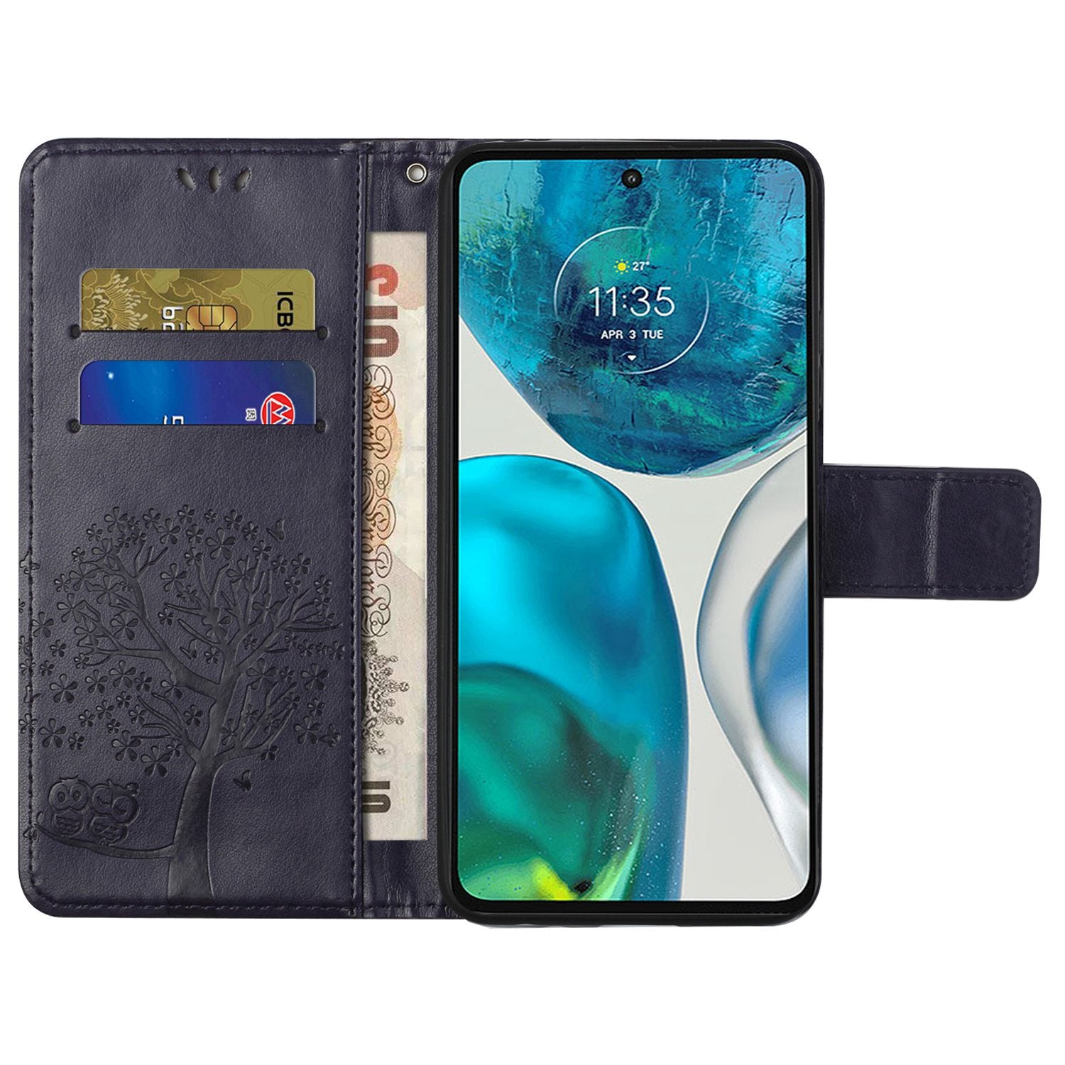 For Motorola Moto G52 4G Anti-scratch Anti-drop PU Leather Phone Cover Owl Tree Pattern Imprinted Wallet Style Stand Case with Wrist Strap