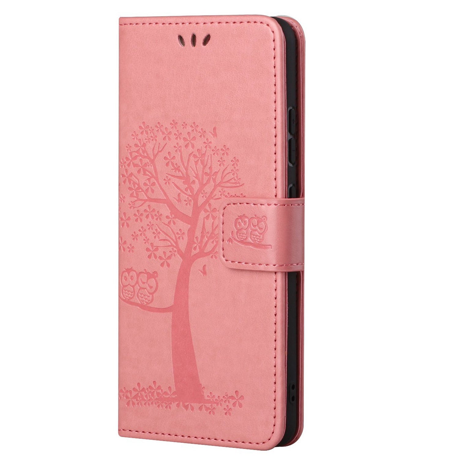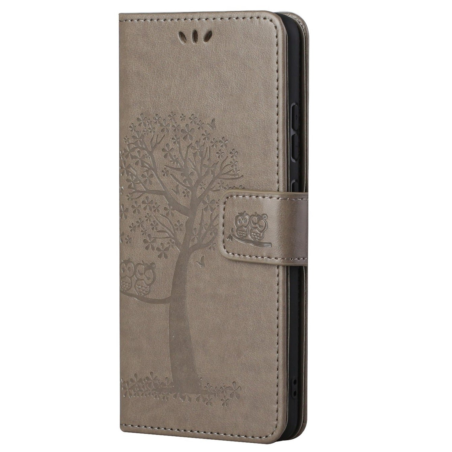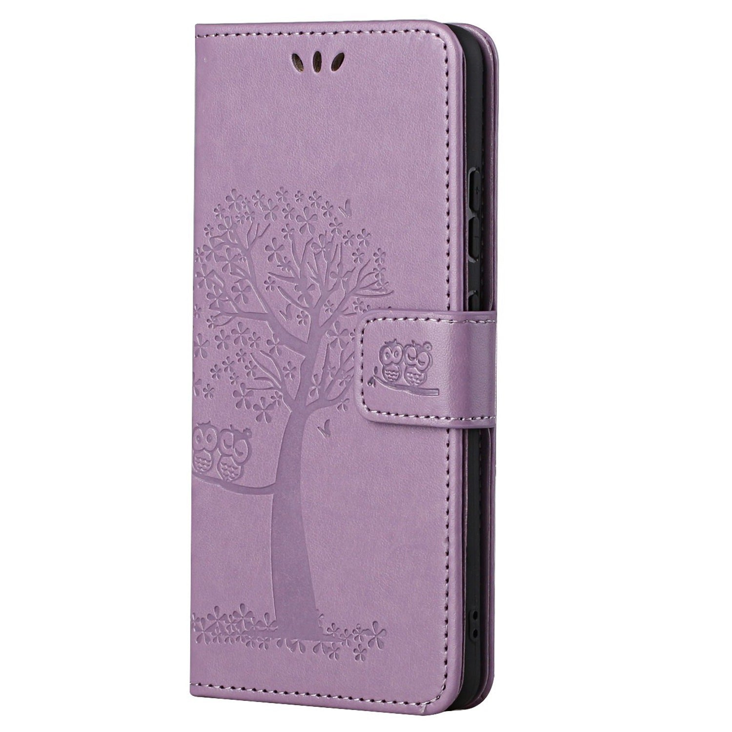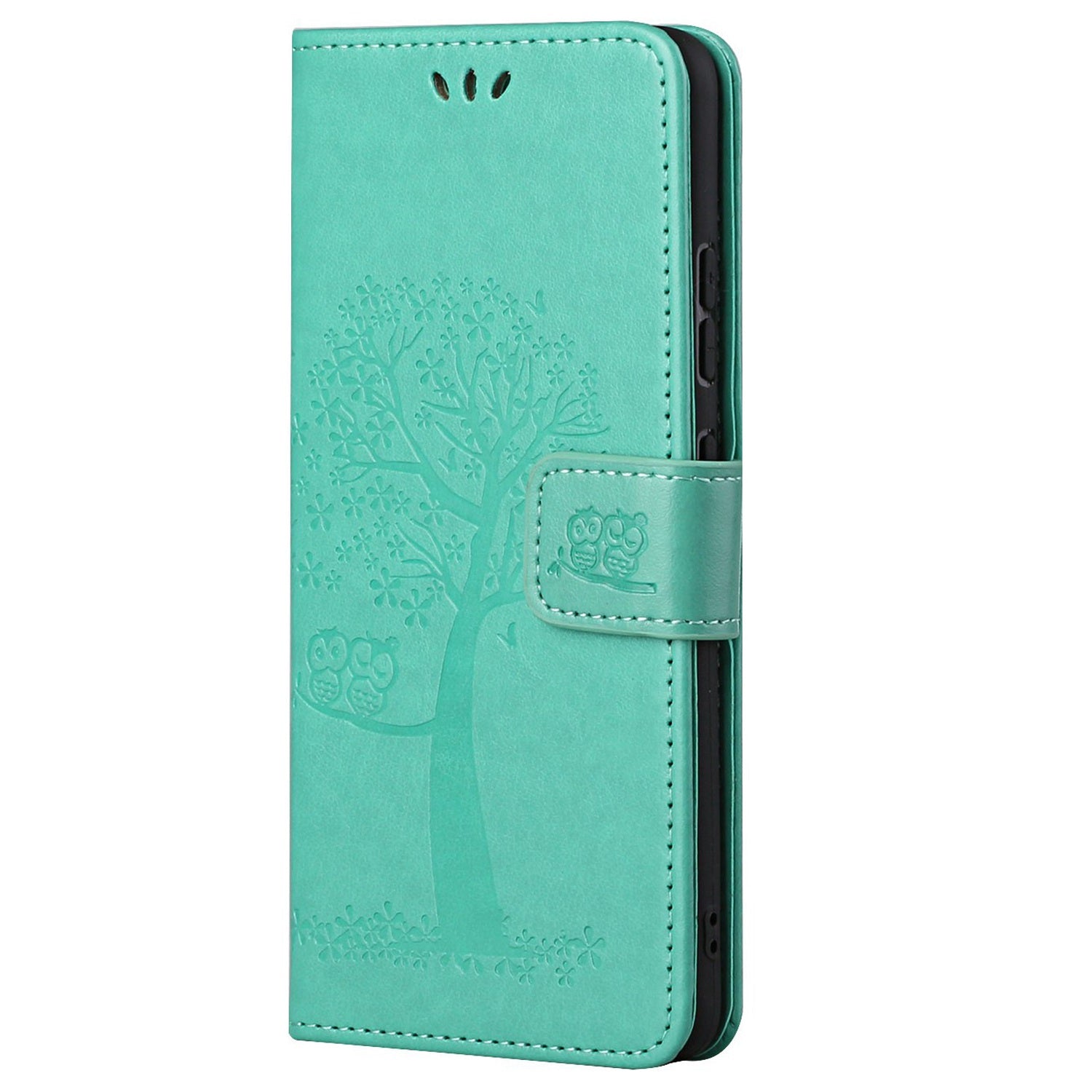 For Motorola Moto G52 4G Anti-scratch Anti-drop PU Leather Phone Cover Owl Tree Pattern Imprinted Wallet Style Stand Case with Wrist Strap