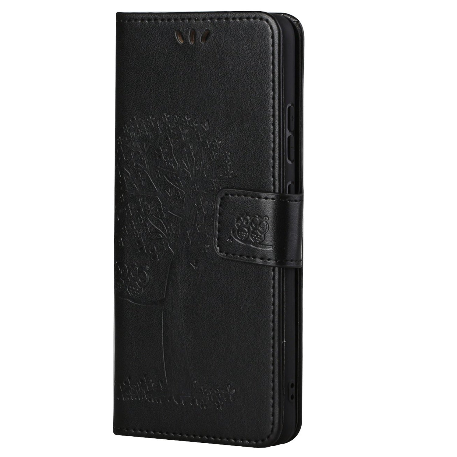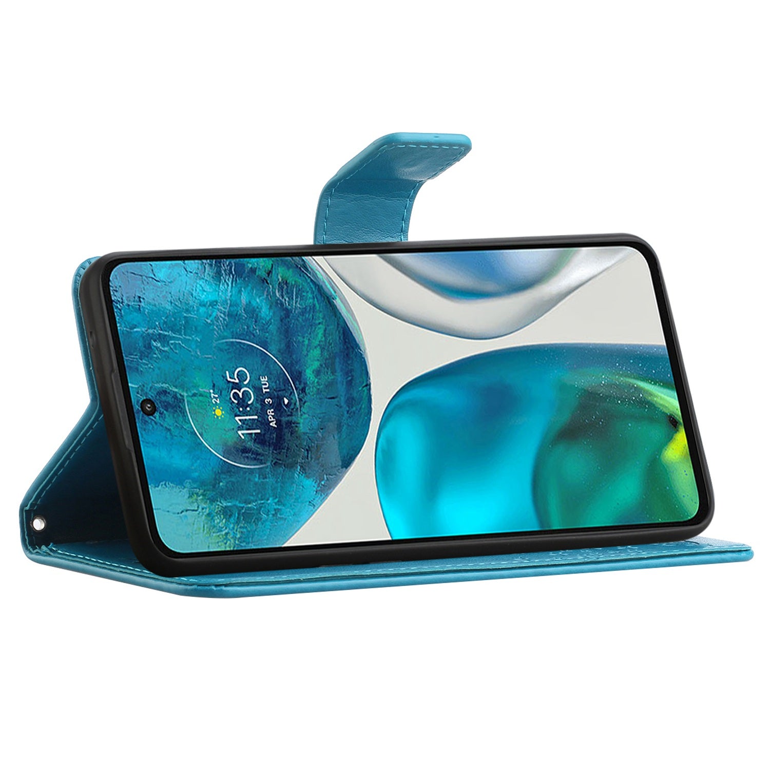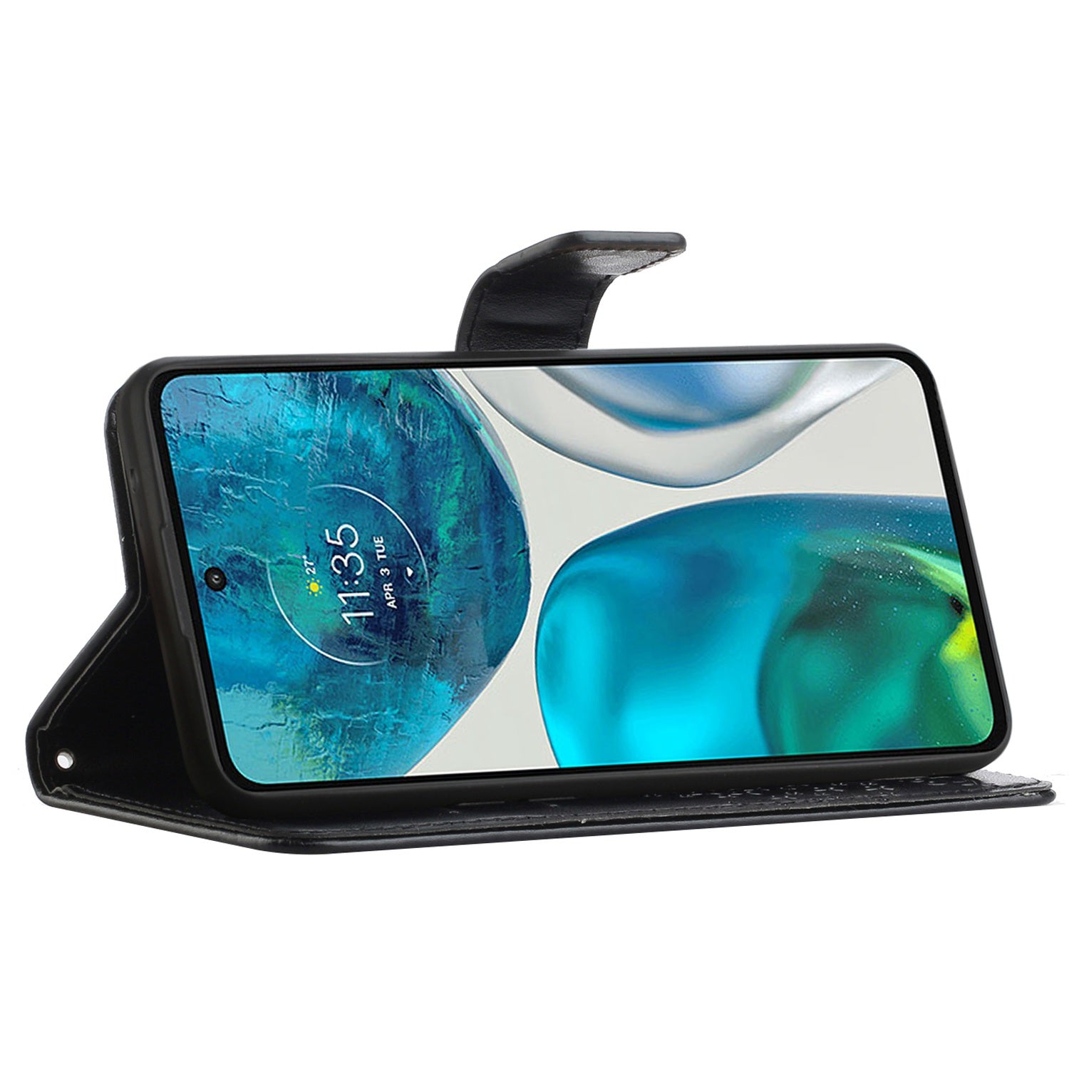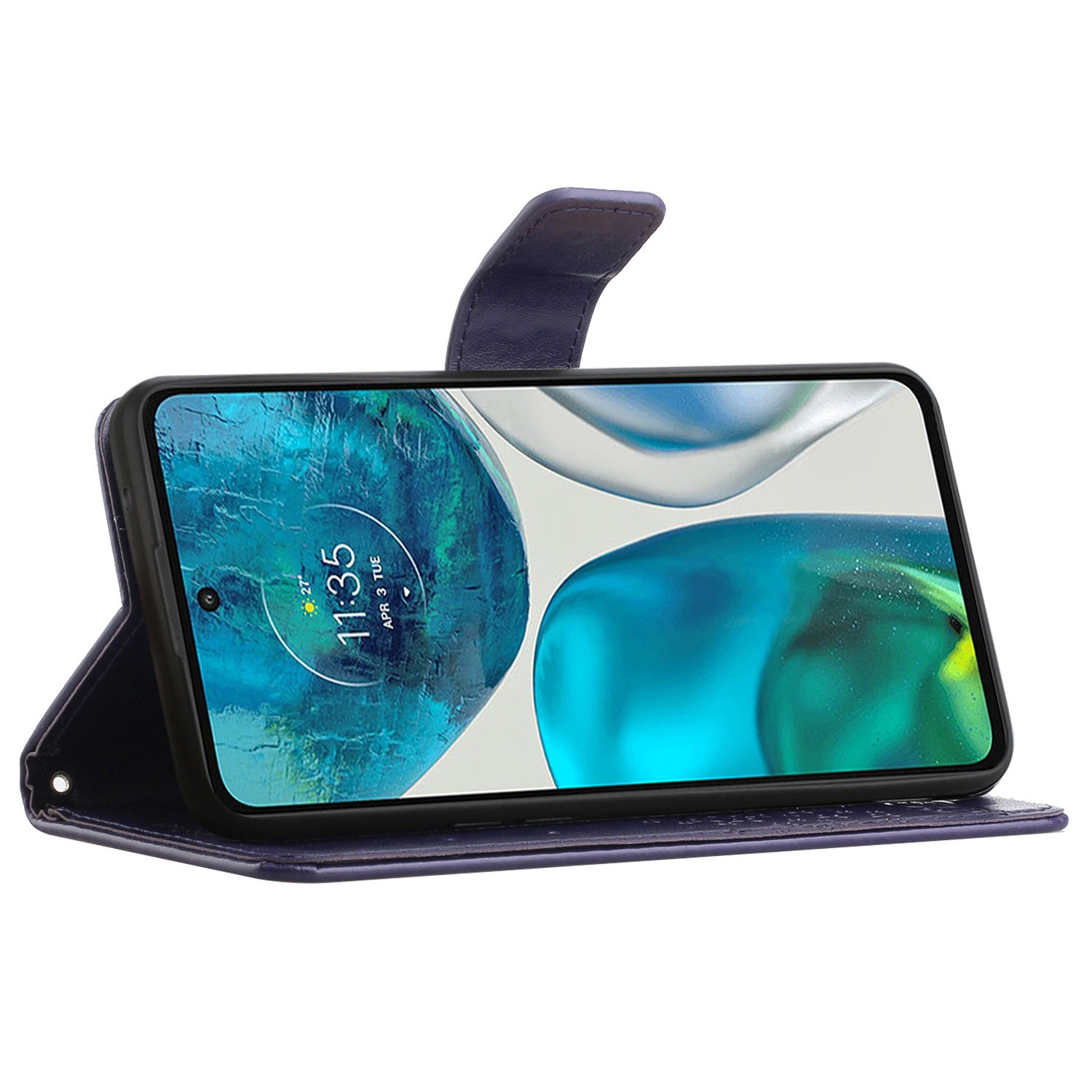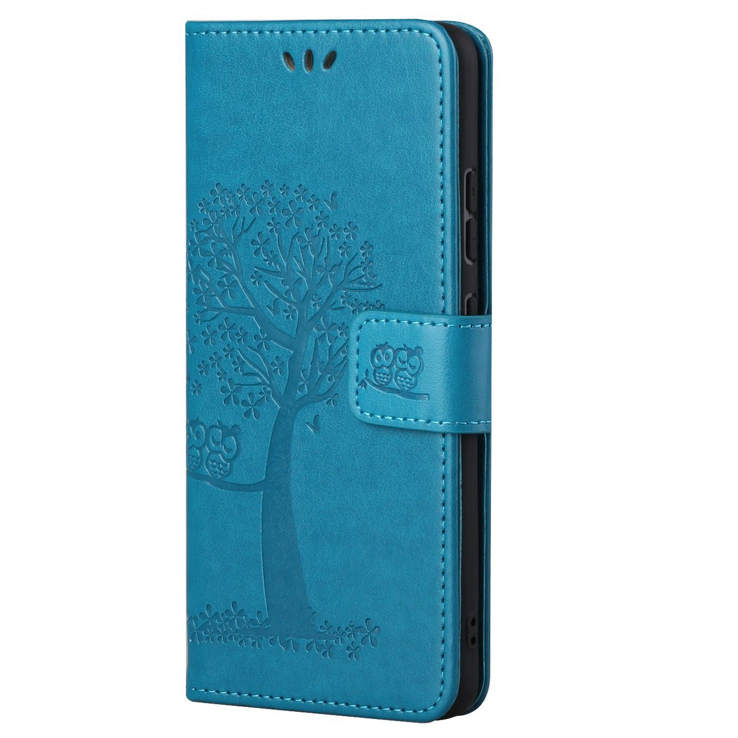 For Motorola Moto G52 4G Anti-scratch Anti-drop PU Leather Phone Cover Owl Tree Pattern Imprinted Wallet Style Stand Case with Wrist Strap