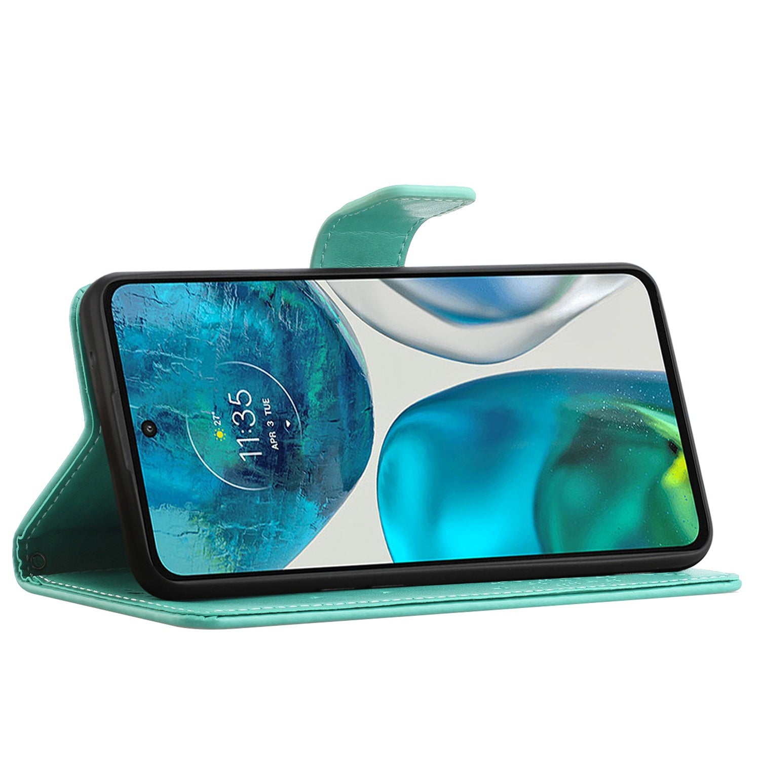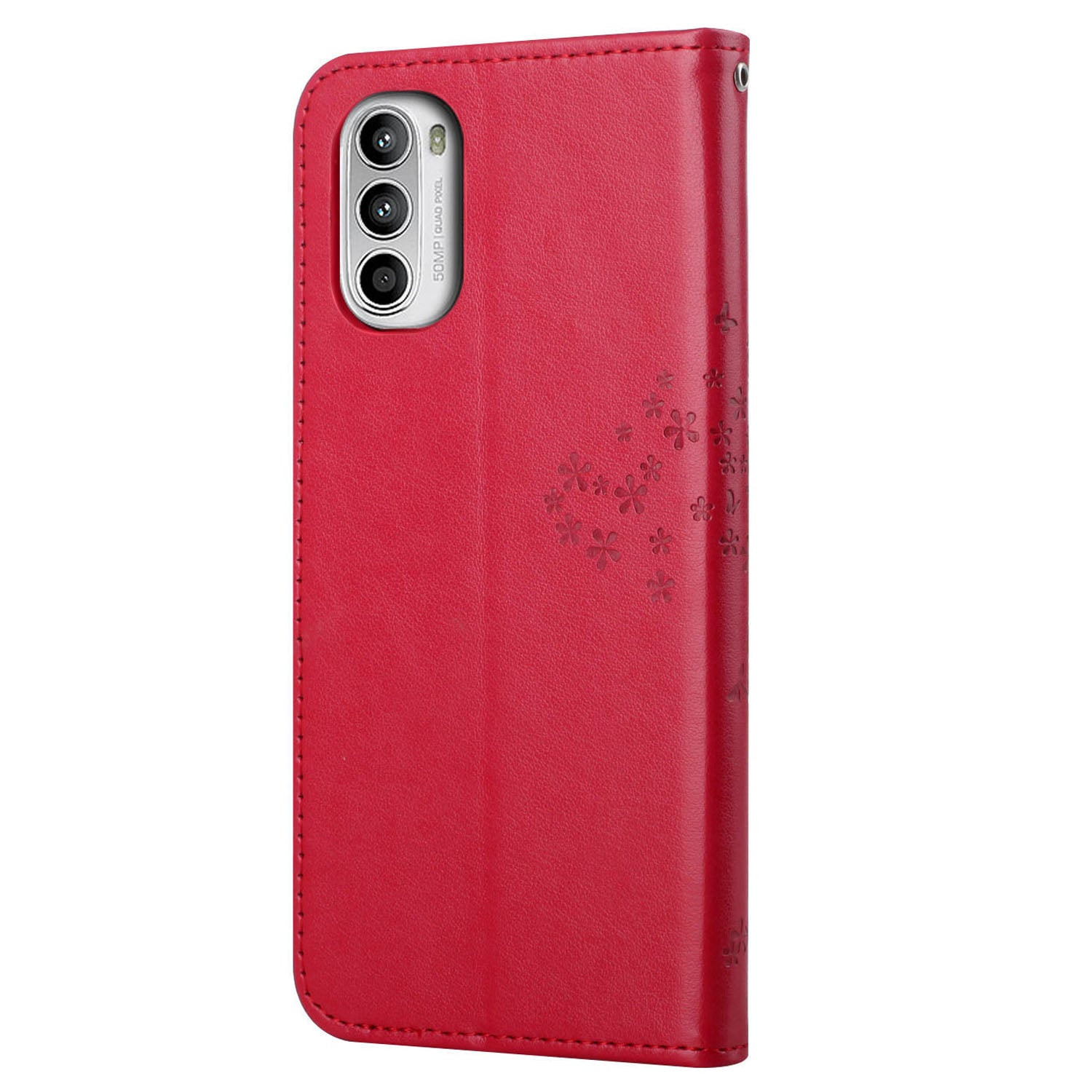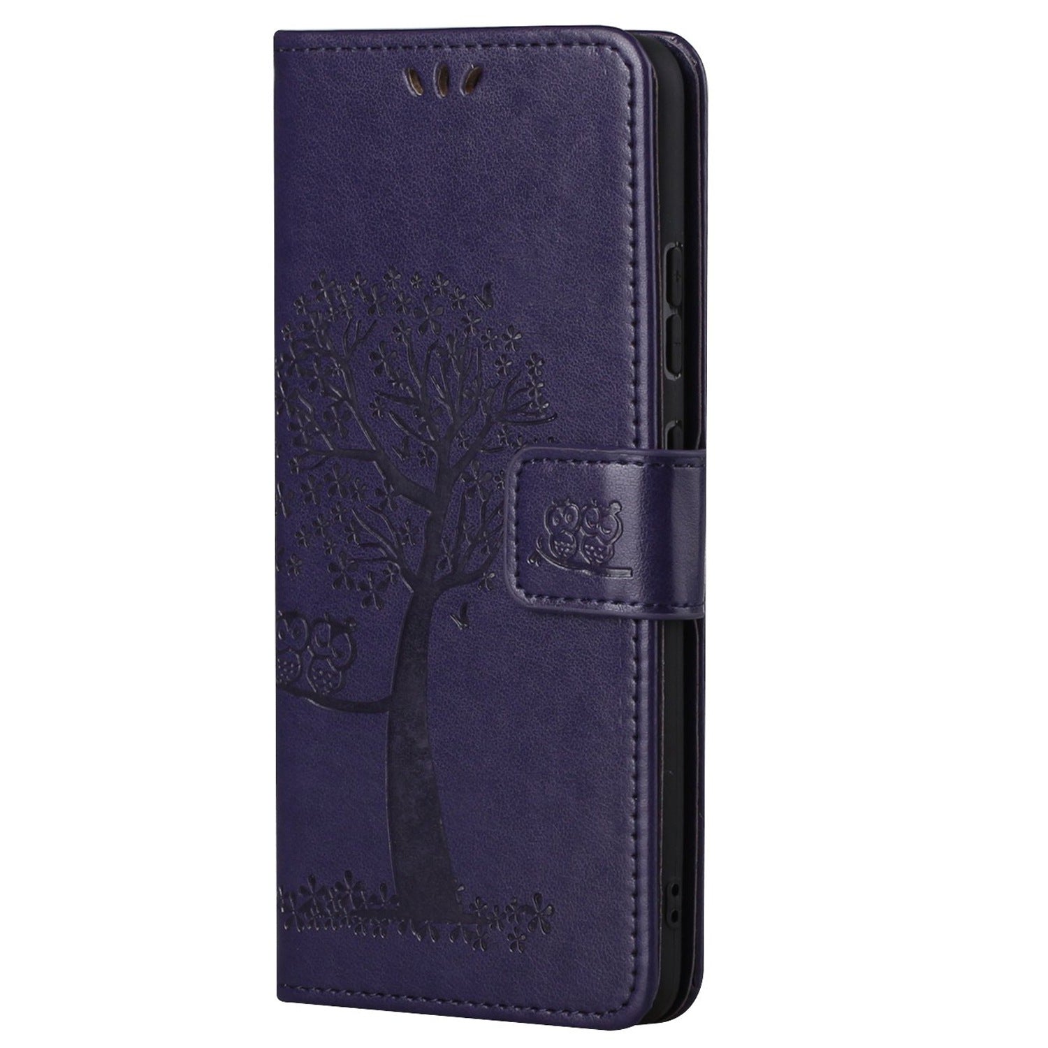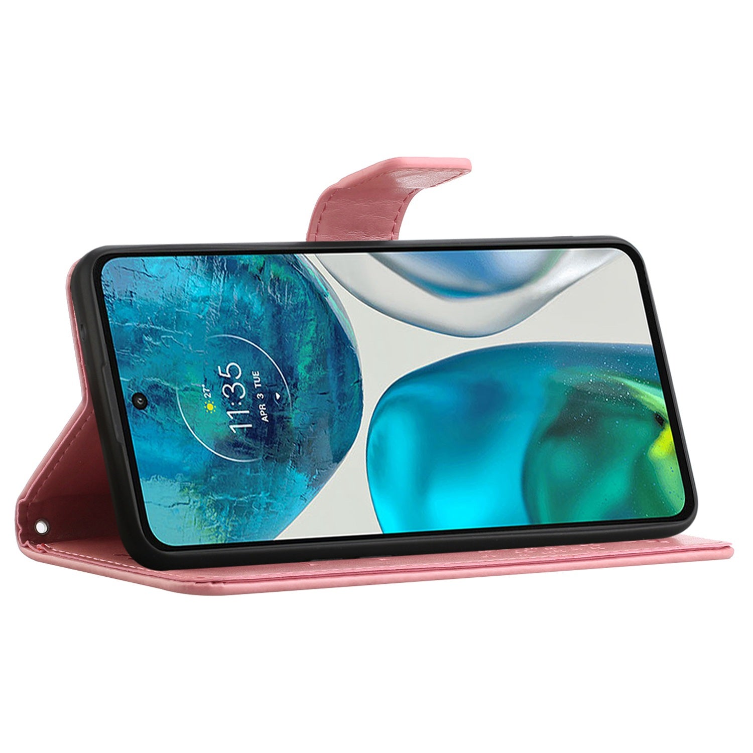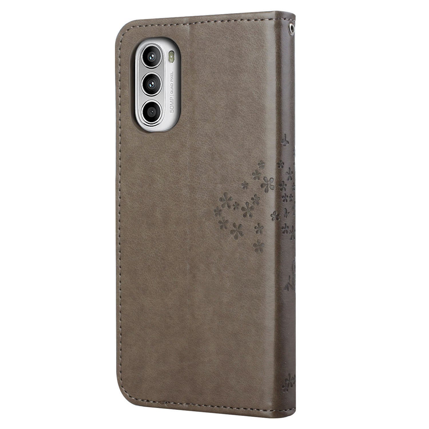 For Motorola Moto G52 4G Anti-scratch Anti-drop PU Leather Phone Cover Owl Tree Pattern Imprinted Wallet Style Stand Case with Wrist Strap