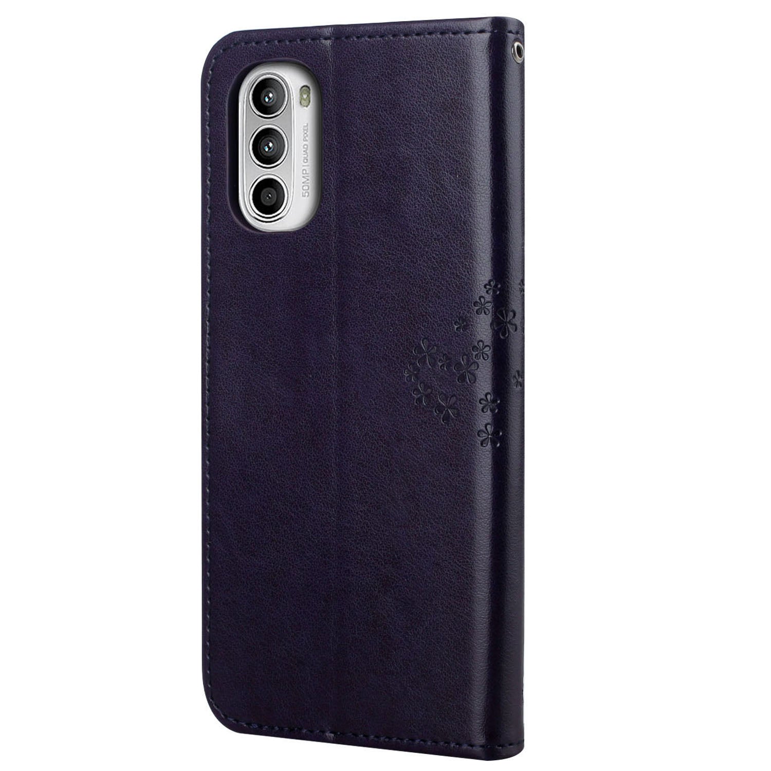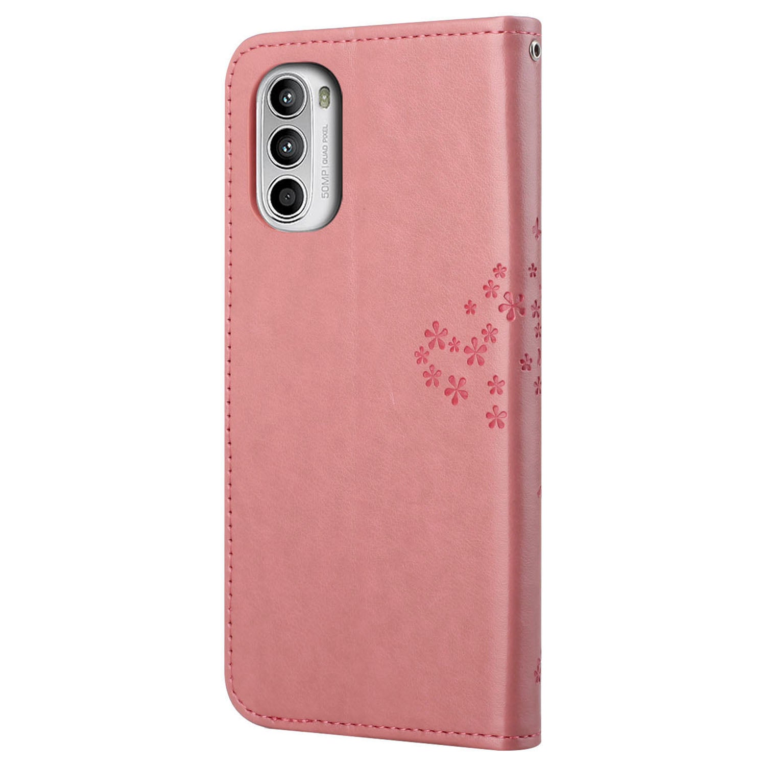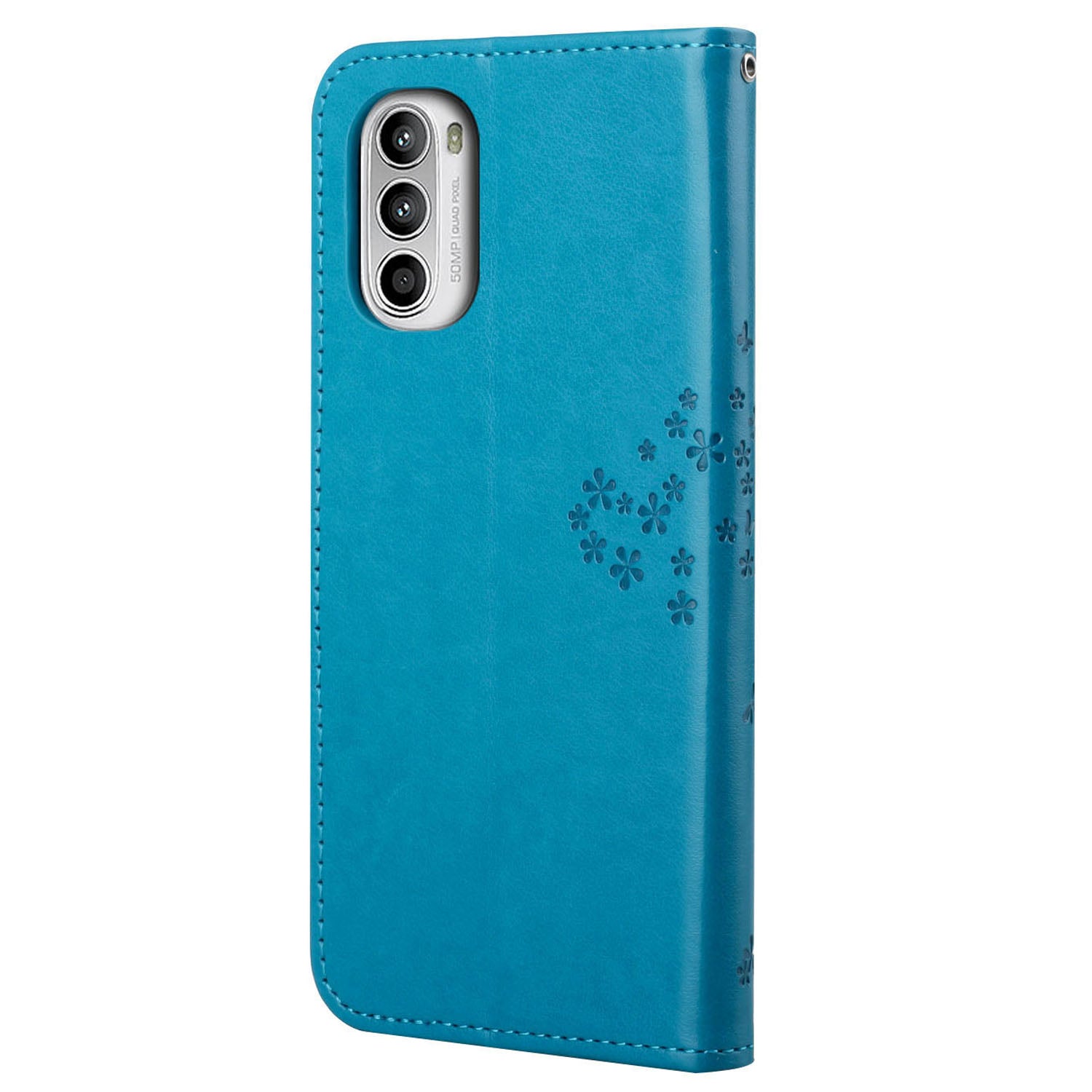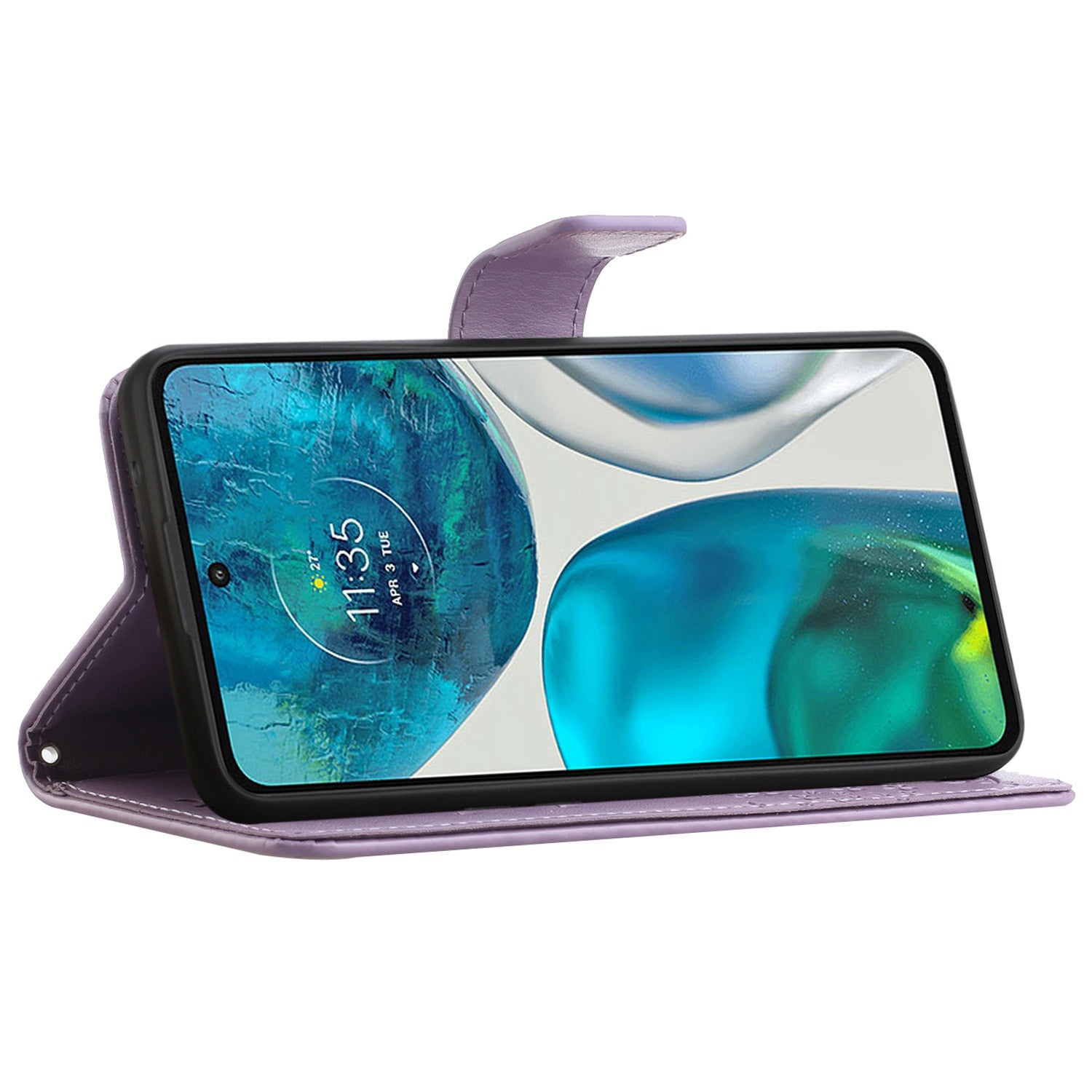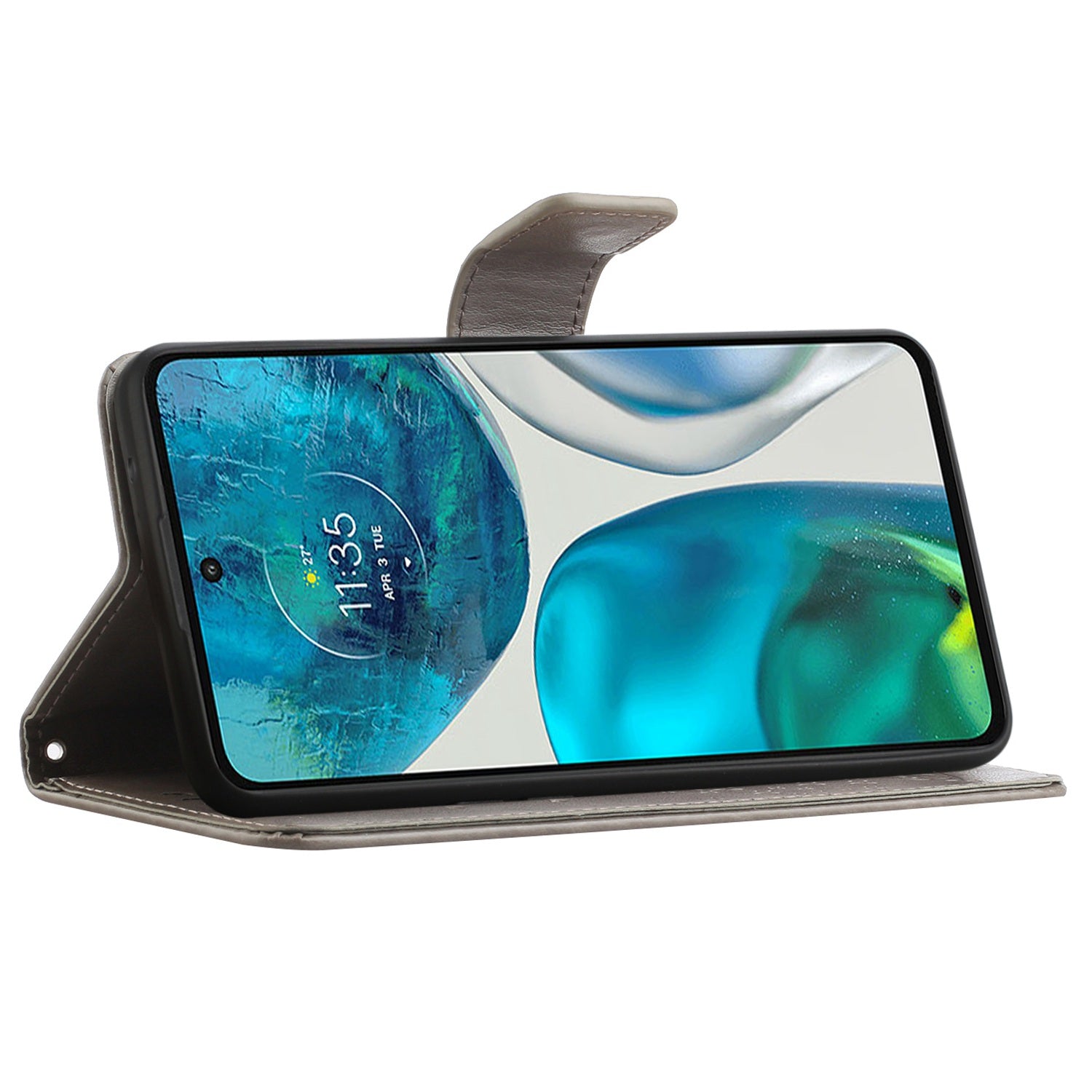 For Motorola Moto G52 4G Anti-scratch Anti-drop PU Leather Phone Cover Owl Tree Pattern Imprinted Wallet Style Stand Case with Wrist Strap