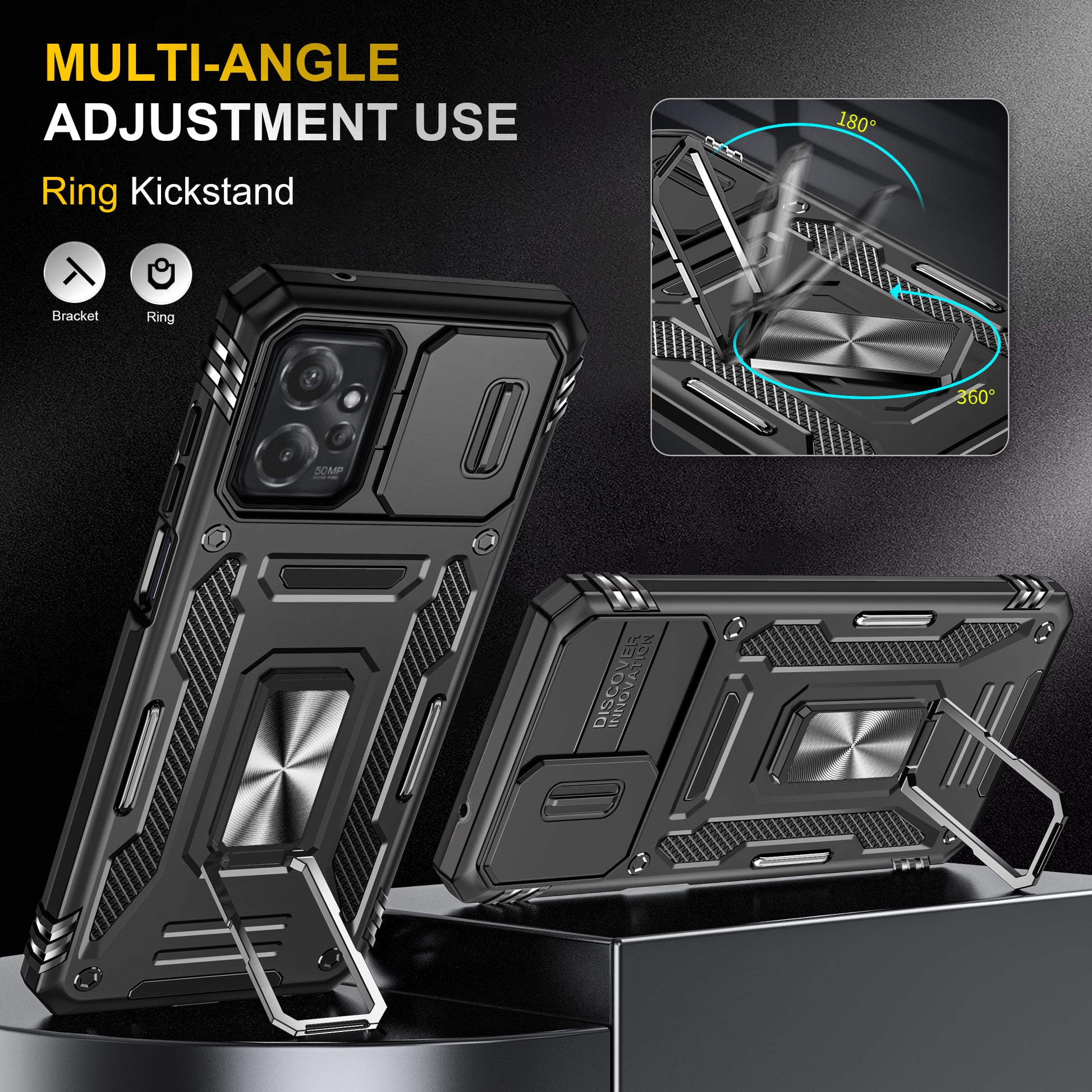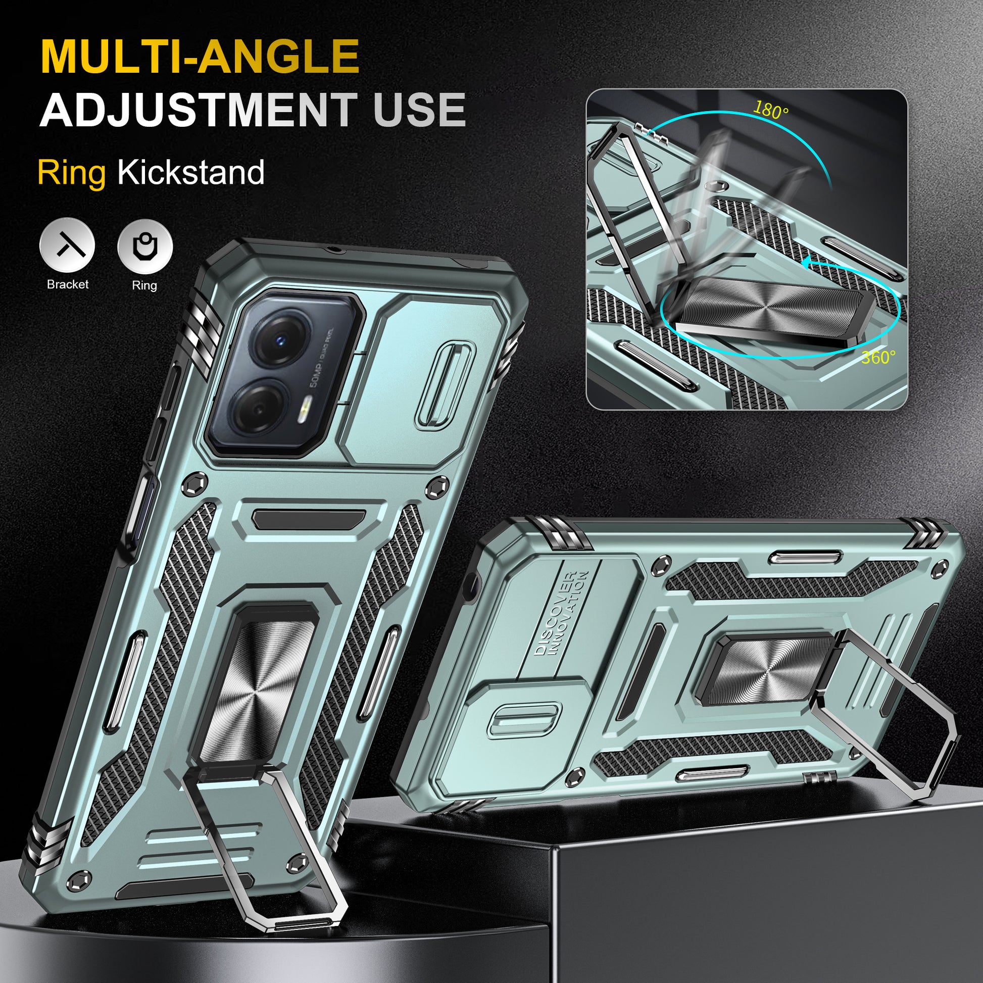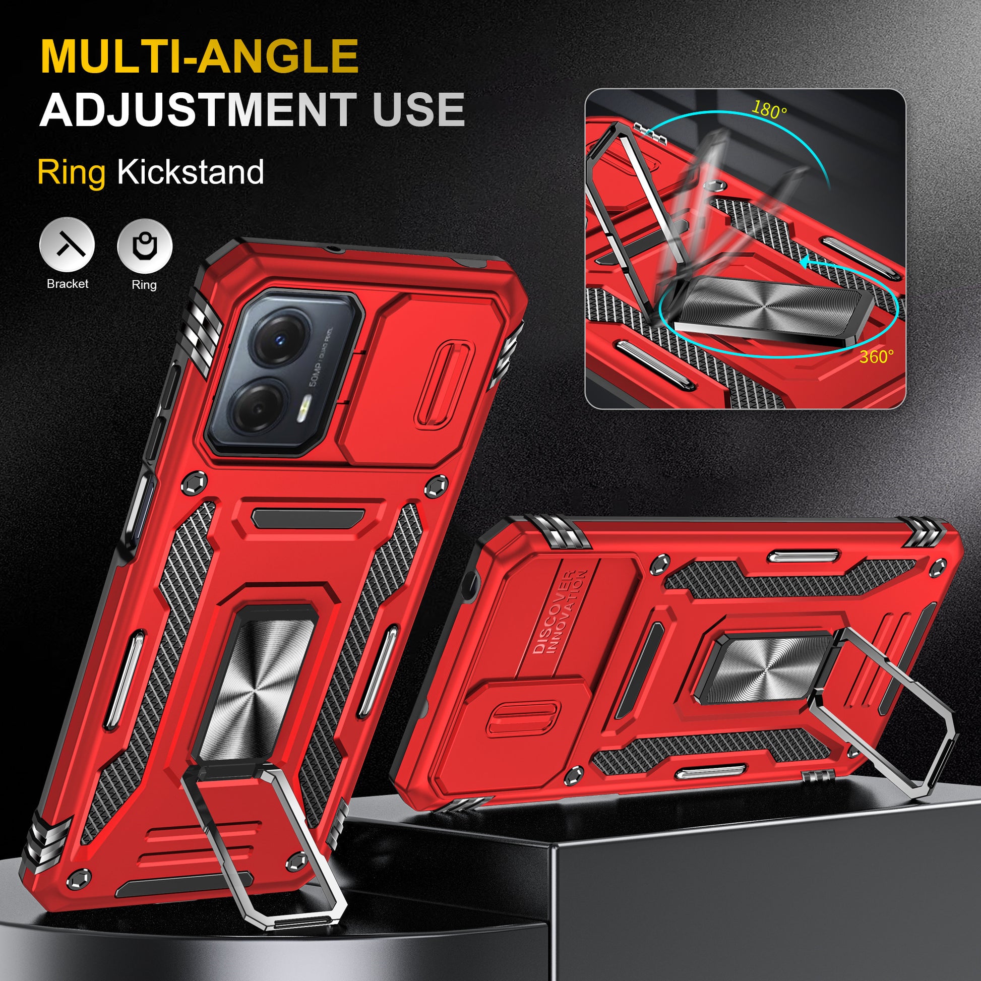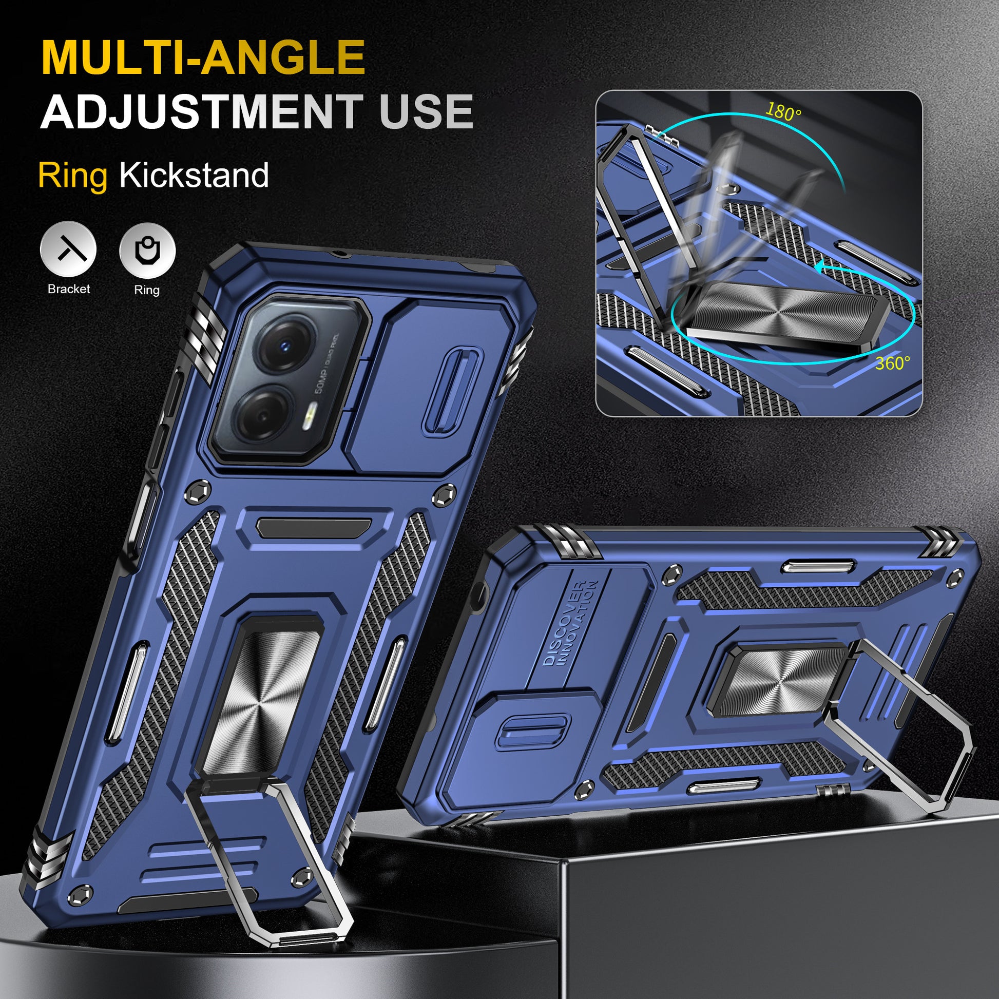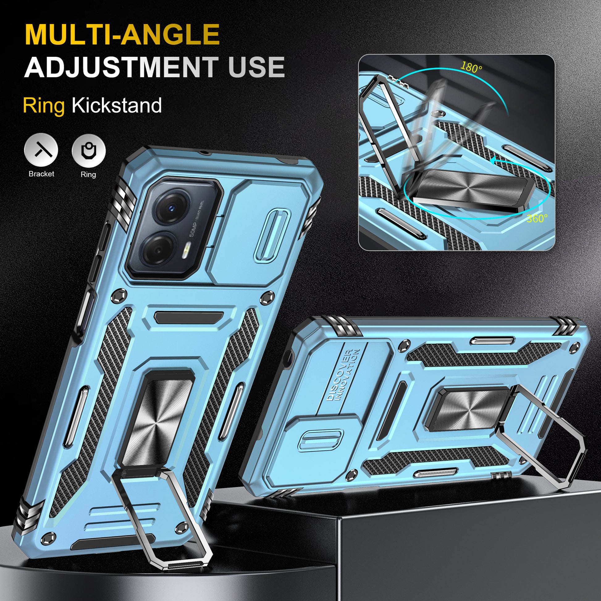 For Motorola Moto G53 5G Armor Series Slide Lens Protection Phone Case PC + TPU Kickstand Cover