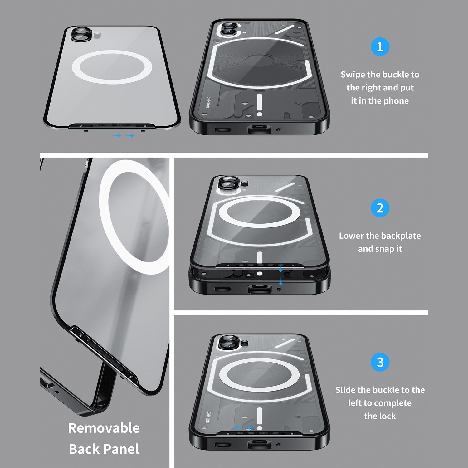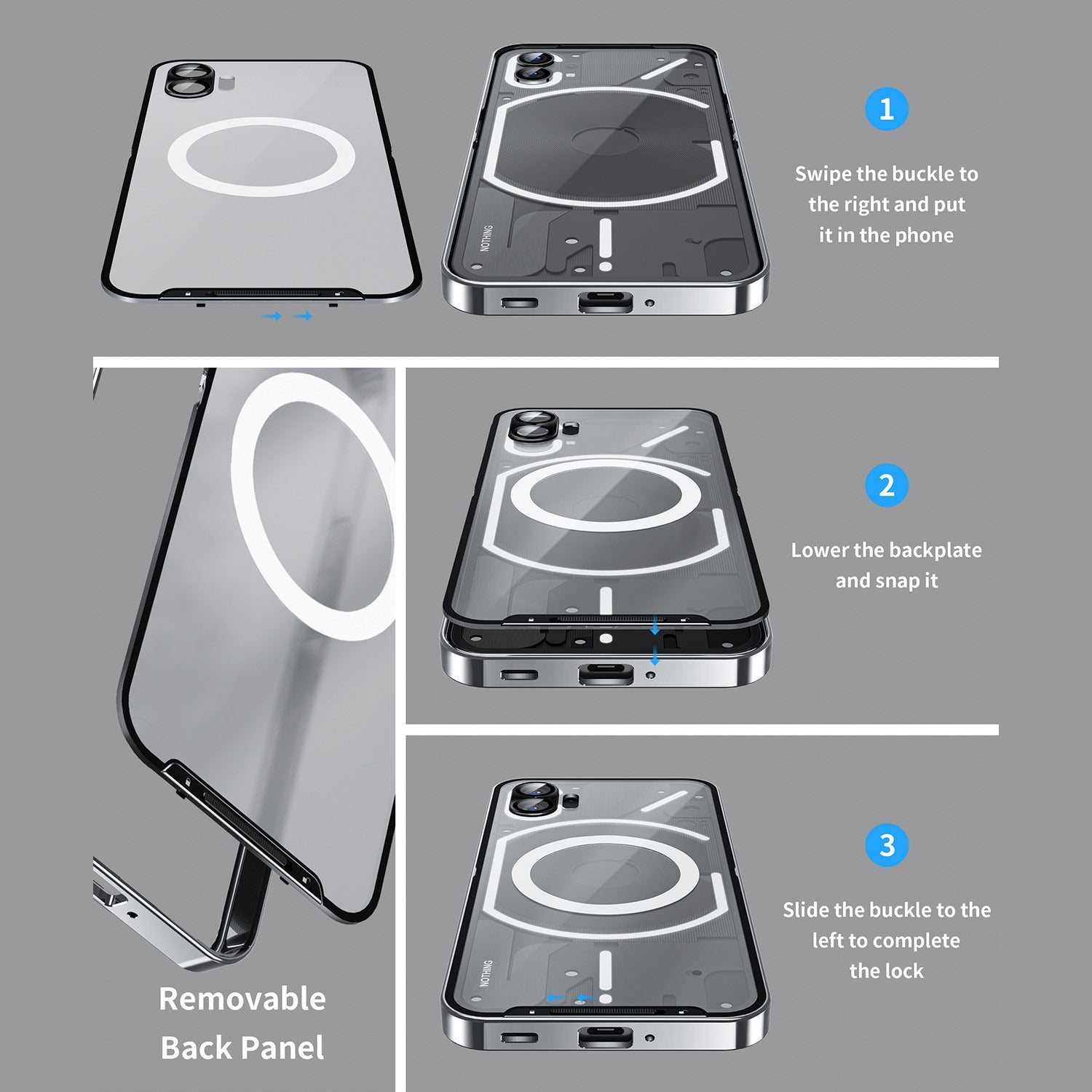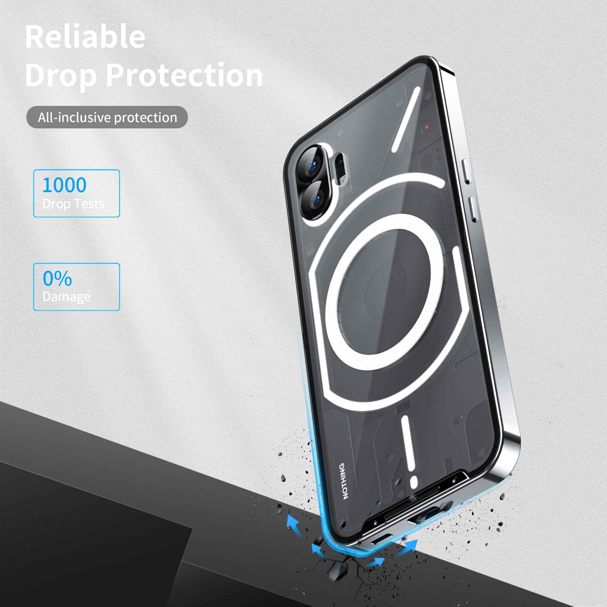 For Nothing phone (1) 5G Drop-proof Slim Phone Case with Metal Frame Magnetic Back Cover with Integrated Lens Cover