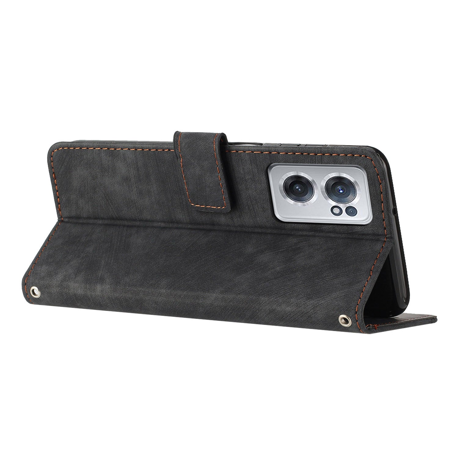 For OnePlus Nord CE 2 5G Anti-Fingerprint Phone Cover Flip Stand Imprint Lines PU Leather Wallet Skin-touch Phone Case