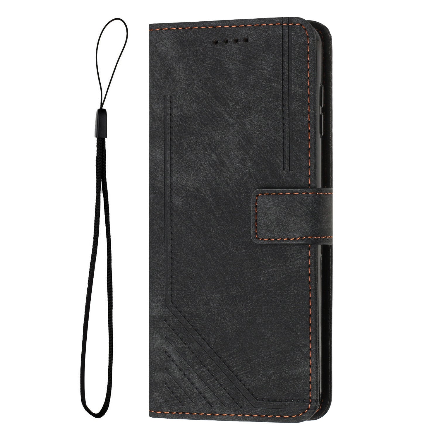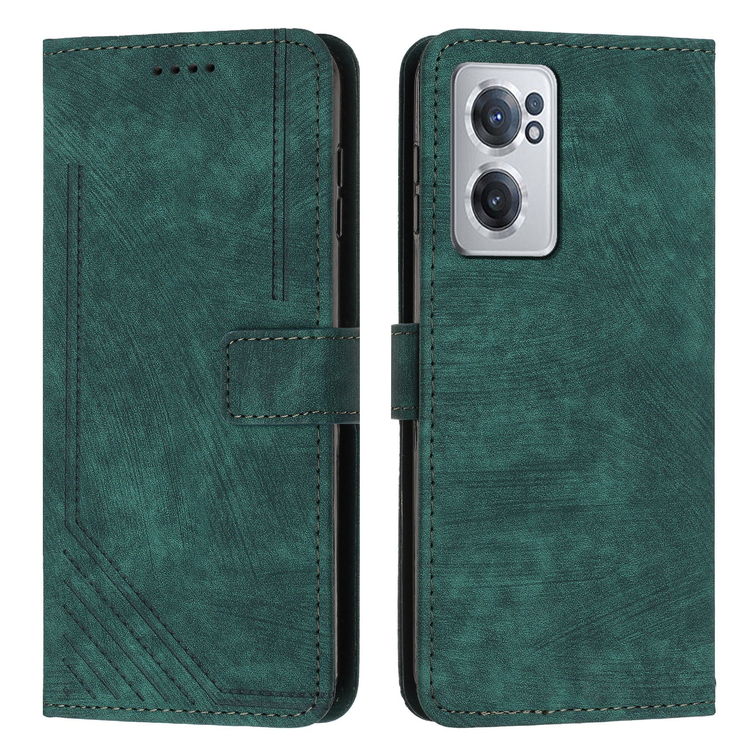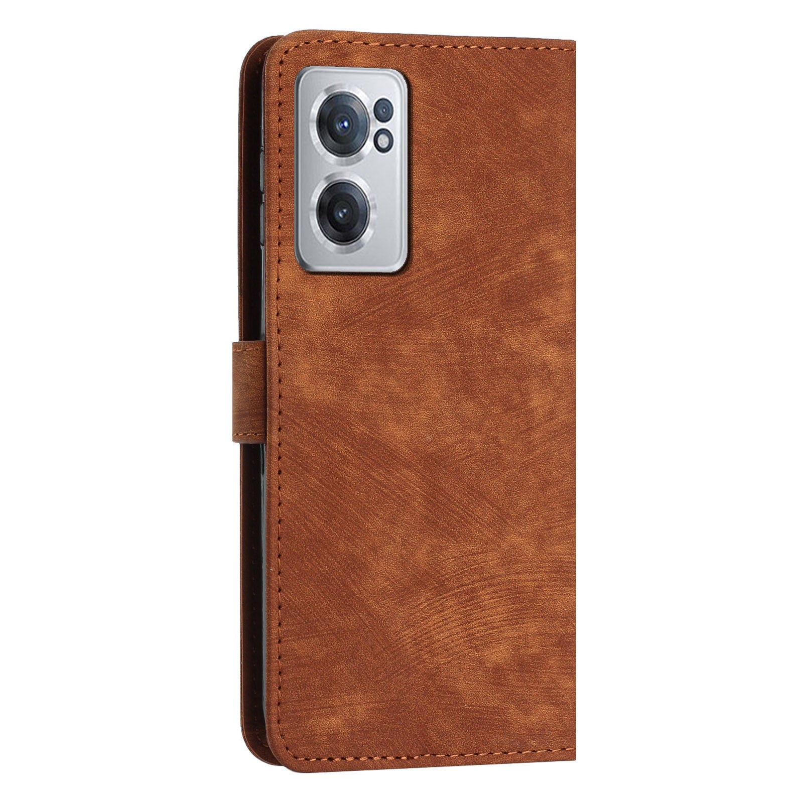 For OnePlus Nord CE 2 5G Imprinted Lines Stand Cell Phone Cover PU Leather Wallet Skin-touch Phone Case with Straps