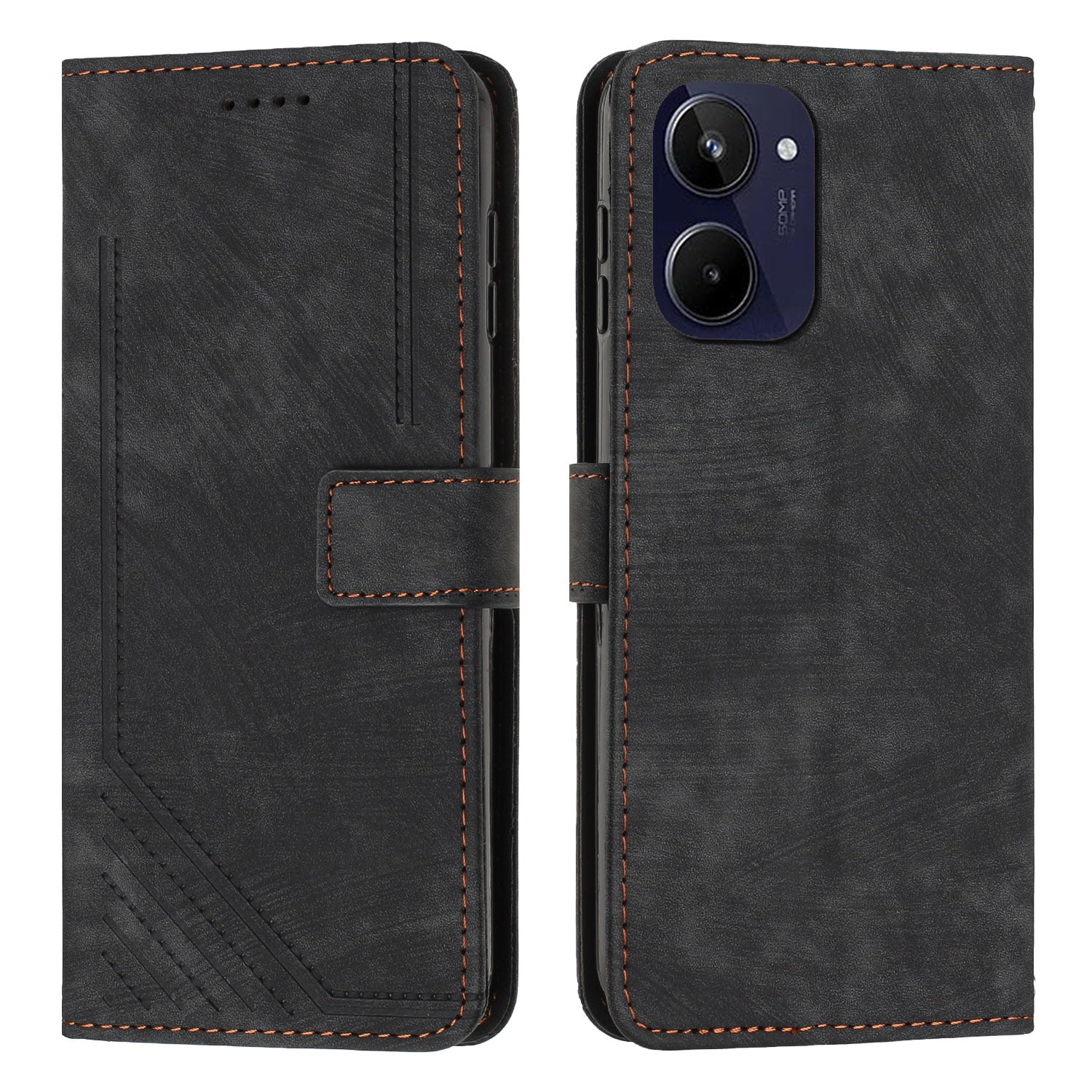For Realme 10 4G Flip Folio Wallet Cover PU Leather Lines Imprinted Stand Protective Phone Case