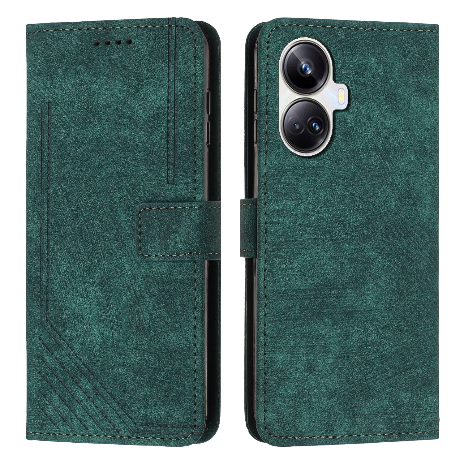 For Realme 10 Pro+ 5G PU Leather Protective Cover Lines Imprinted Stand Magnetic Folio Phone Case