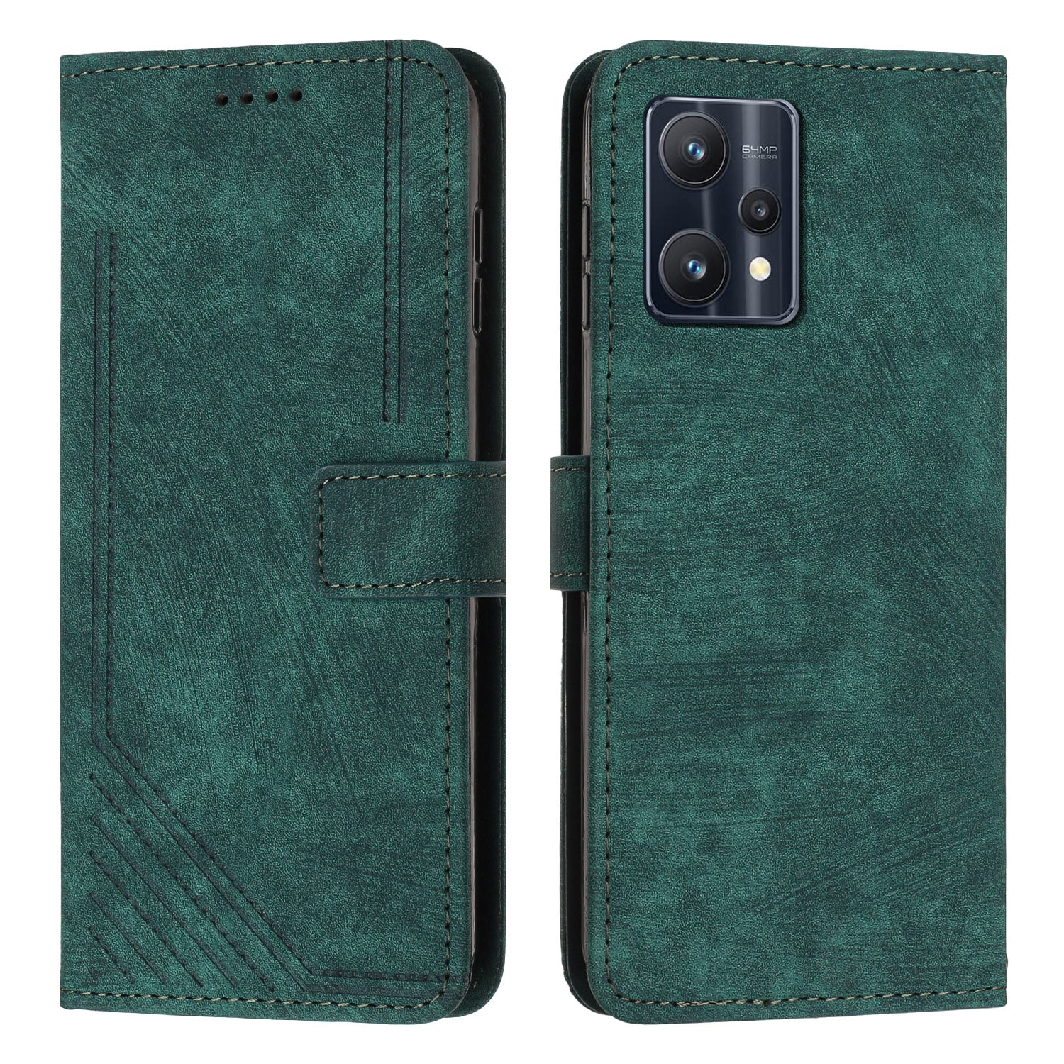 For Realme 9 Pro 5G / 9 5G / V25 / OnePlus Nord CE 2 Lite 5G Phone Case Leather Lines Imprinted Stand Wallet Cover with Straps