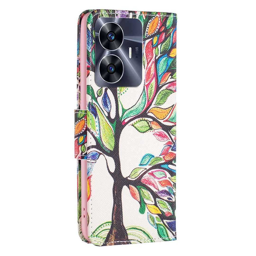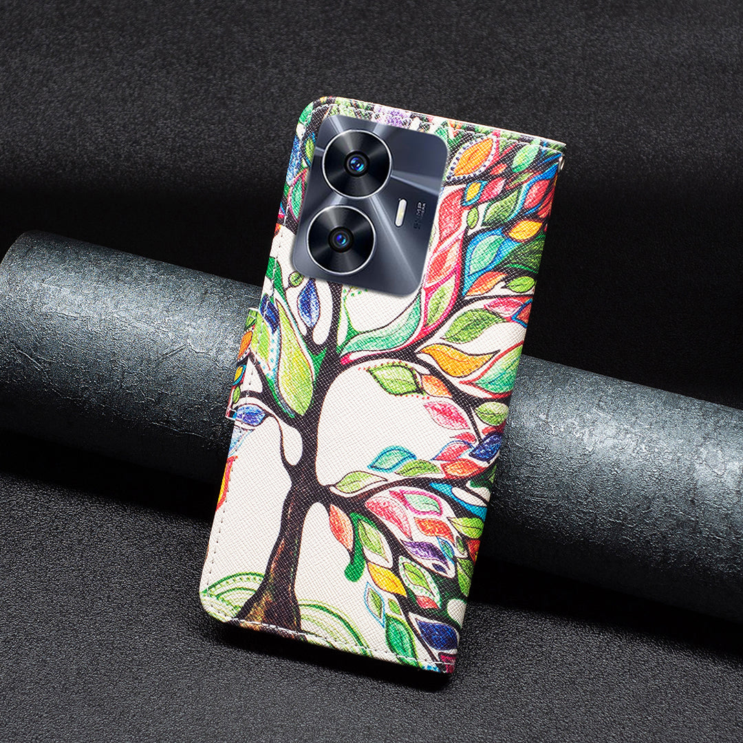 For Realme C55 Pattern Printing Phone Case Full Protection PU Leather Wallet Shell with Stand