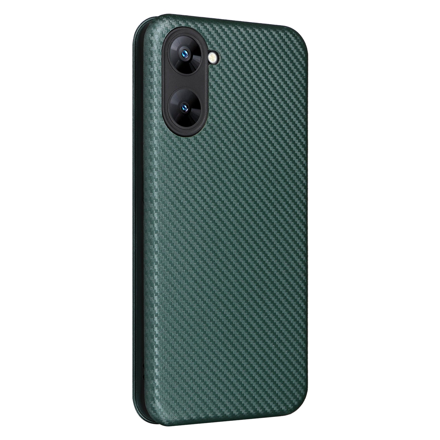 For Realme V30t / V30 5G Carbon Fiber Texture Phone Case Card Slot PU Leather Stand Phone Cover