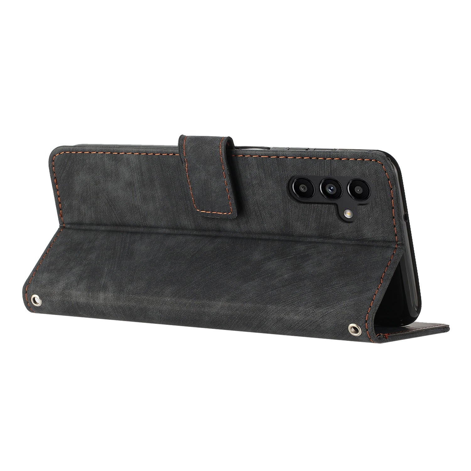 For Samsung Galaxy A34 5G Shockproof Phone Case Skin-Touch Lines Imprinted PU Leather Cover with Wallet