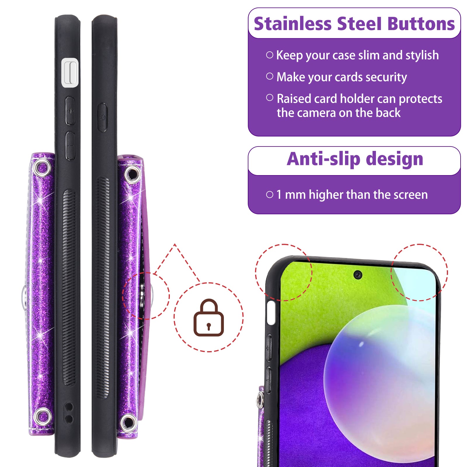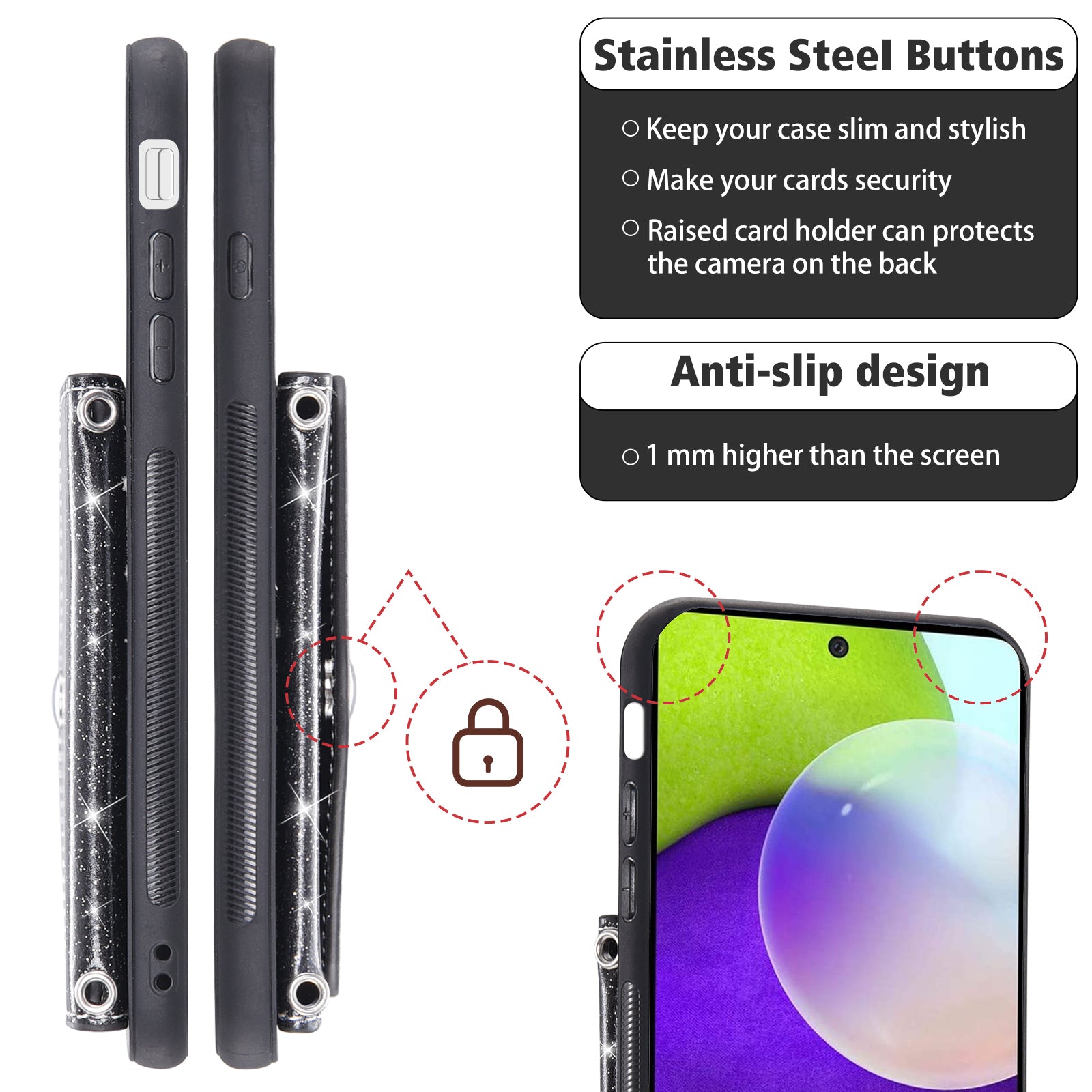 - Card holder on the back, convenient to store your essential cards