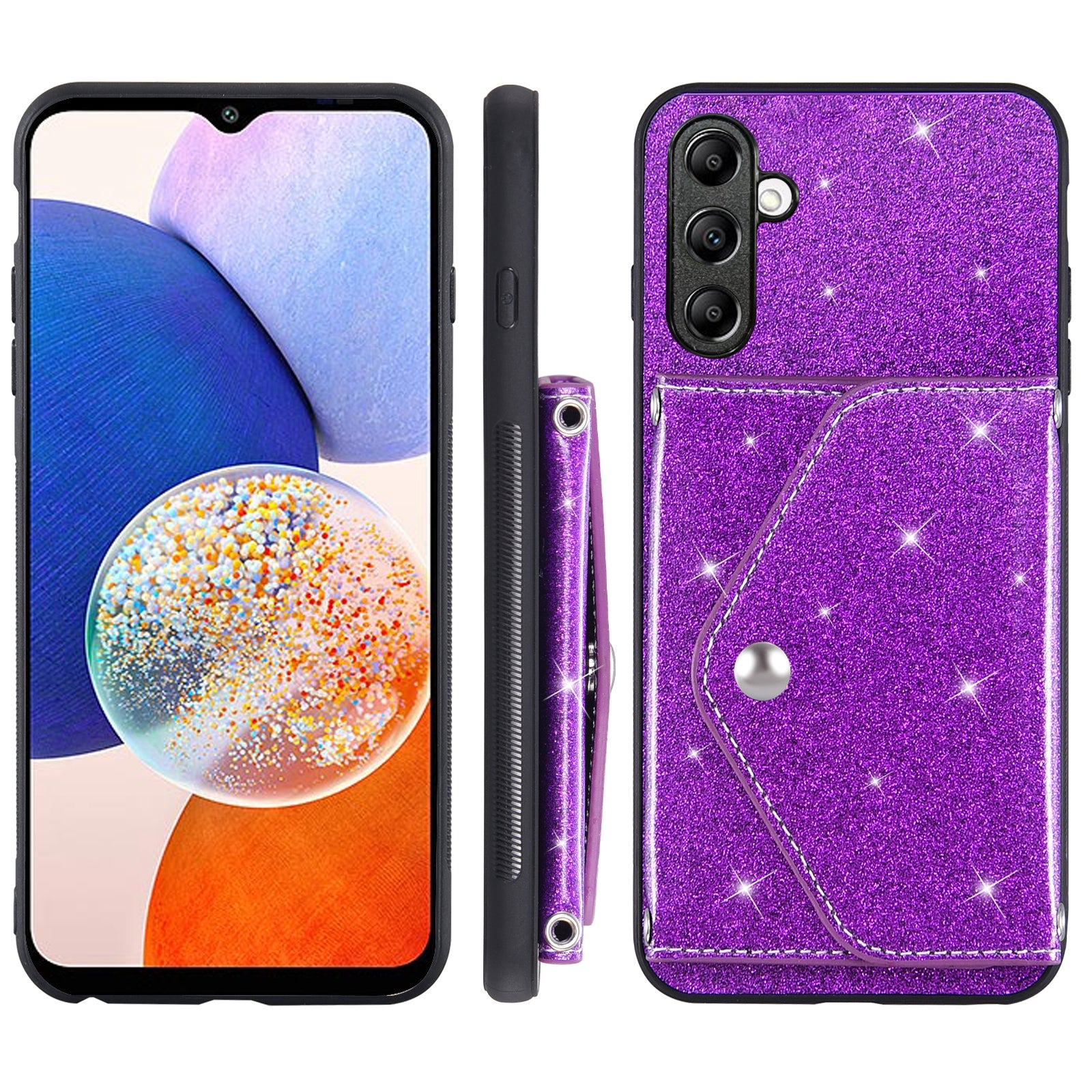 For Samsung Galaxy A54 5G Card Holder Glitter Phone Kickstand Case PU Leather Coated TPU Cover