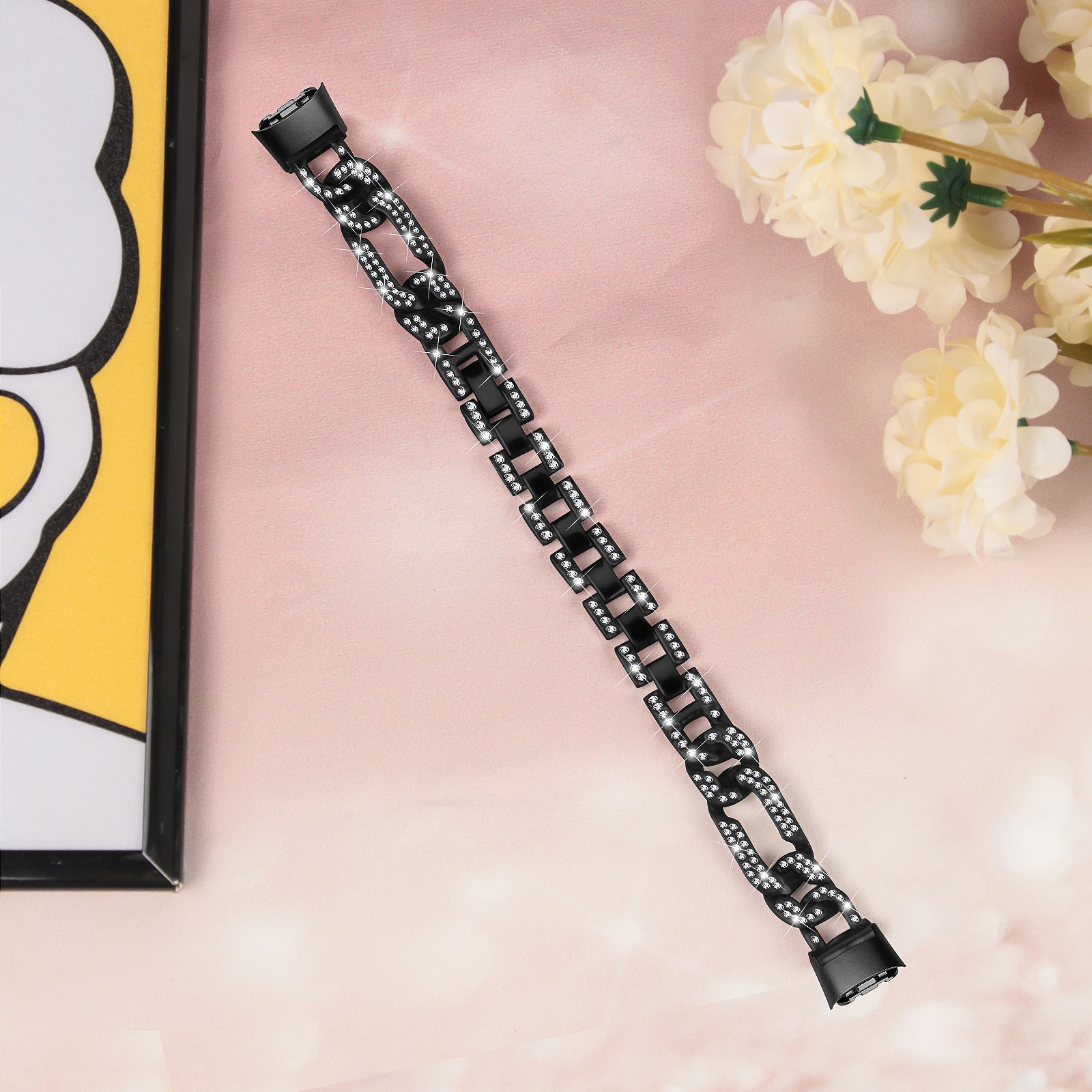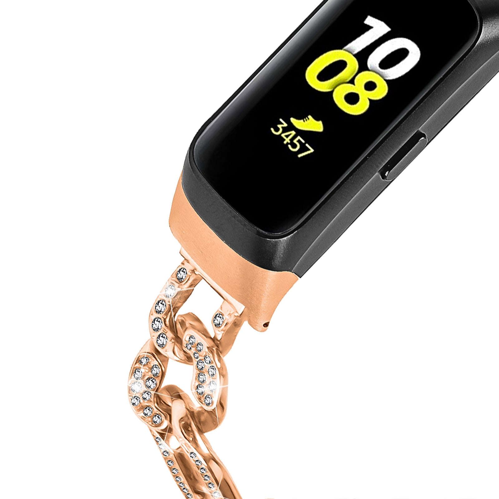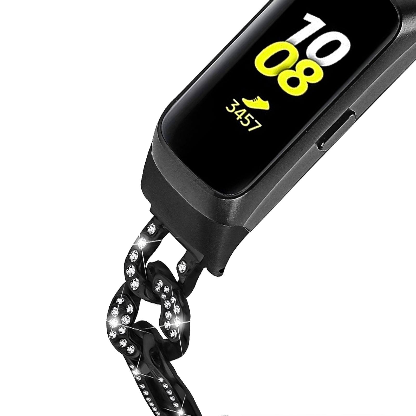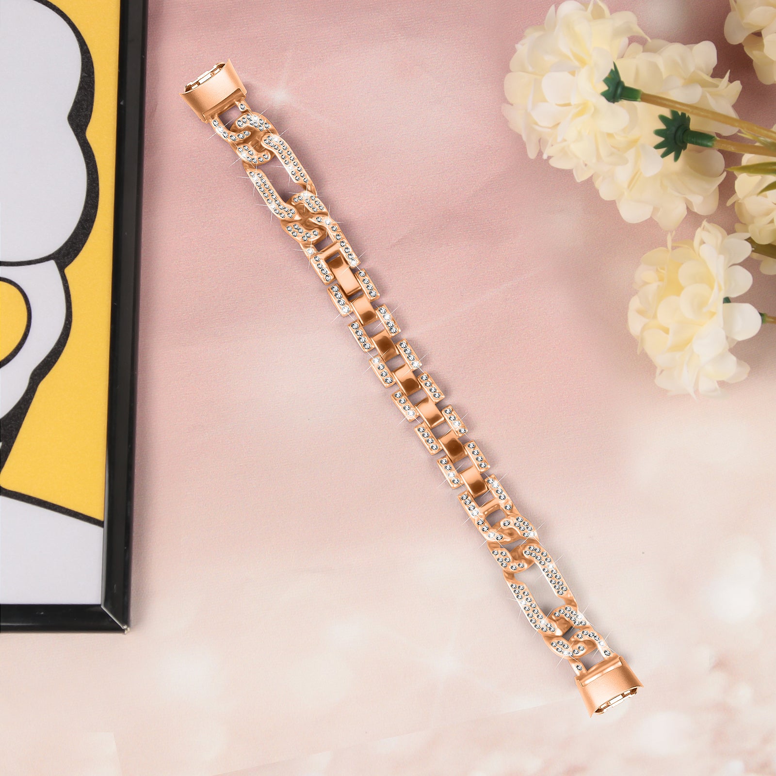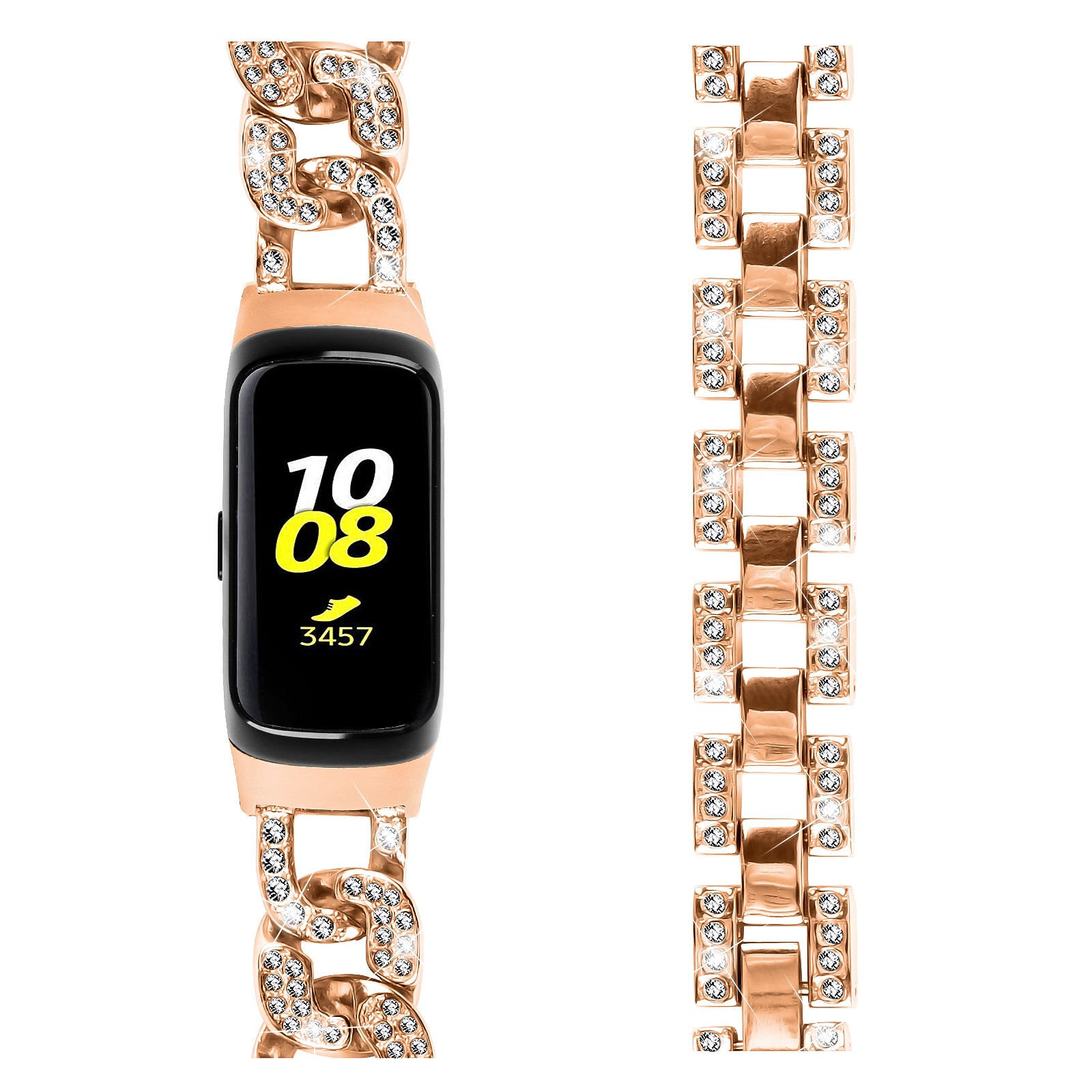 For Samsung Galaxy Fit SM-R370 Rhinestone Decor Watch Band Alloy Metal Jewelry Bracelet Wristband