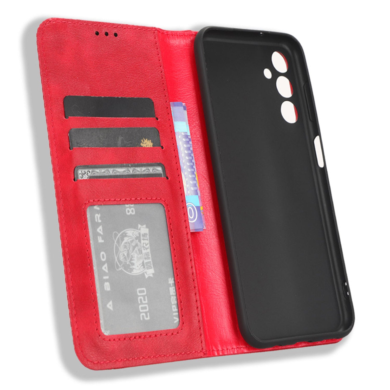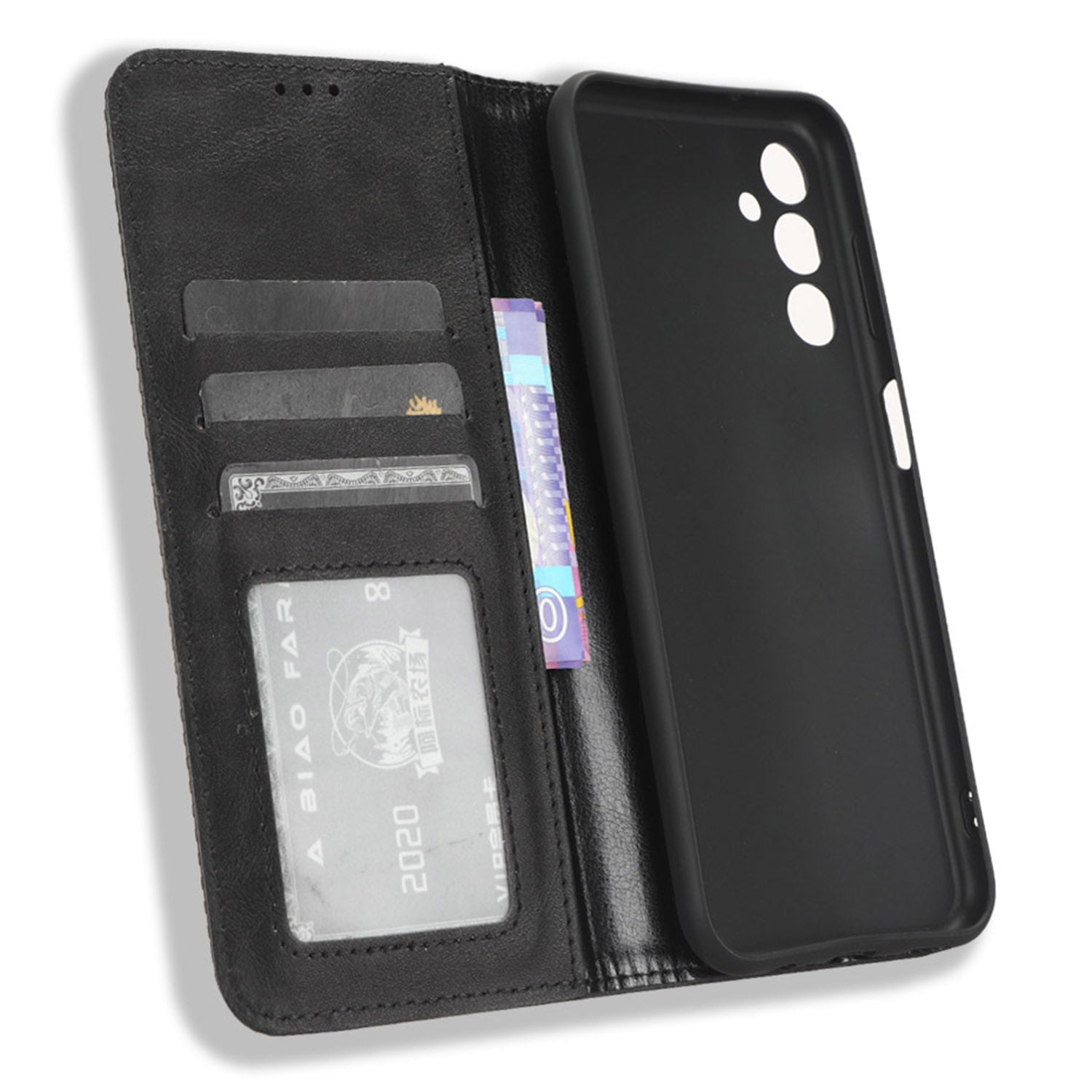 For Samsung Galaxy M14 5G Retro Phone Case PU Leather Phone Stand Wallet Protective Cover