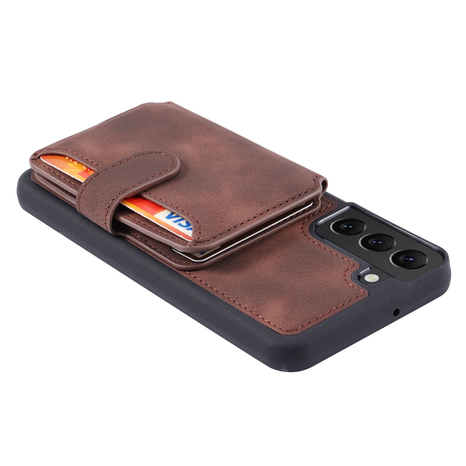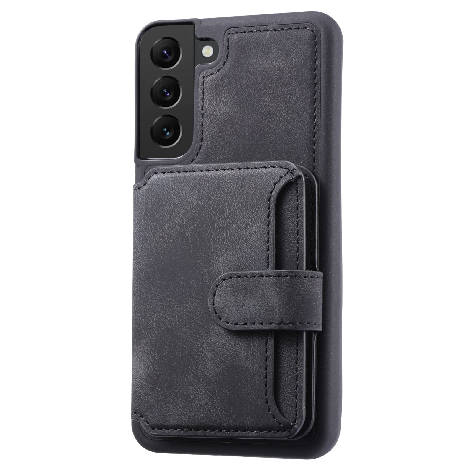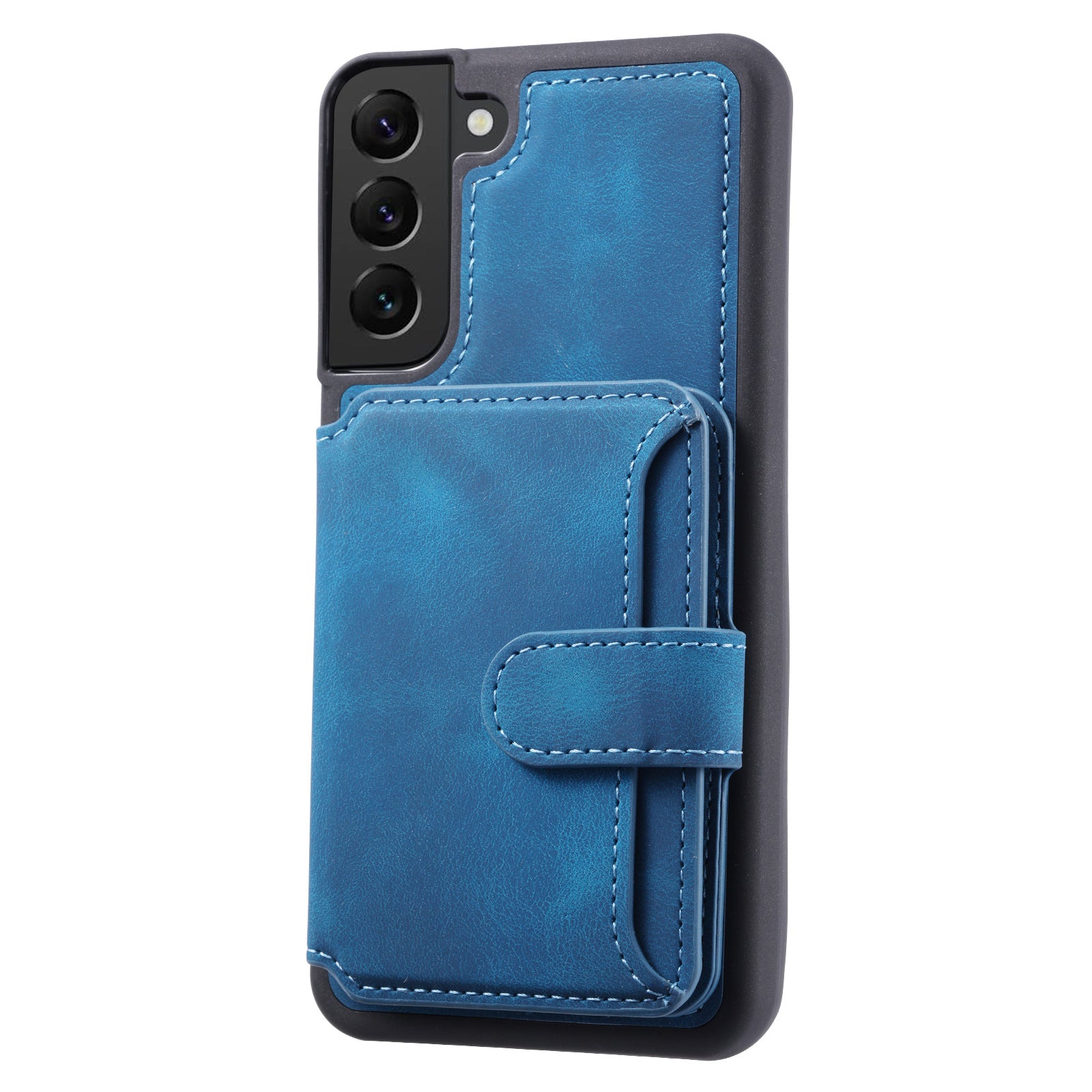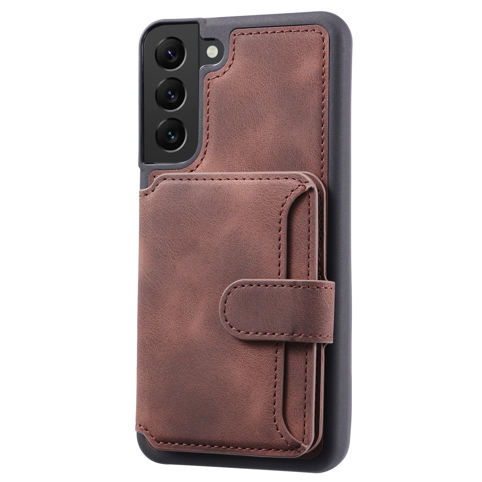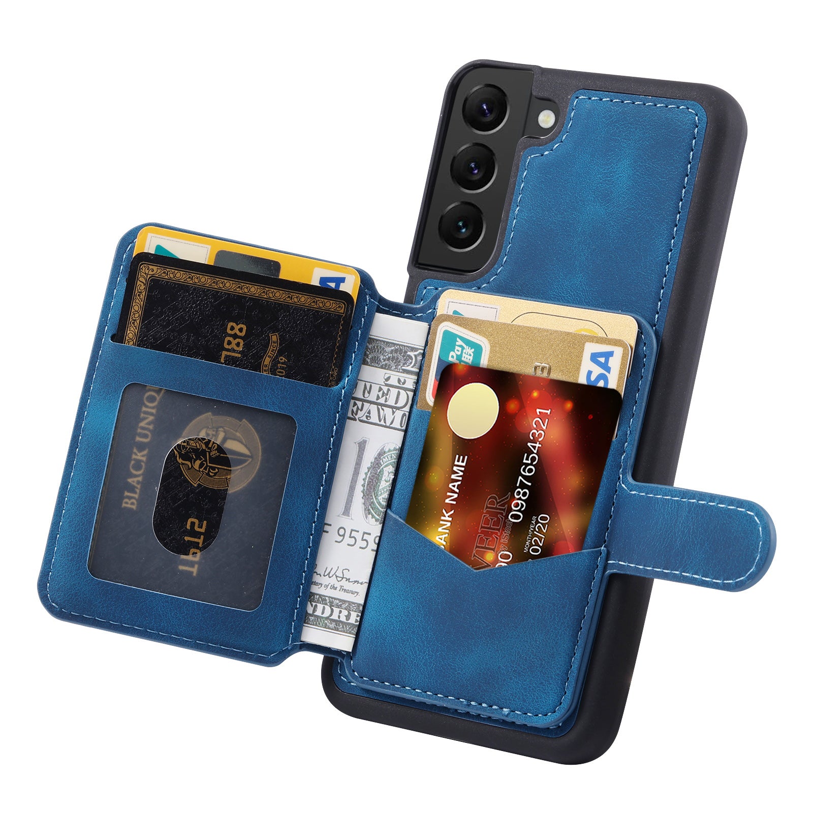 For Samsung Galaxy S22 5G RFID Blocking Phone Case Leather Coated TPU Kickstand Wallet Phone Cover