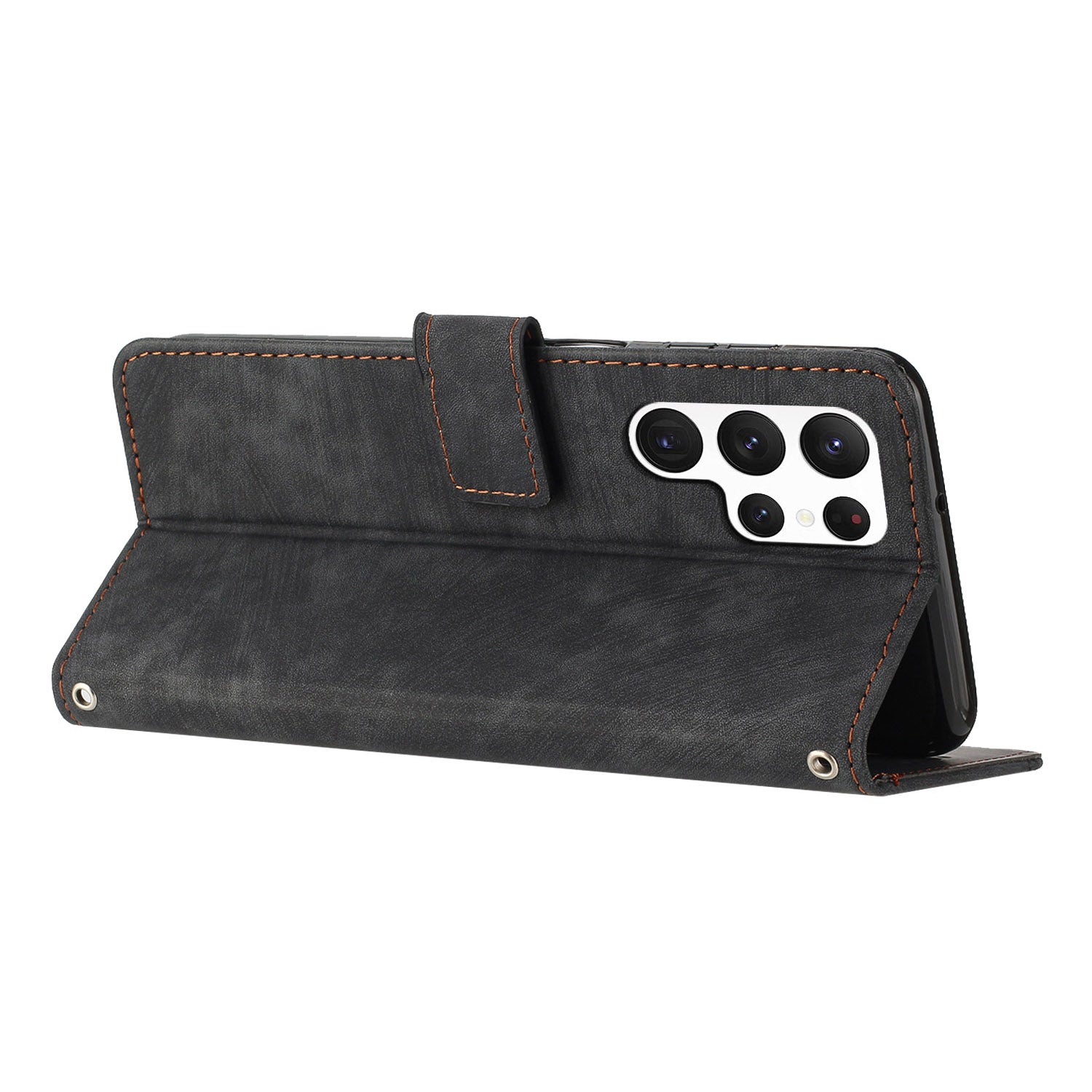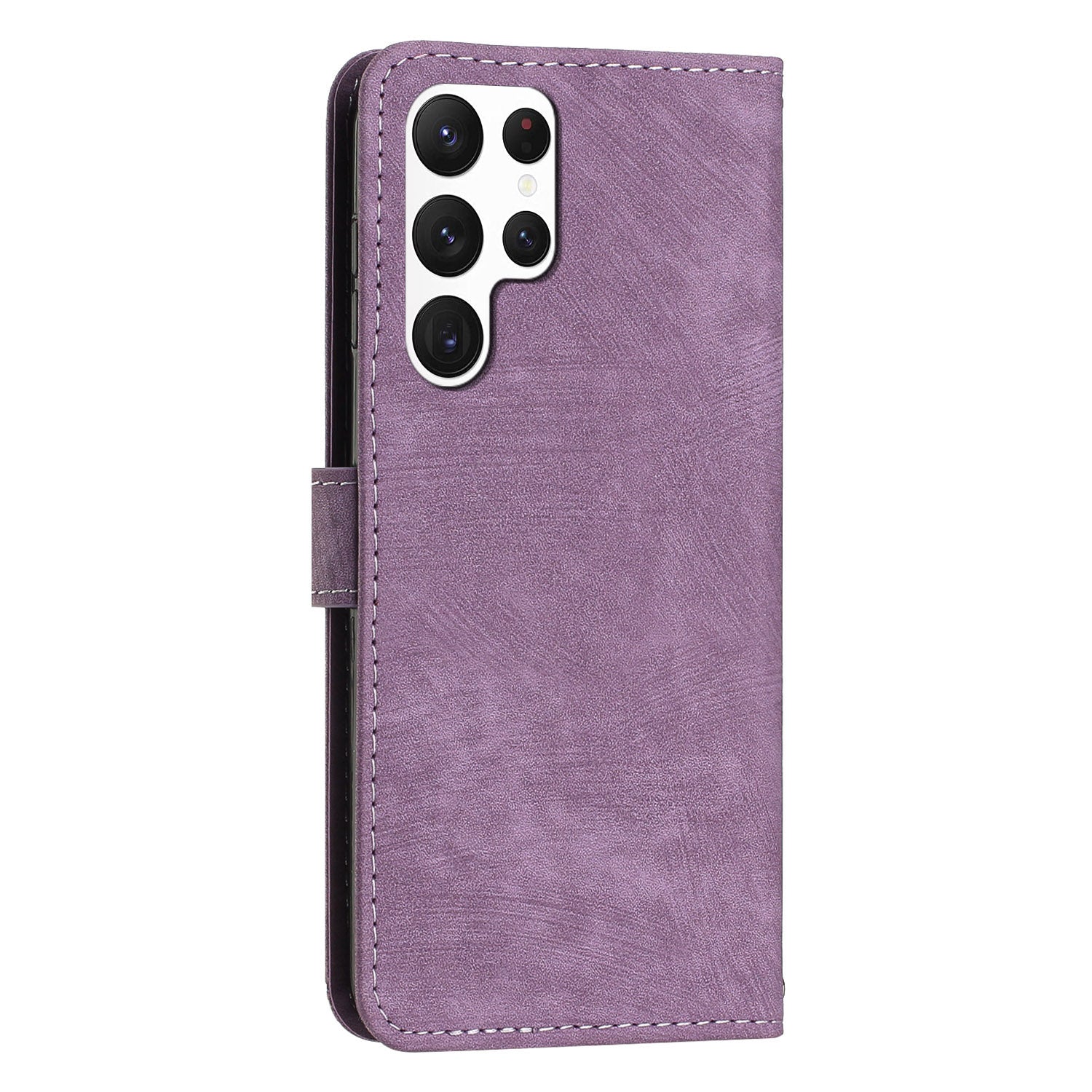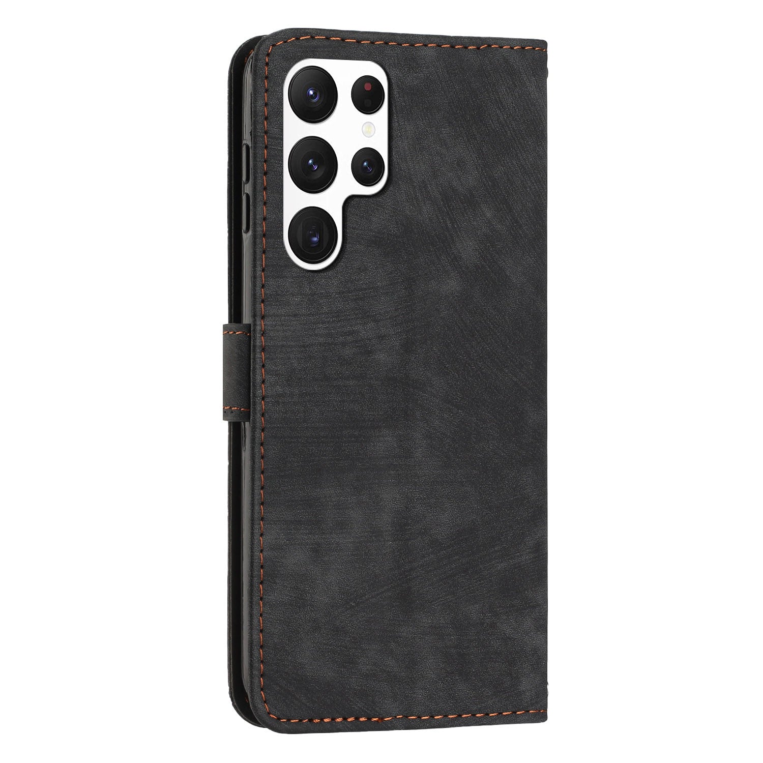 For Samsung Galaxy S22 Ultra 5G Anti-Drop Phone Case Skin-Touch Lines Imprinted PU Leather Wallet Cover
