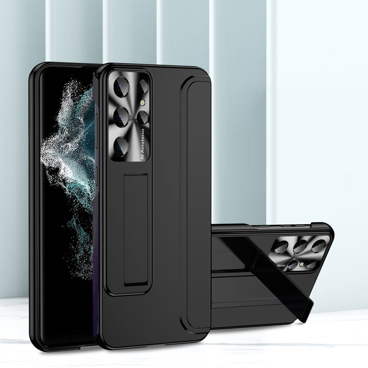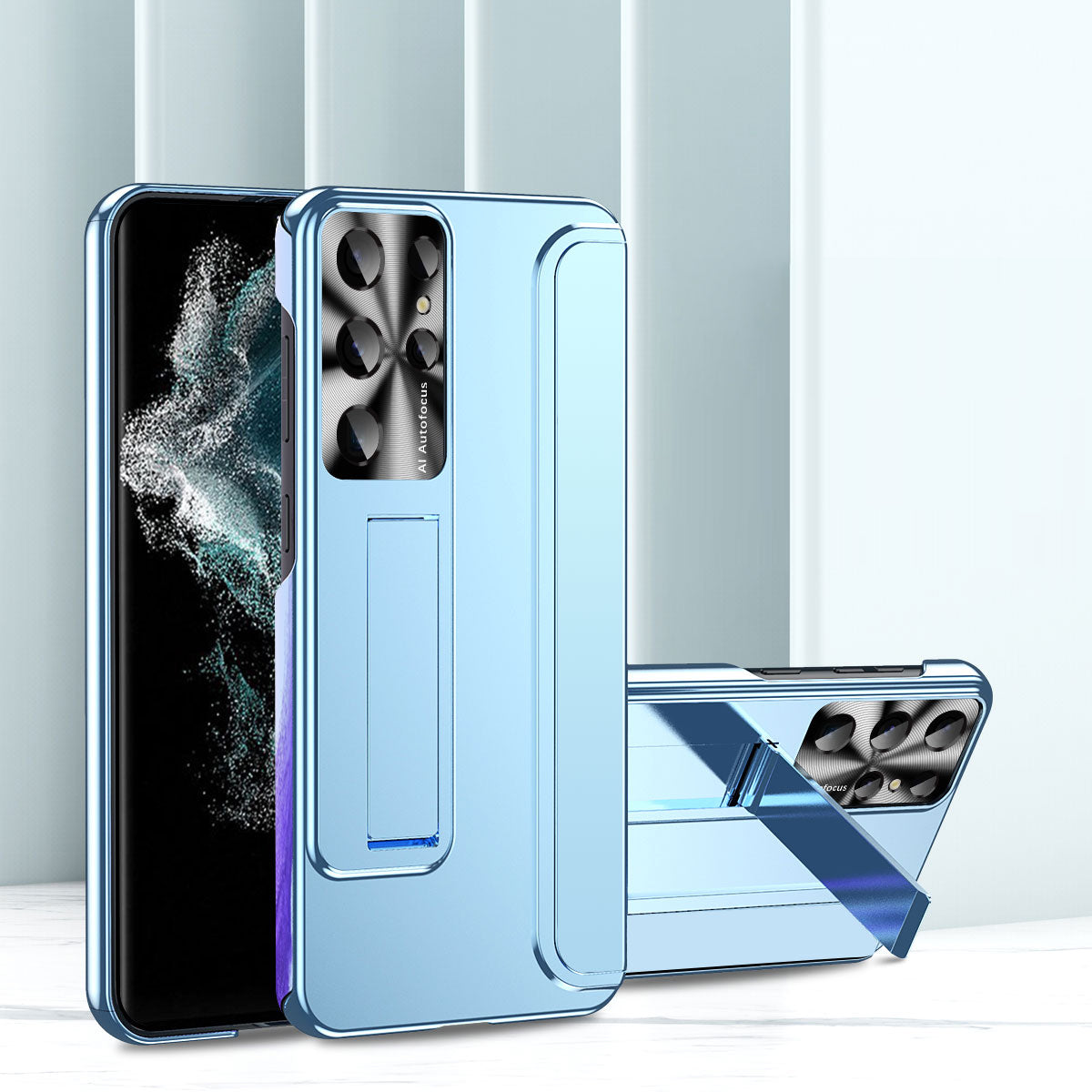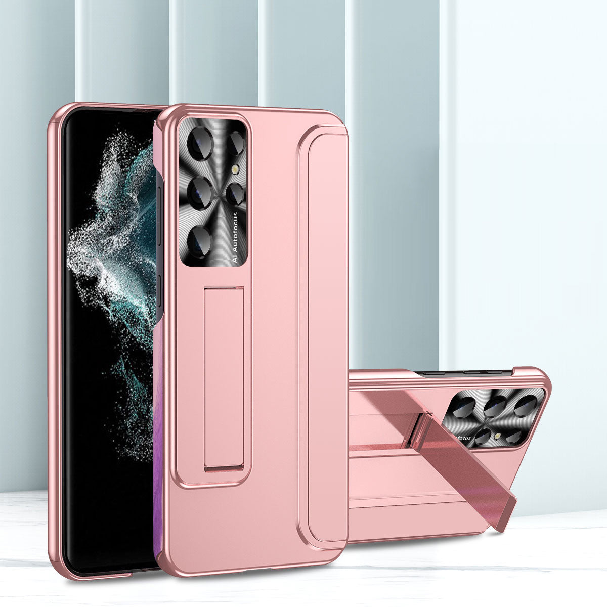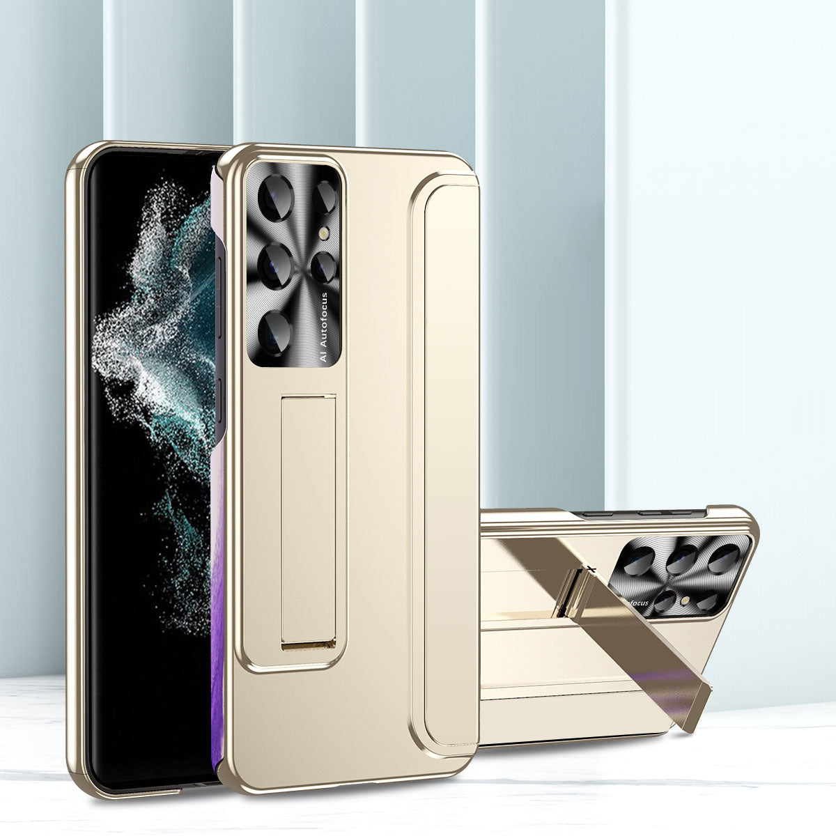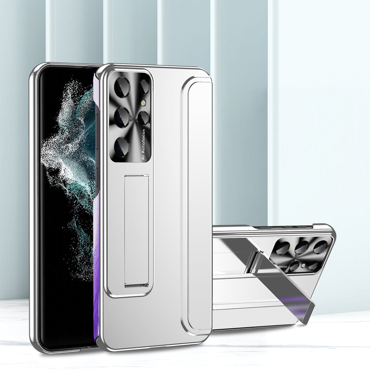 For Samsung Galaxy S22 Ultra 5G Anti-Scratch Hard PC Phone Case Electroplating Design Kickstand Protective Cover