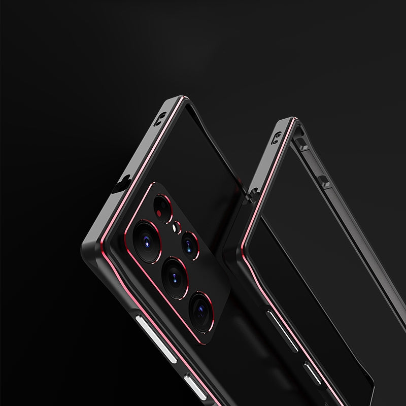 For Samsung Galaxy S22 Ultra 5G Precise Cutout Metal Bumper Case with Camera Lens Cover