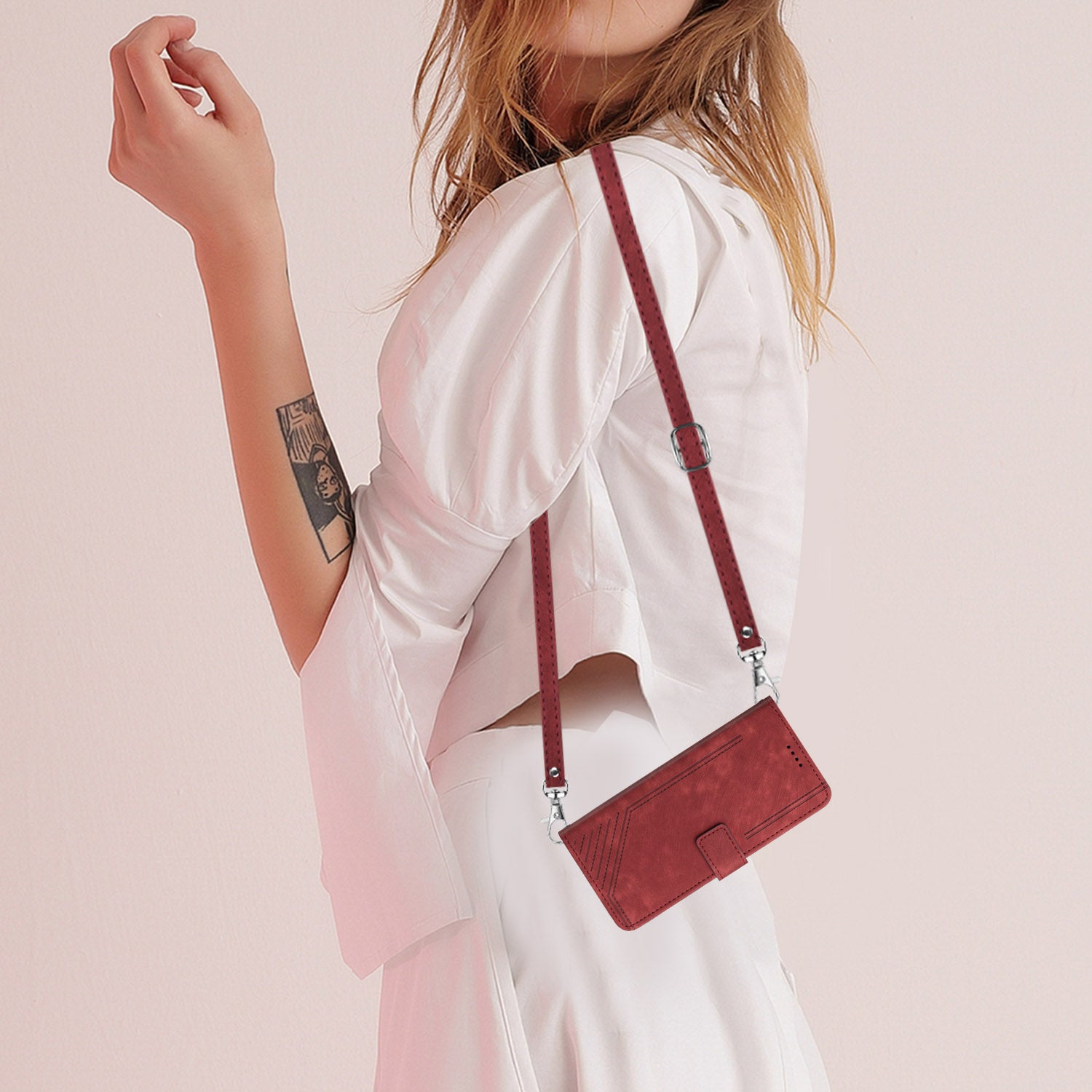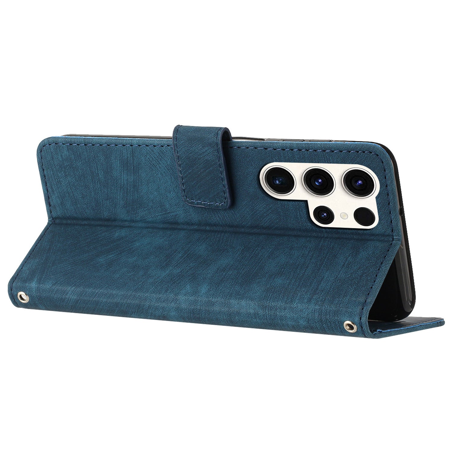 For Samsung Galaxy S23 Ultra Wallet Phone Case Crossbody PU Leather Stand Lines Imprinted Flip Cover