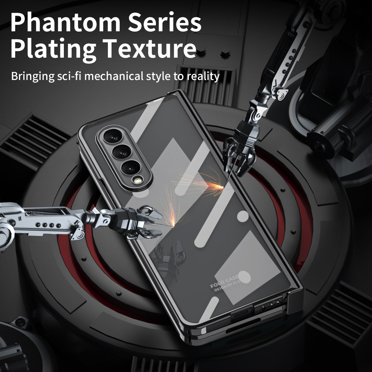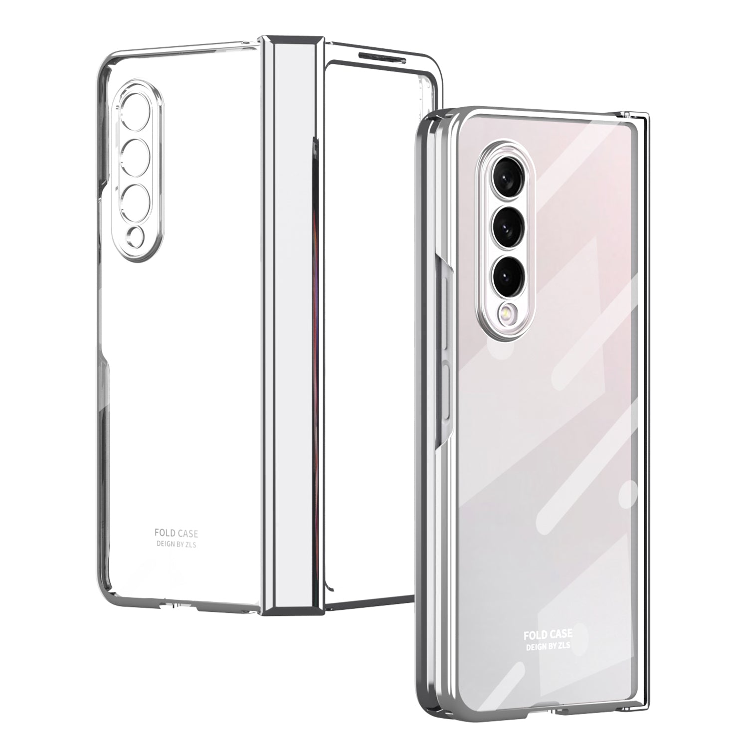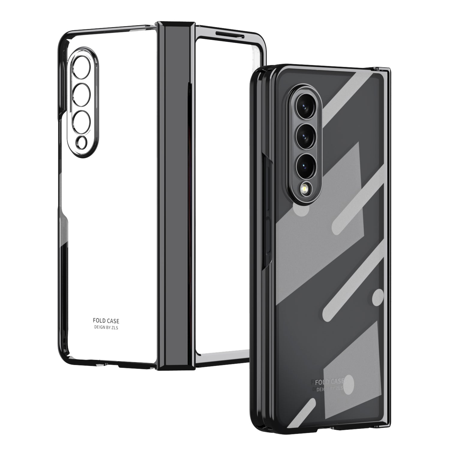 For Samsung Galaxy Z Fold4 5G Electroplating High Transparency Folding Phone Case with Tempered Glass Film