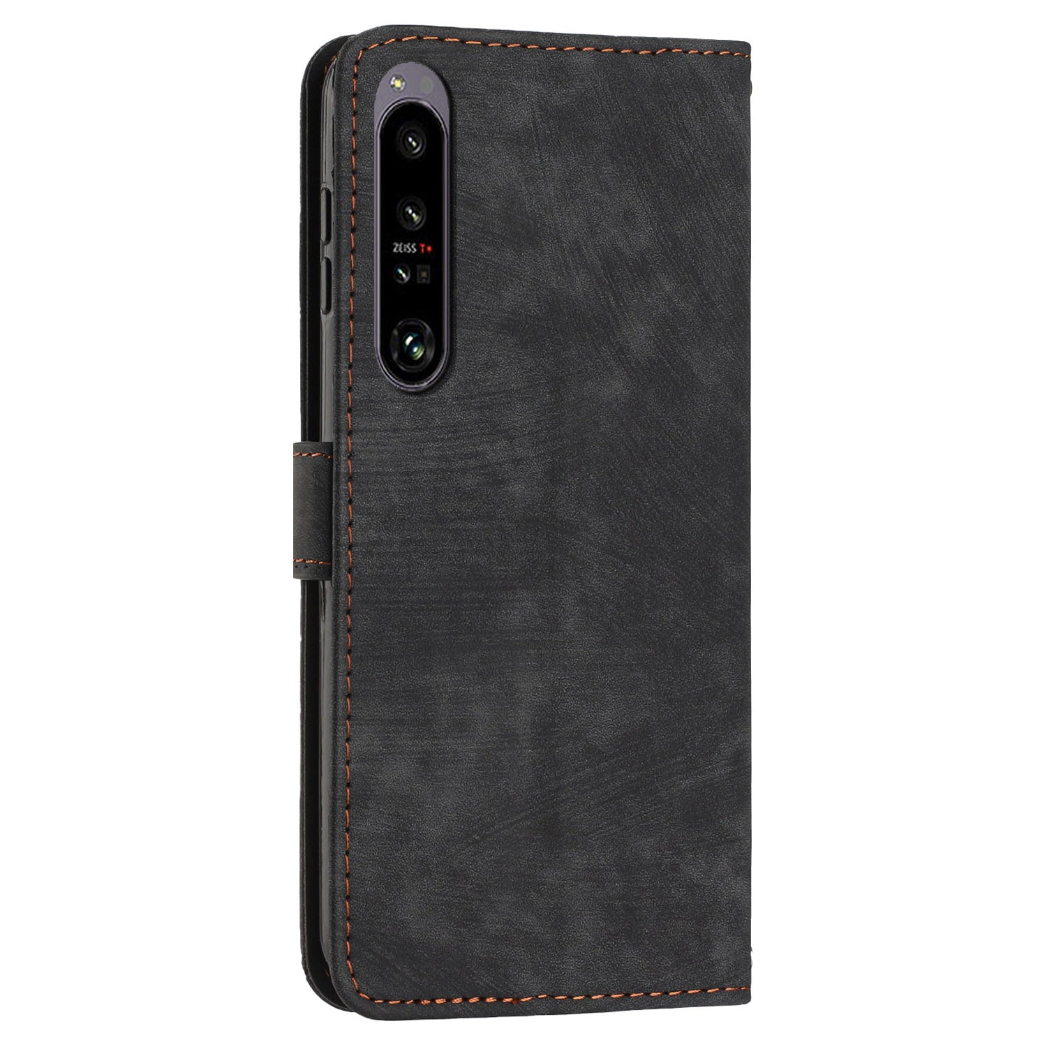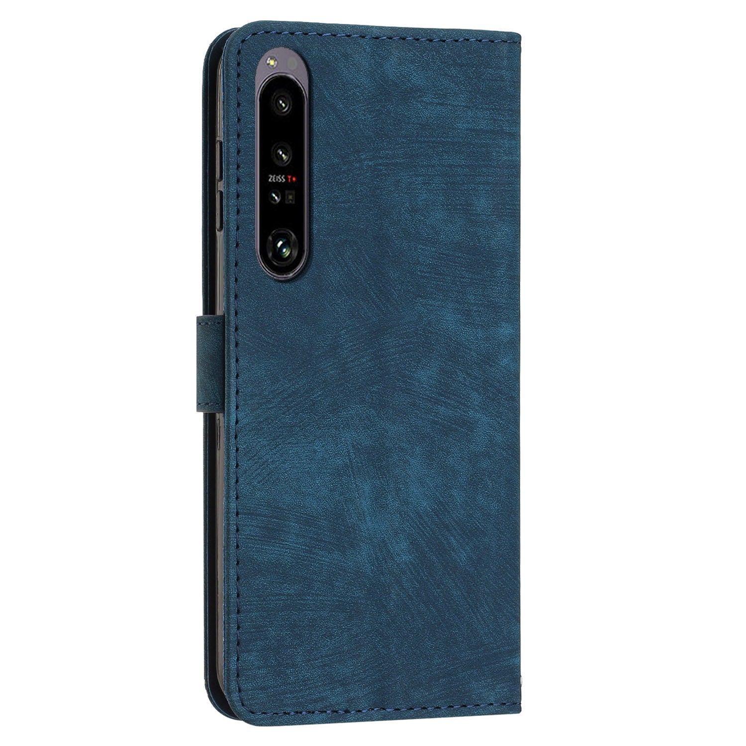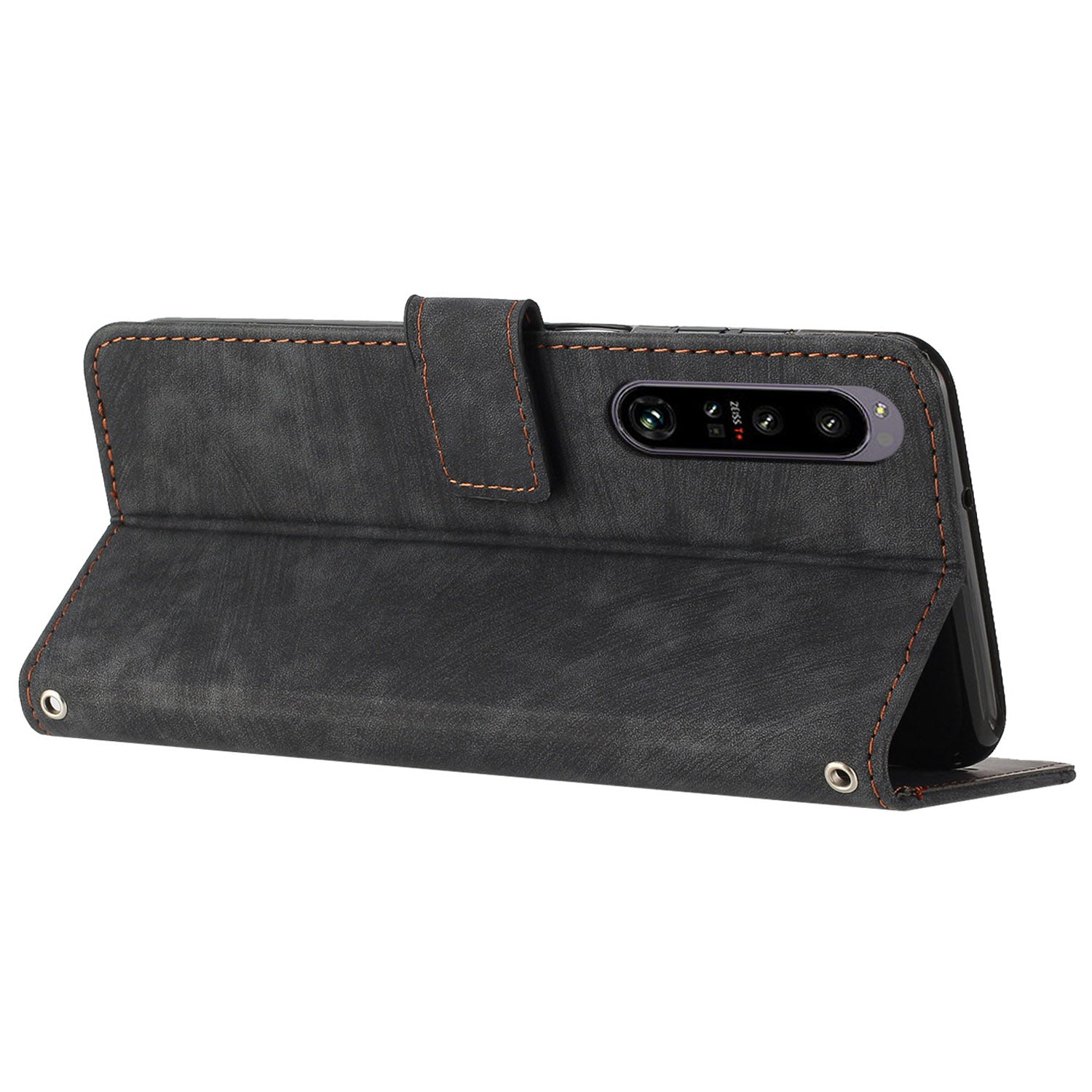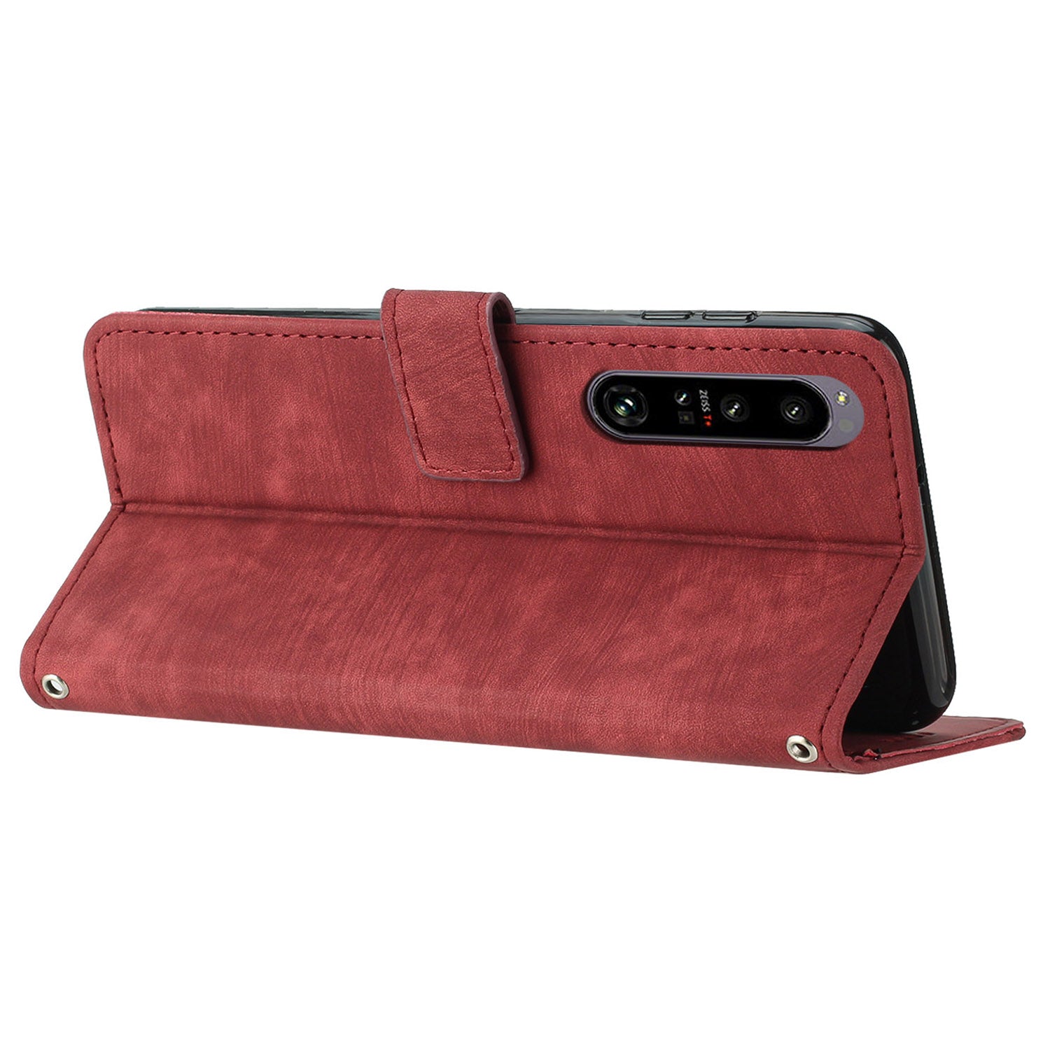 For Sony Xperia 1 IV 5G PU Leather Wallet Case Lines Imprinted Stand Shockproof Cover with 2 Straps