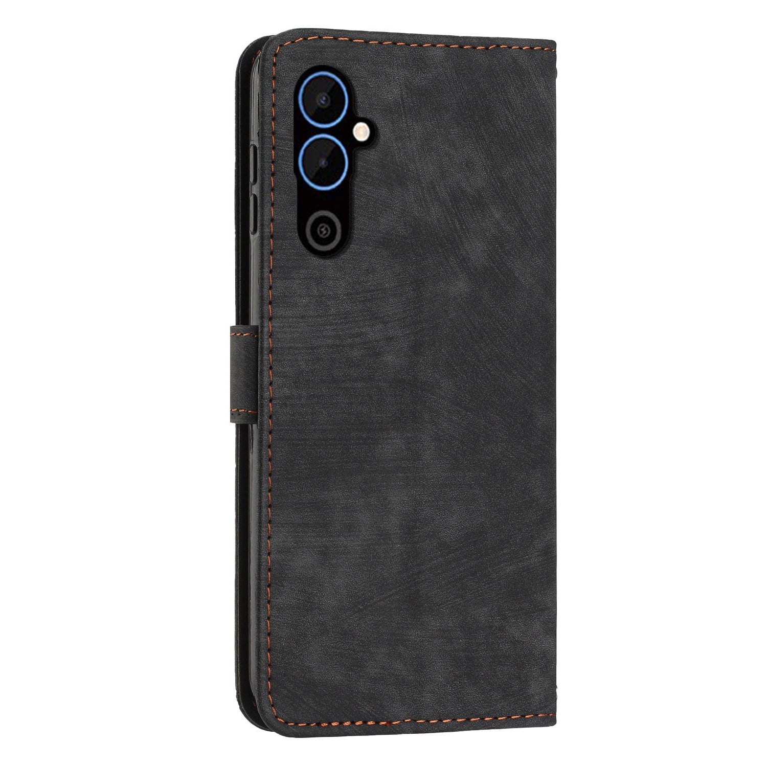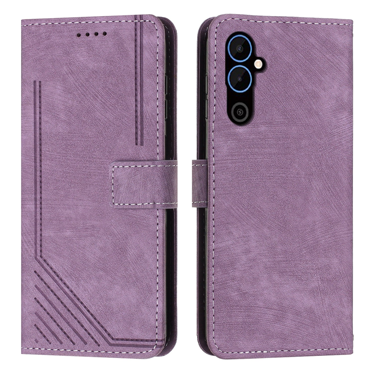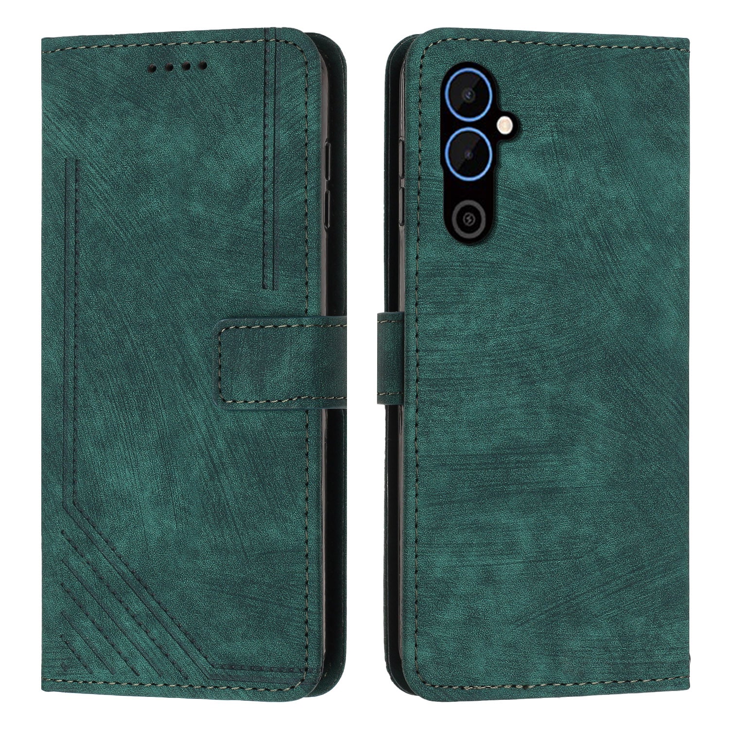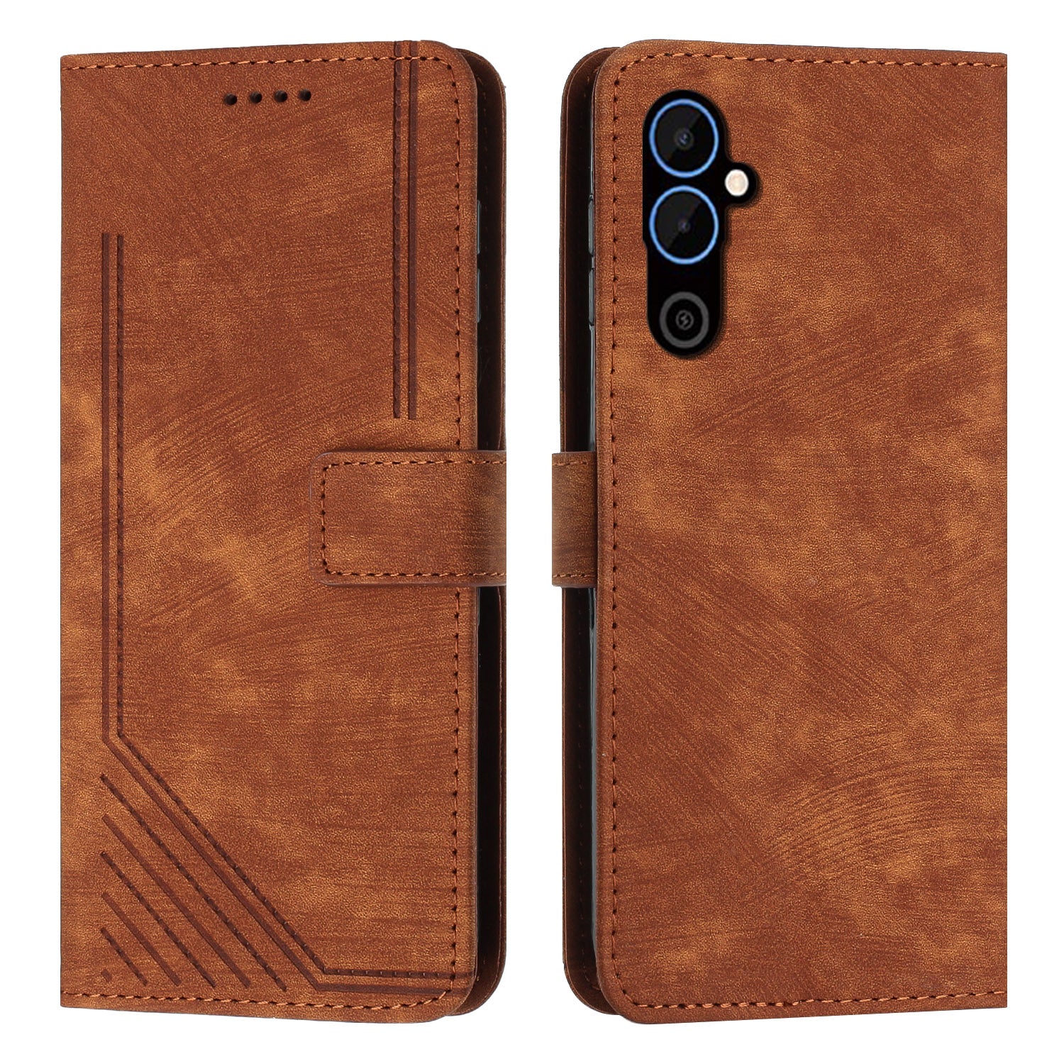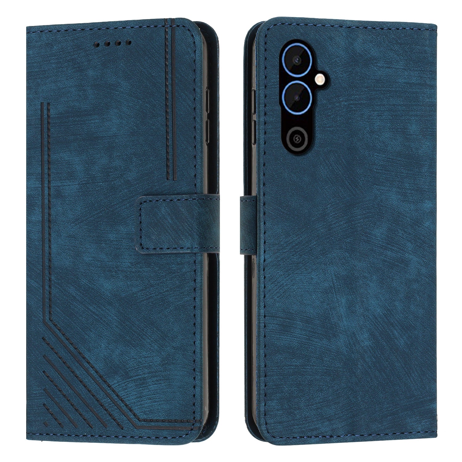 For Tecno Pova 4 4G PU Leather Flip Cell Phone Case Lines Imprinted Stand Wallet Skin-touch Protective Cover