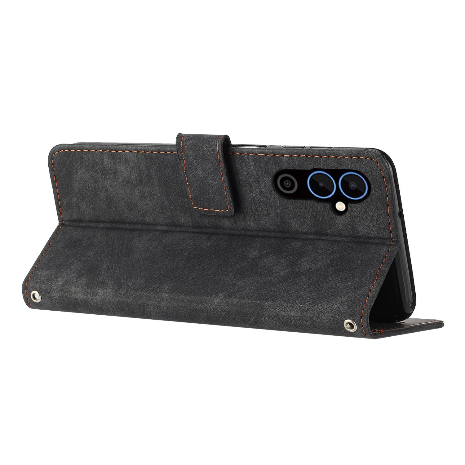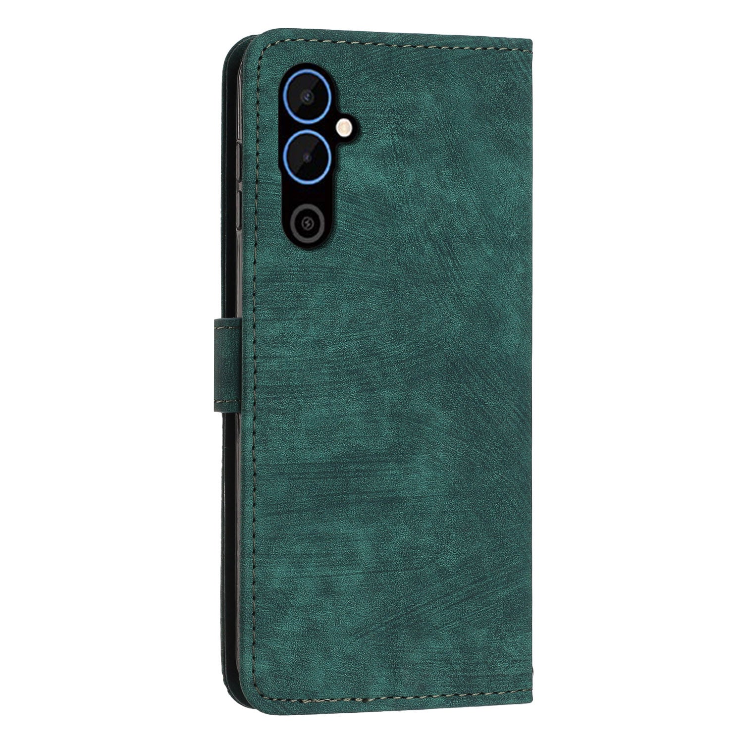 For Tecno Pova 4 4G Wallet Stand PU Leather Case Skin-touch Lines Imprinted Phone Cover
