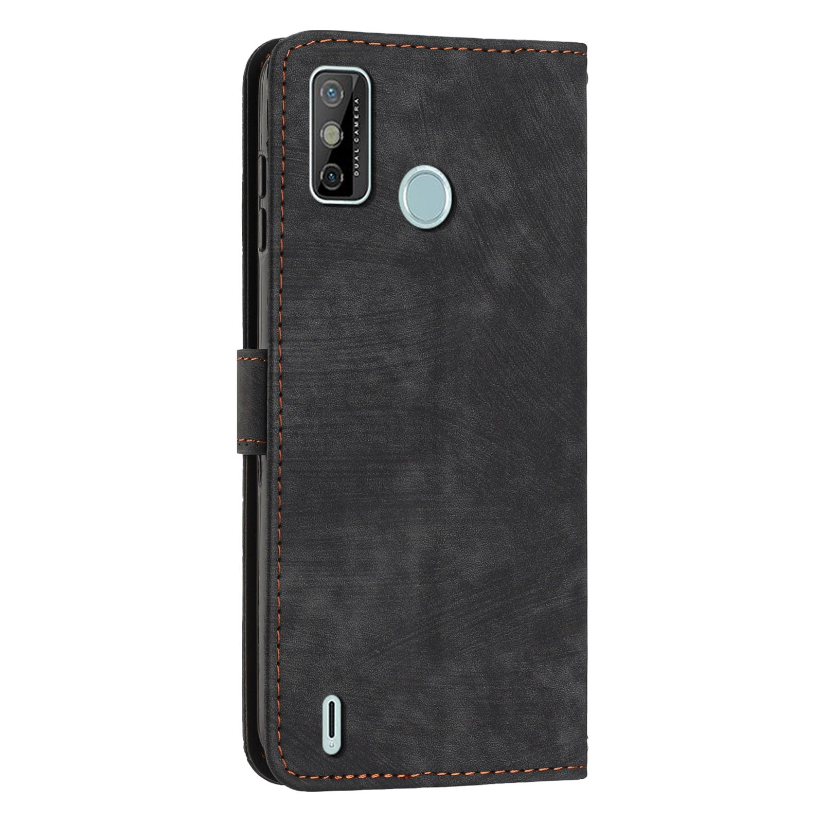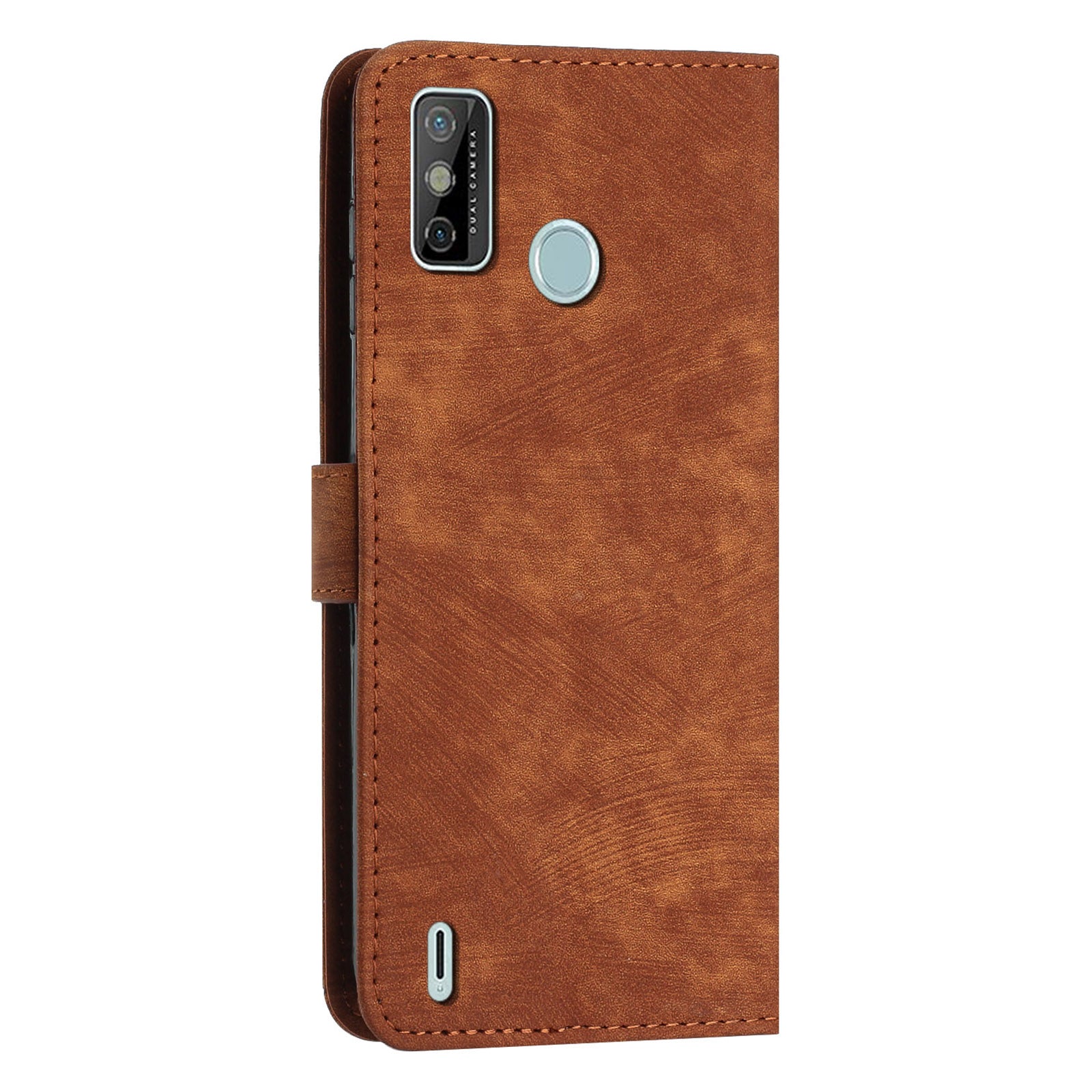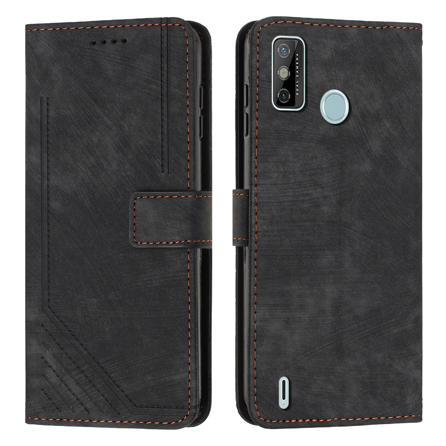 For Tecno Spark 6 Go / Spark Go 2021 / 2020 Leather Phone Wallet Case Lines Imprinted Stand Cover with Straps