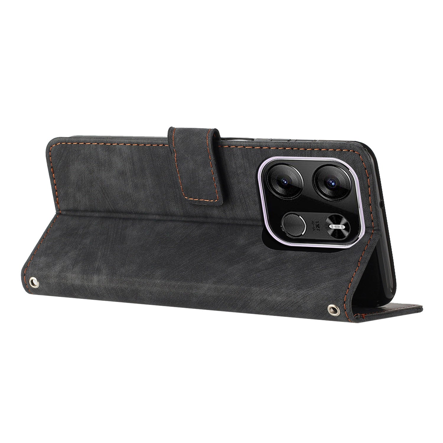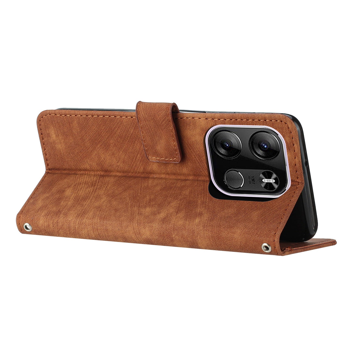 - The magnetic clasp closes easily and firmly to keep the phone, cash and cards in one place neatly and securely