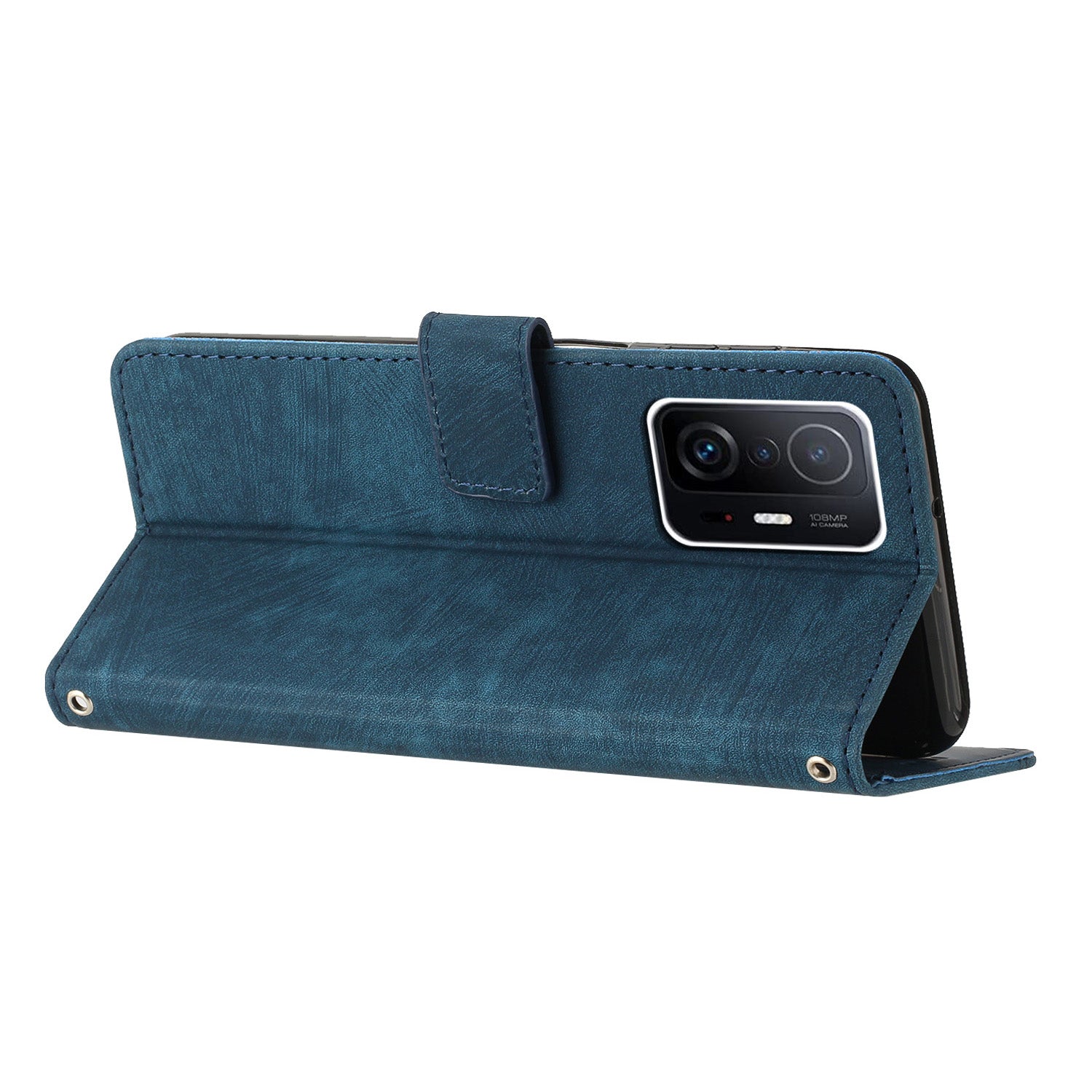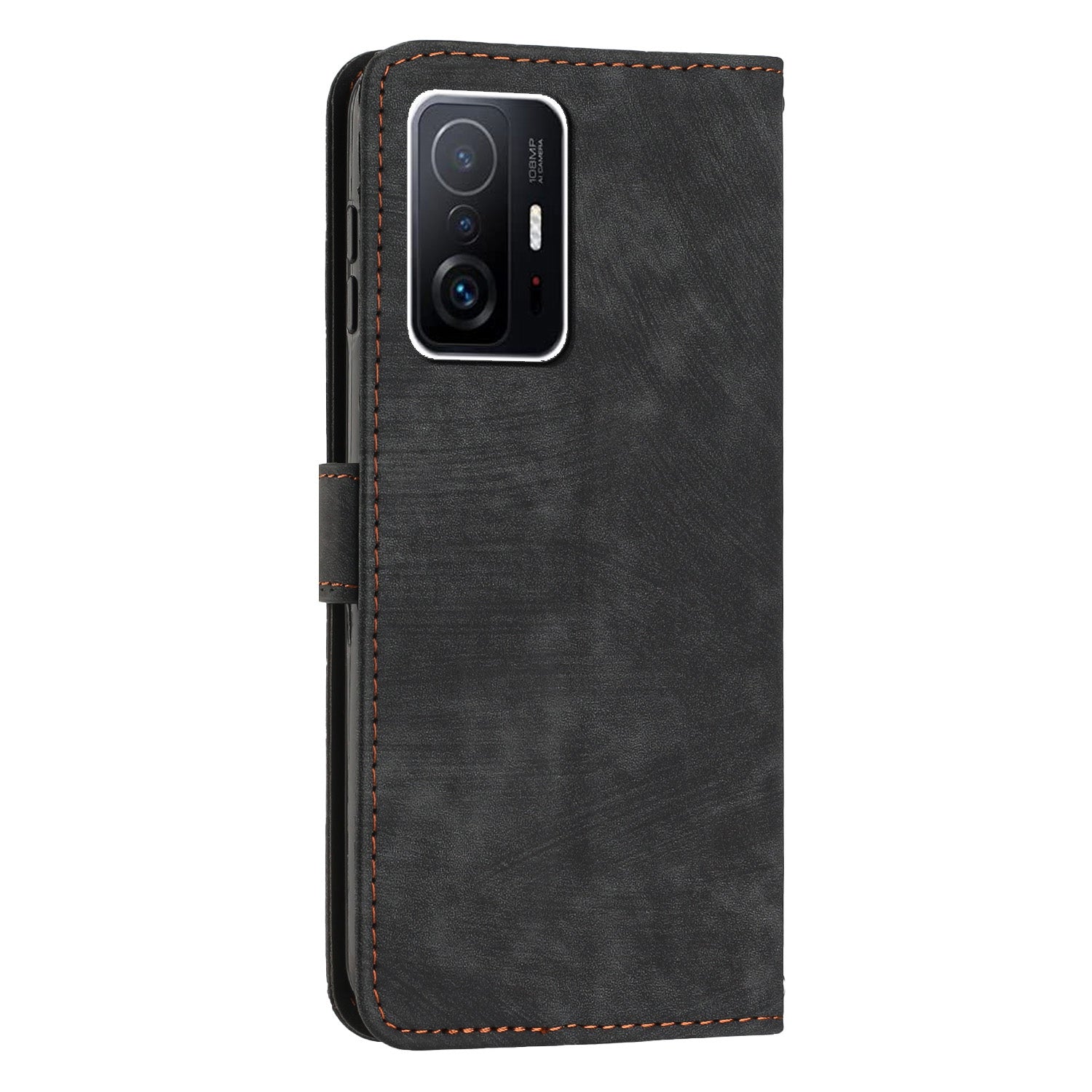 For Xiaomi 11T Pro 5G / 11T 5G Skin-touch Leather Wallet Full Protection Shell Lines Imprint Flip Stand Phone Case