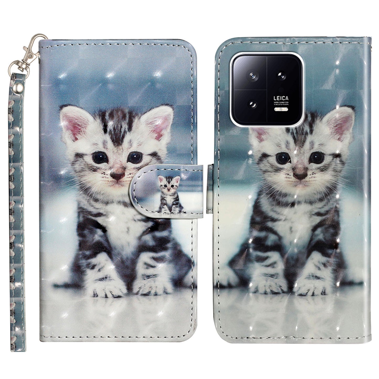 For Xiaomi 13 5G Shockproof Phone Case 3D Pattern Printing PU Leather Wallet Flip Stand Cover with Strap