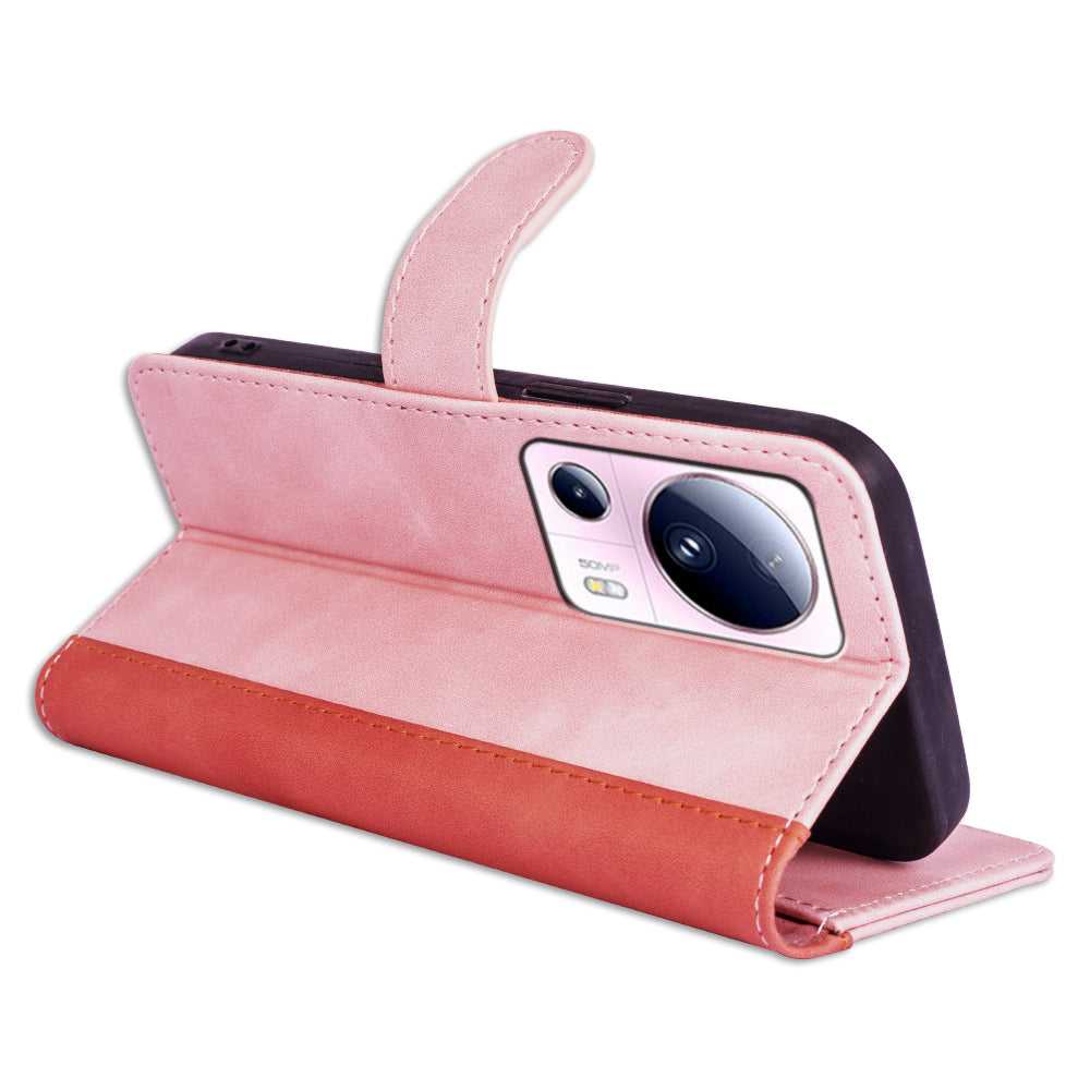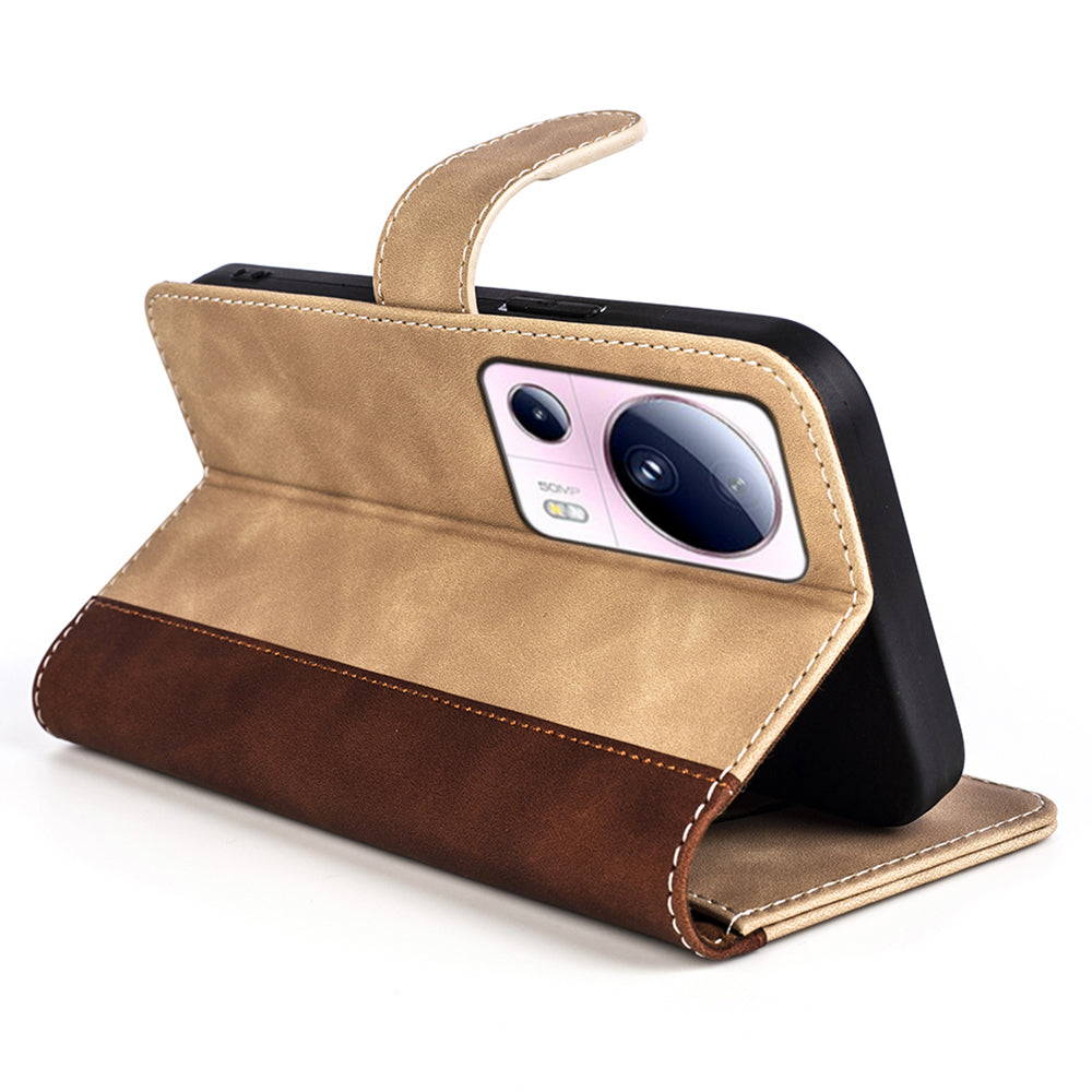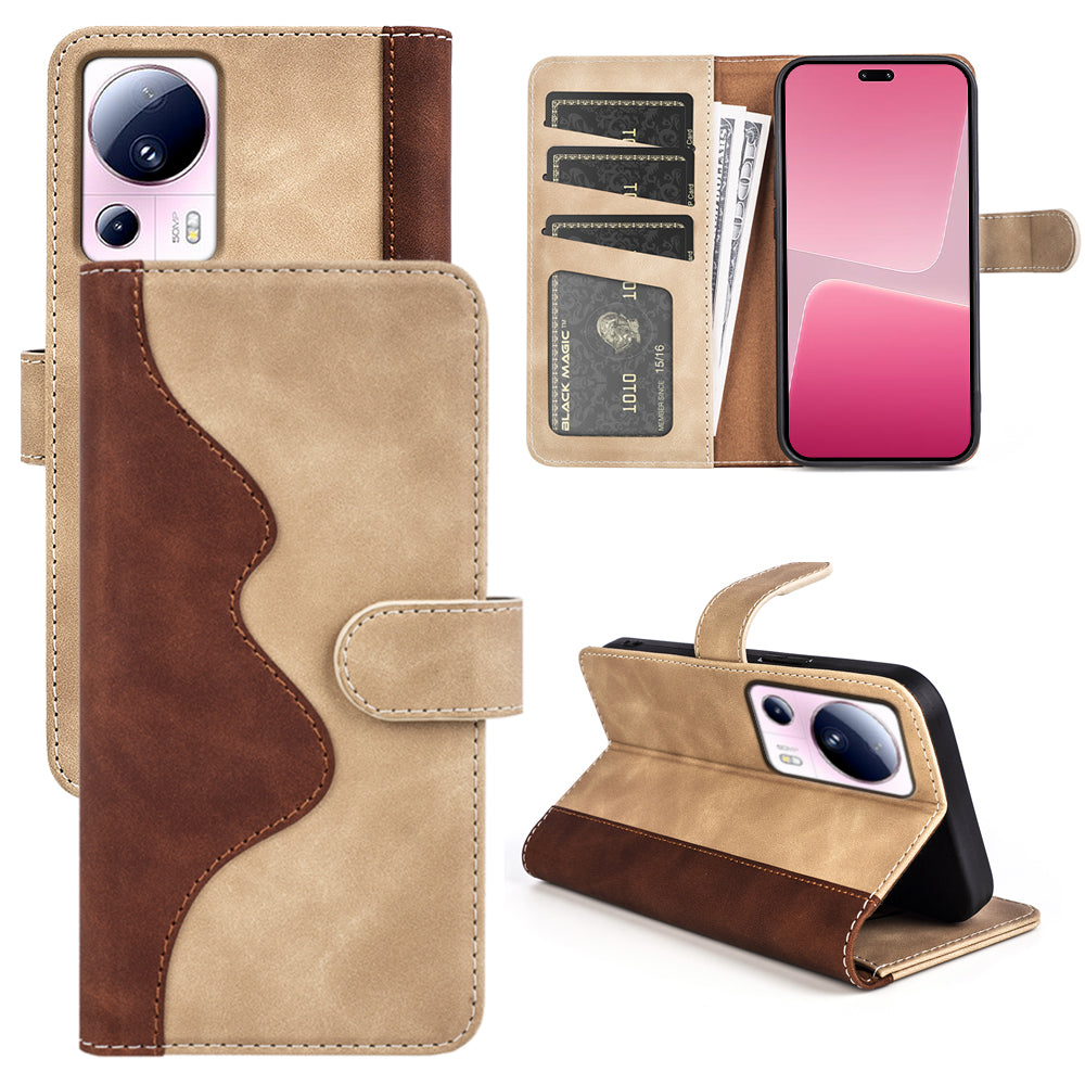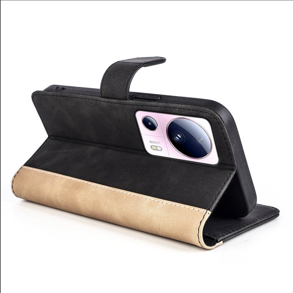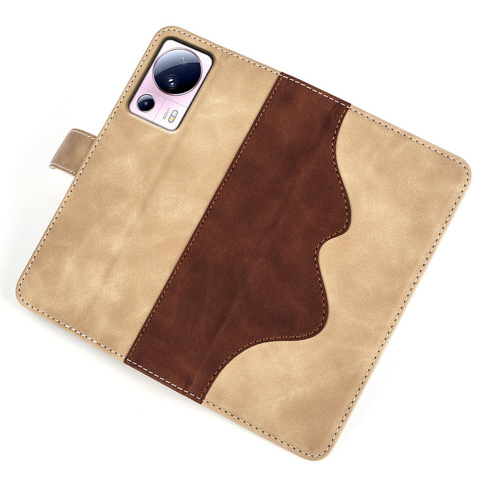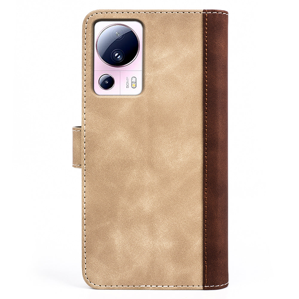For Xiaomi 13 Lite / Civi 2 5G Dual Color Splicing Shockproof Cover Leather Wallet Stand Phone Case
