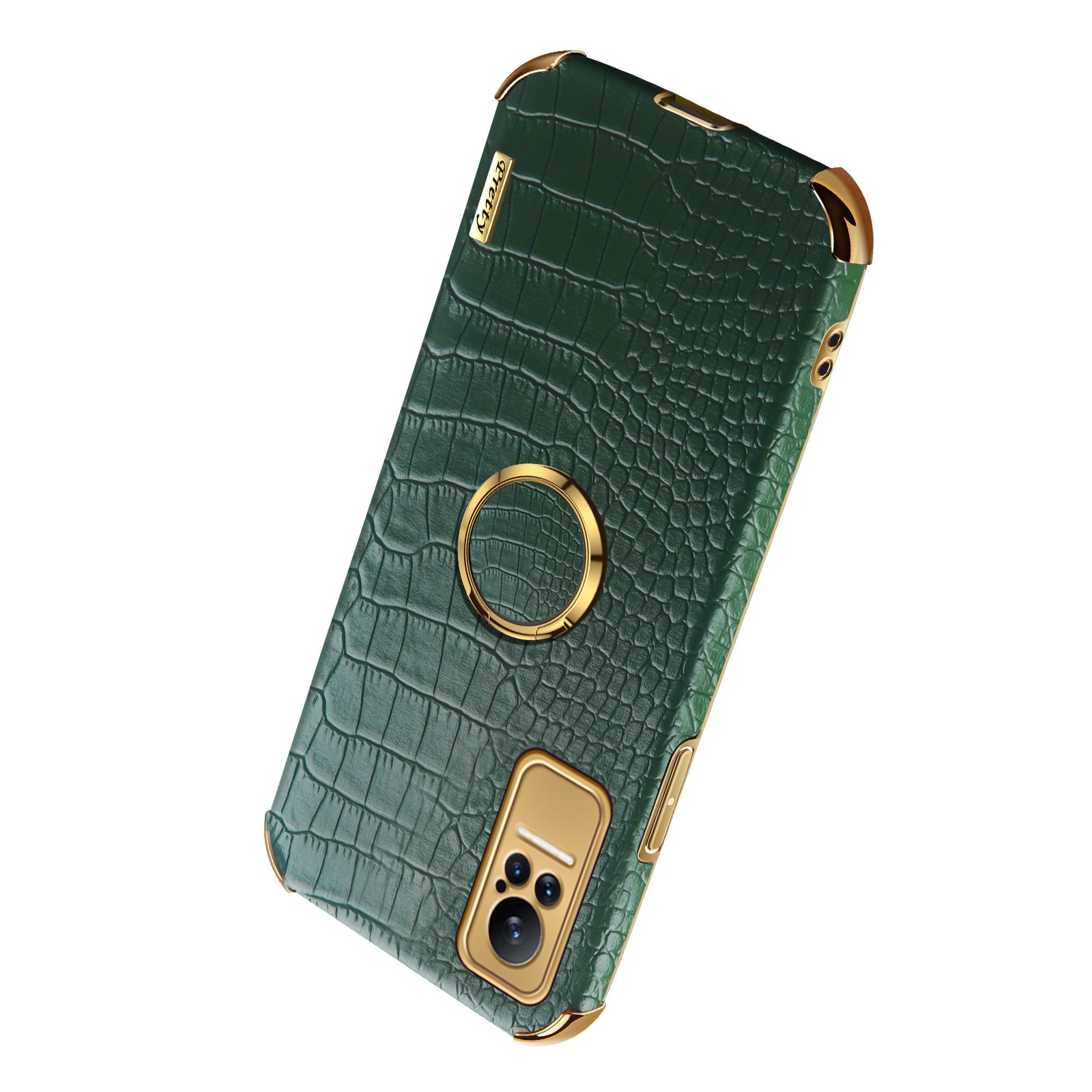 For Xiaomi Civi Smartphone Case Kickstand Electroplating Finger Ring Holder PU Leather Coated TPU Phone Back Shell