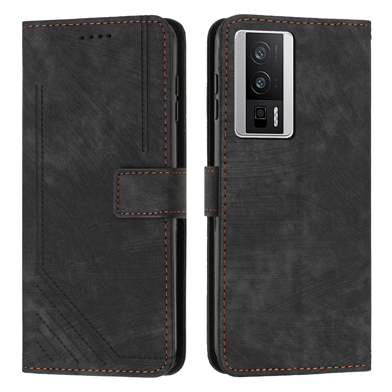 For Xiaomi Poco F5 Pro 5G / Redmi K60 Pro 5G / K60 5G Leather Phone Case Lines Imprinted Stand Phone Wallet Cover
