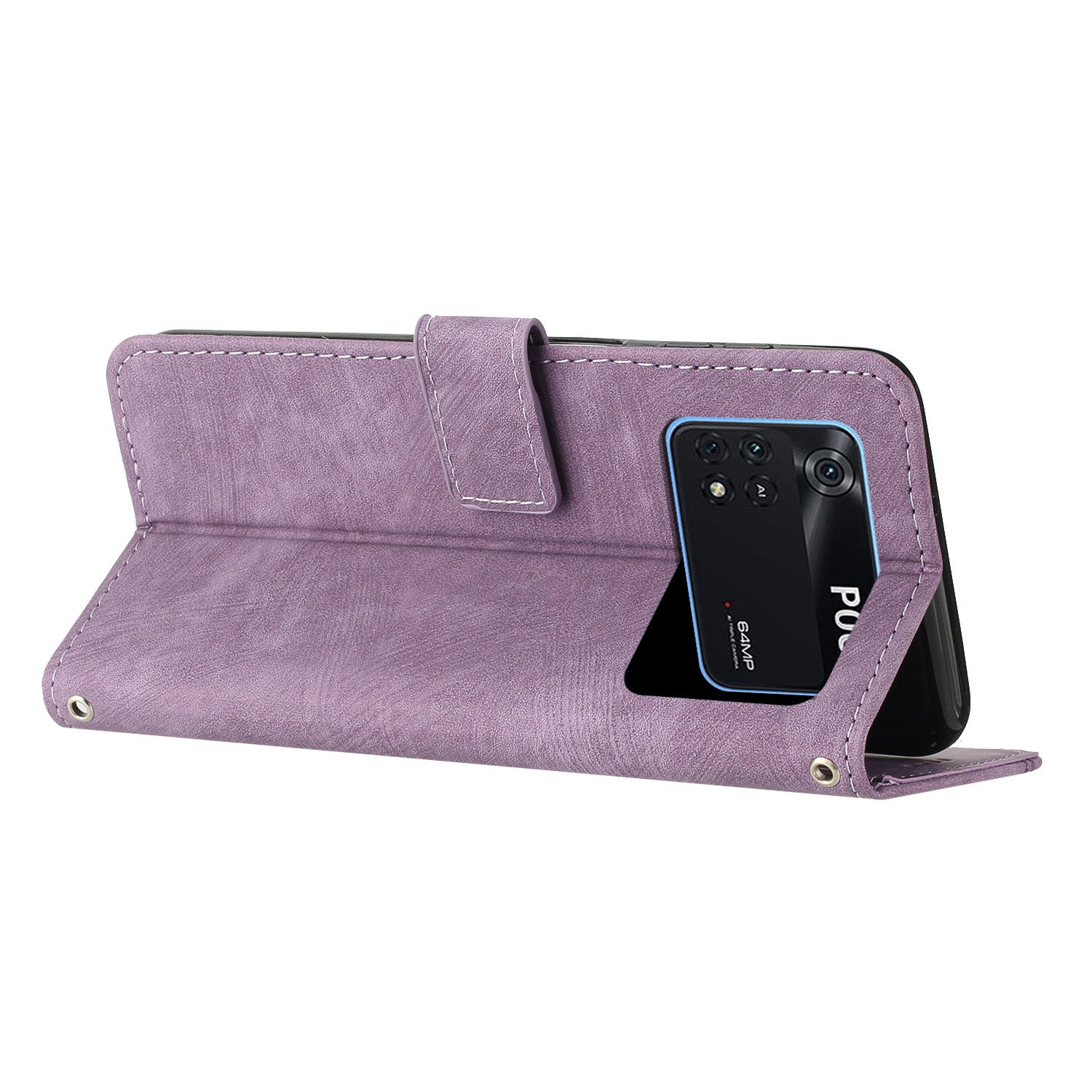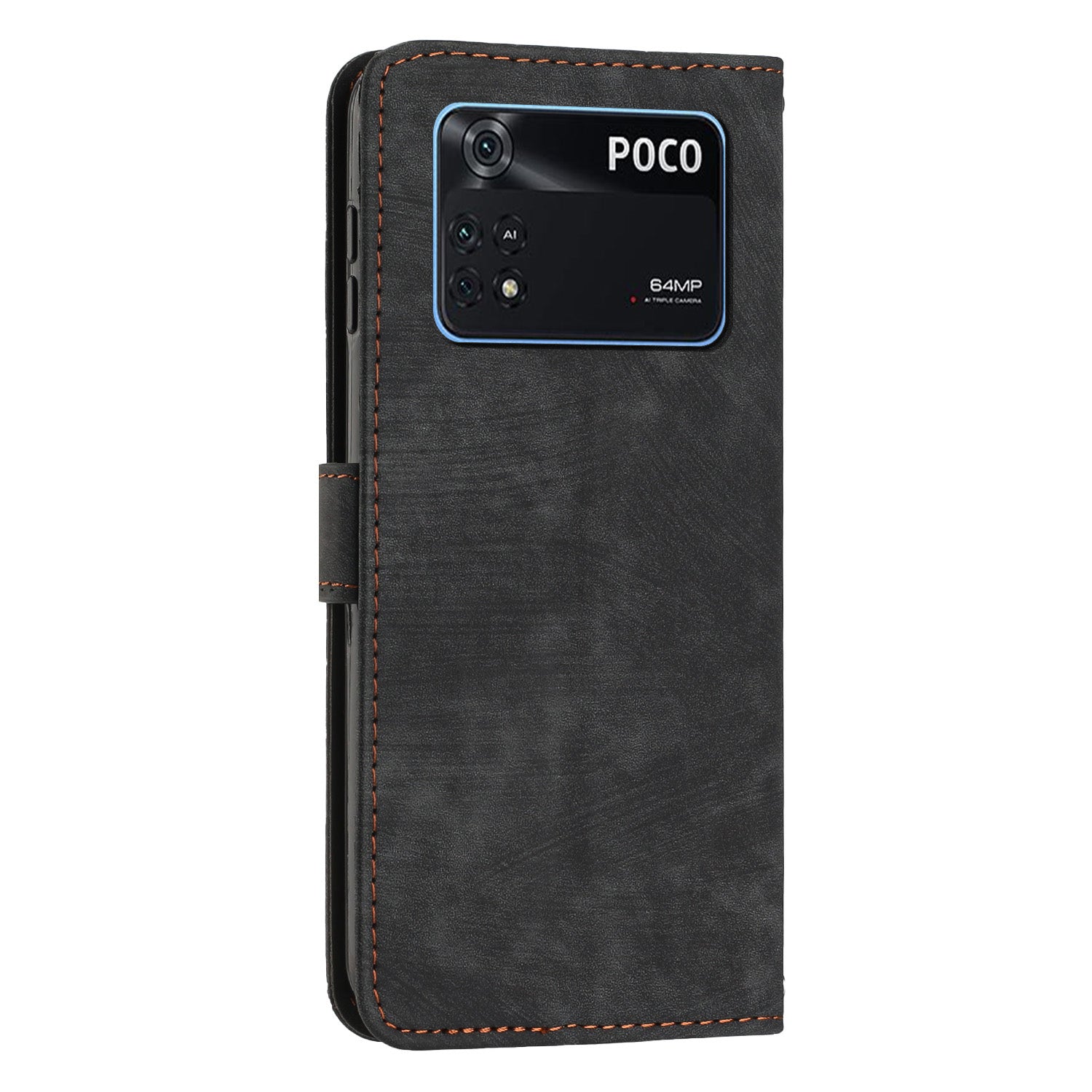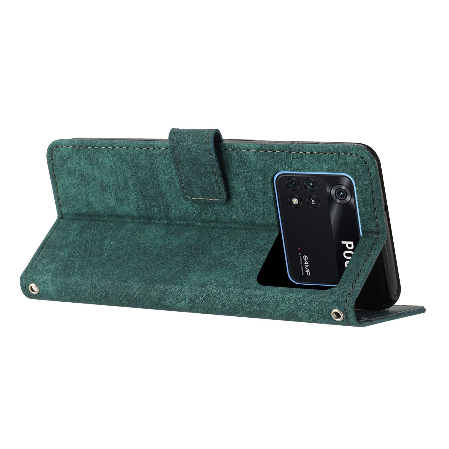 For Xiaomi Poco M4 Pro 4G Lines Imprinted Phone Case Skin-touch Leather Wallet Phone Cover with Stand