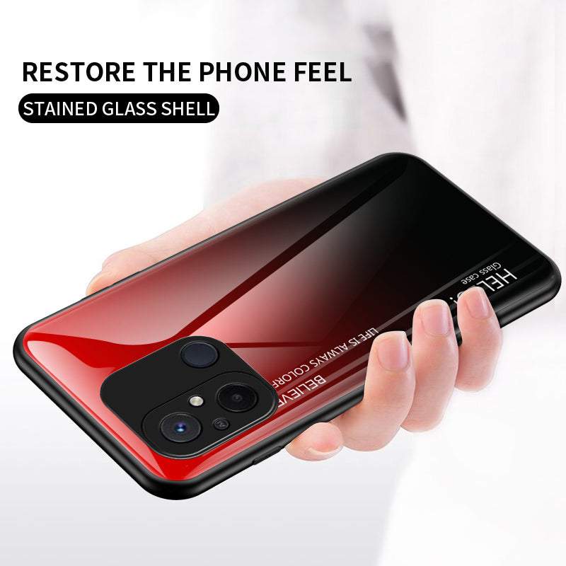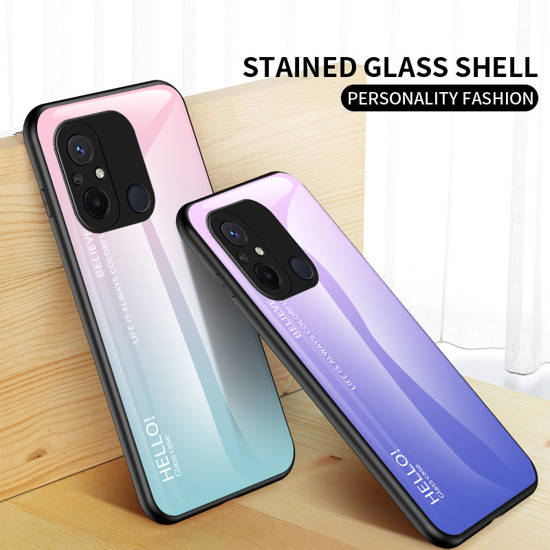 For Xiaomi Redmi 12C 4G Gradient Color Phone Case Tempered Glass+PC+TPU Cover