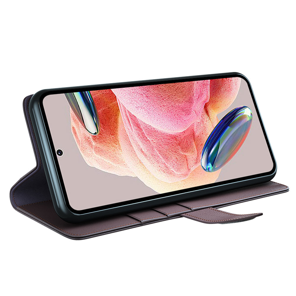 For Xiaomi Redmi Note 12 4G Genuine Cow Leather Wallet Phone Case Flip Stand Shockproof Cover