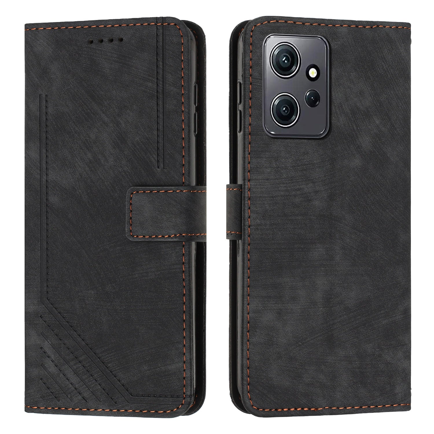 For Xiaomi Redmi Note 12 4G PU Leather Flip Cover Lines Imprinted Folio Stand Wallet Phone Case