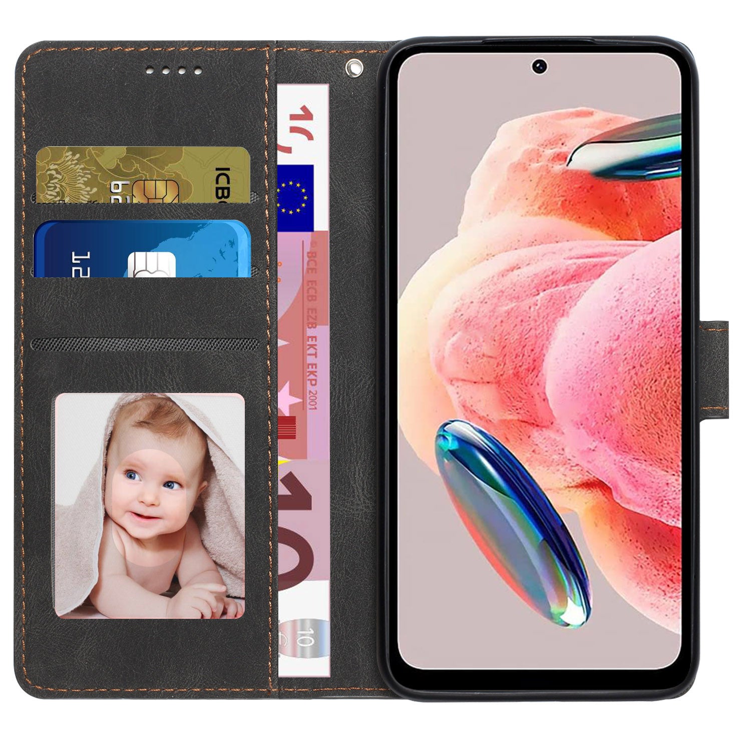 - Keep closing by a magnetic clasp, protecting your phone, card and cash safe inside the phone case