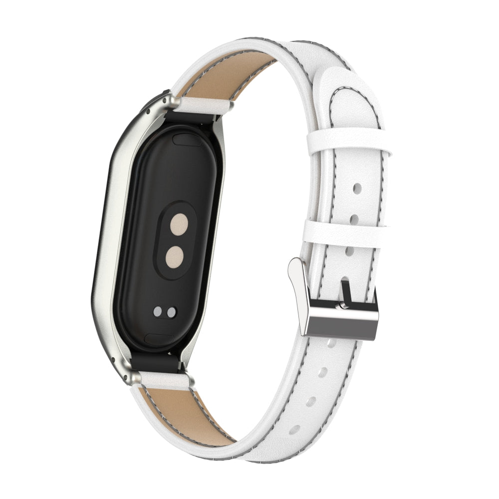 For Xiaomi Smart Band 8 Stitching Microfiber Leather Watch Band Replacement Strap with Metal Frame Case