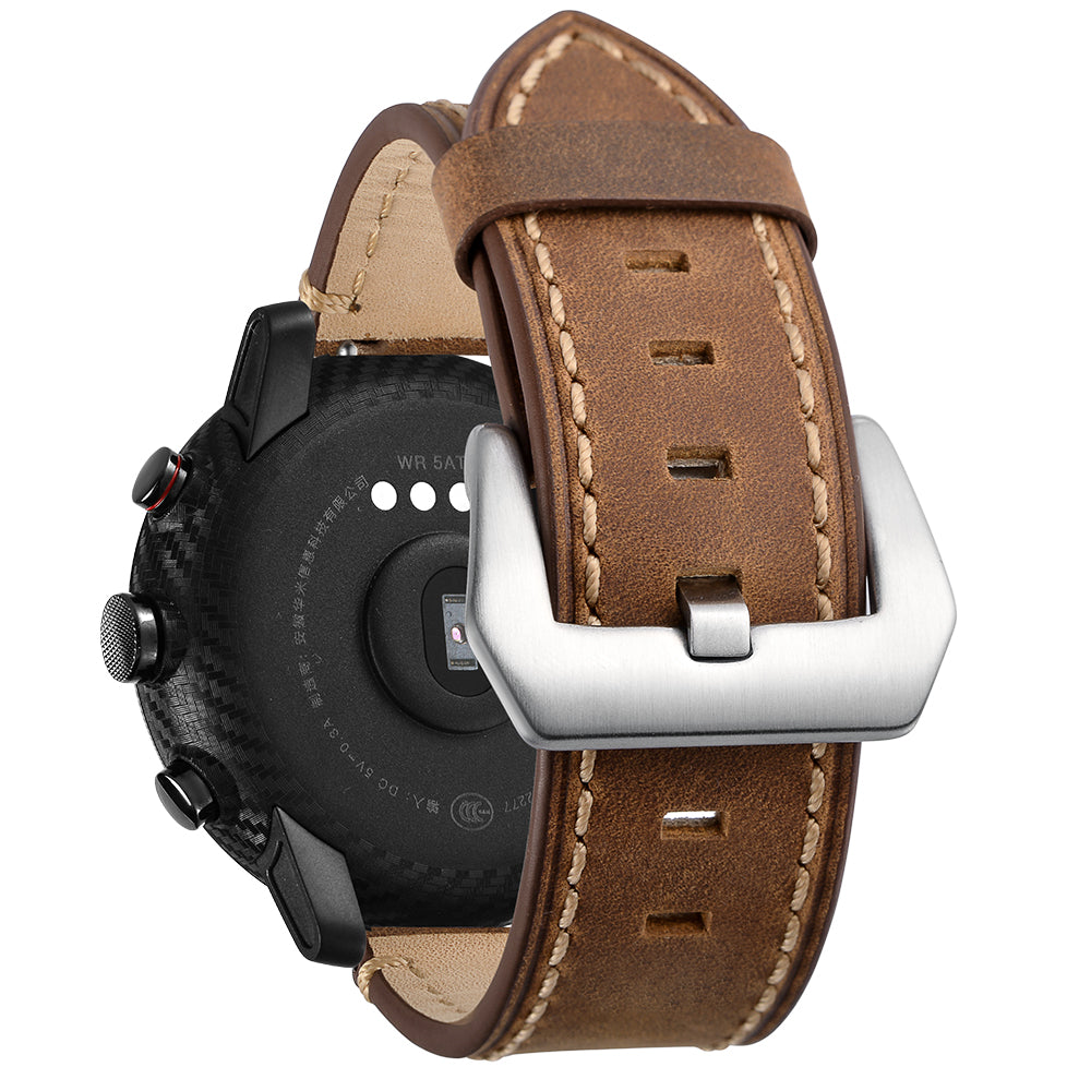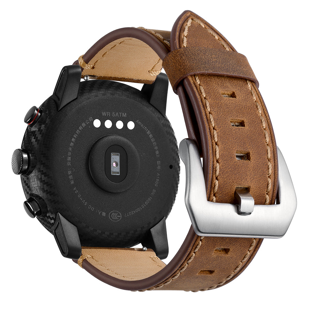 Genuine Leather Smart Watch Band for Huami Amazfit Watch 2/1 22mm- Brown
