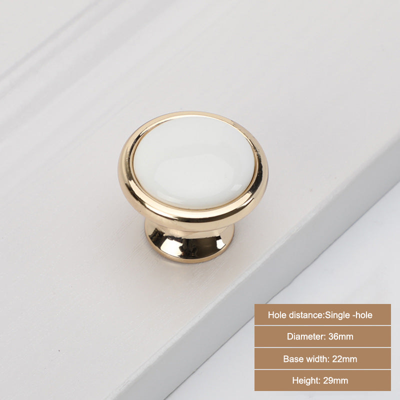Golden Zinc Alloy Ceramic Furniture Handle Wardrobe Cabinet Knob Drawer Pull Hardware, Single Hole