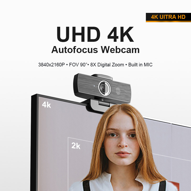 H500 3840*2160p UHD 4K 60FPS Webcam Autofocus Web Camera PC Camera with Microphone