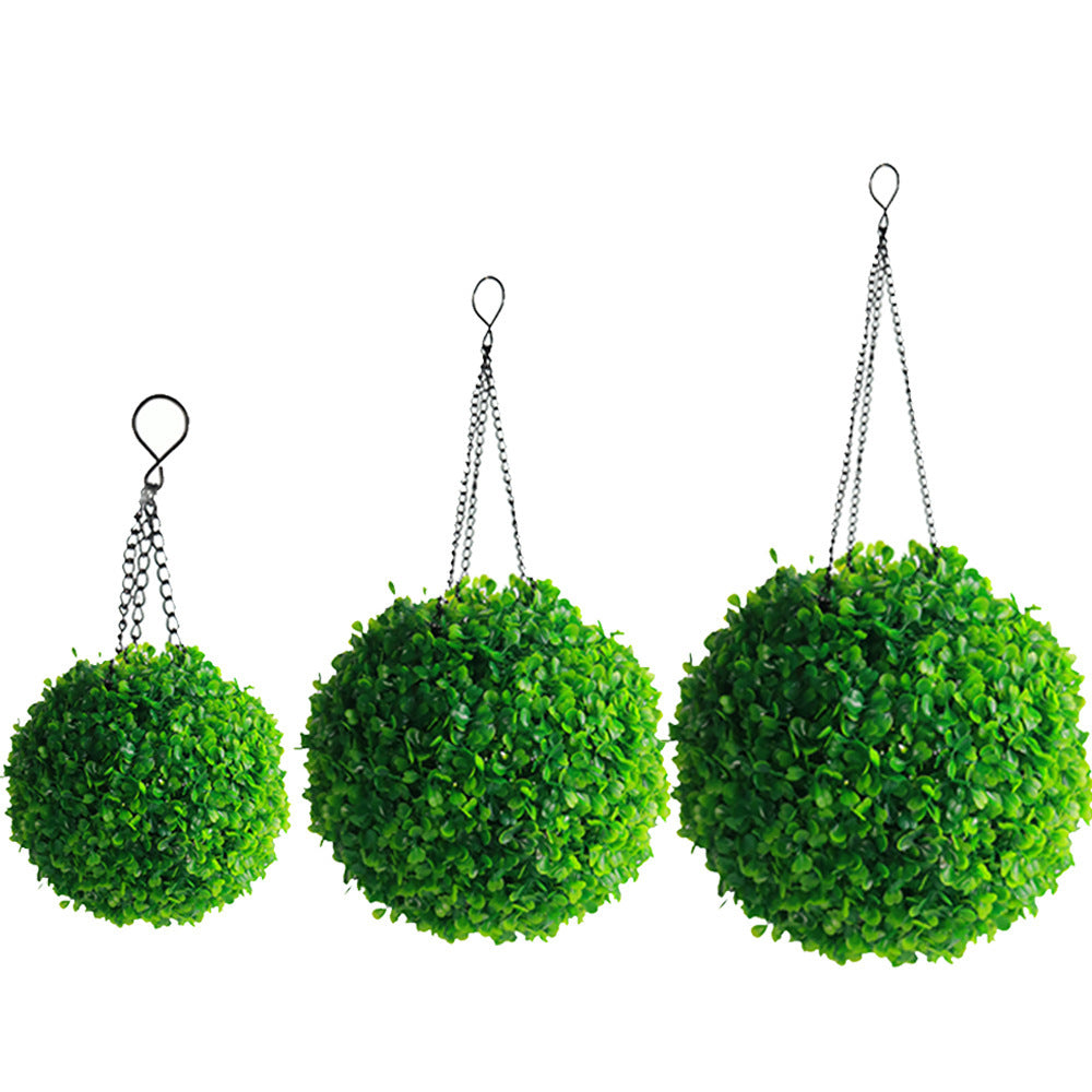 Home LED Grass Ball Chandelier Outdoor Garden Decor Artificial Plant Ball Decorative Solar Lamp, Size: L