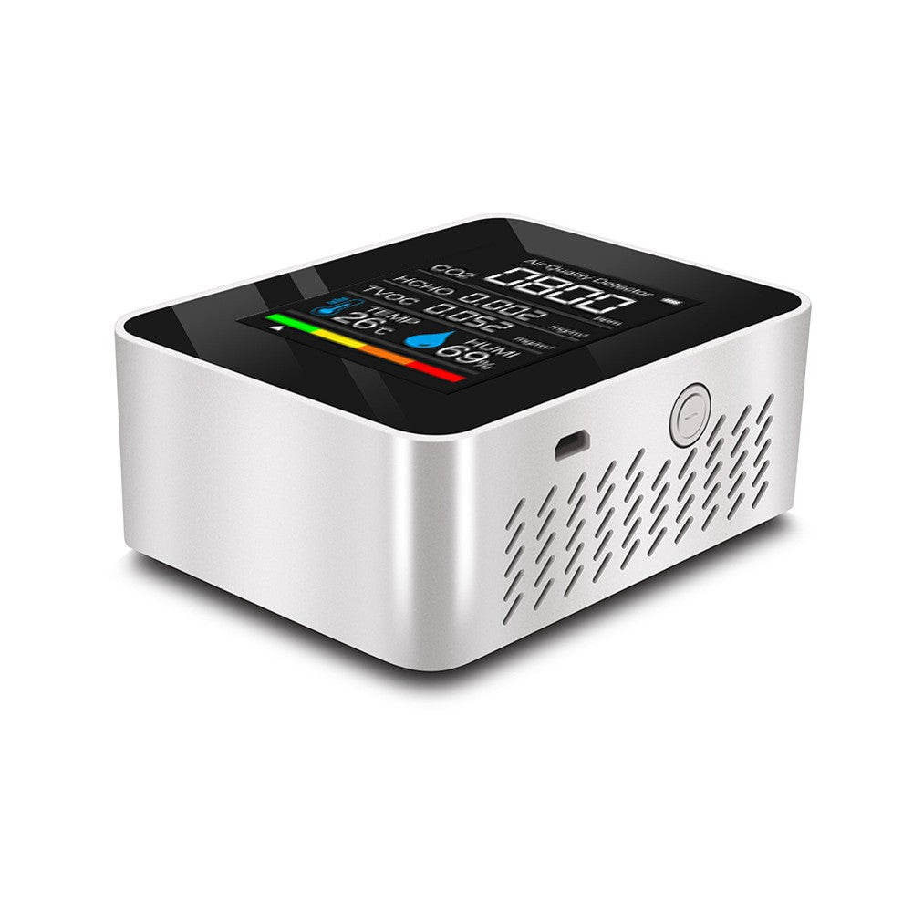 - Large LCD display, you can see the electricity quantity, CO2 value, TVOC value, HCHO value, temperature, and humidity clearly