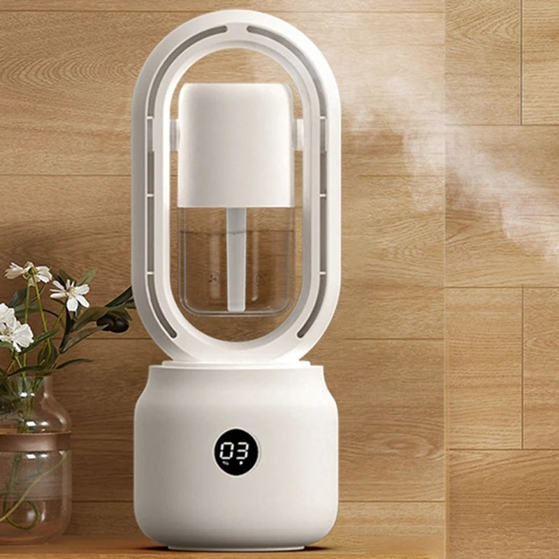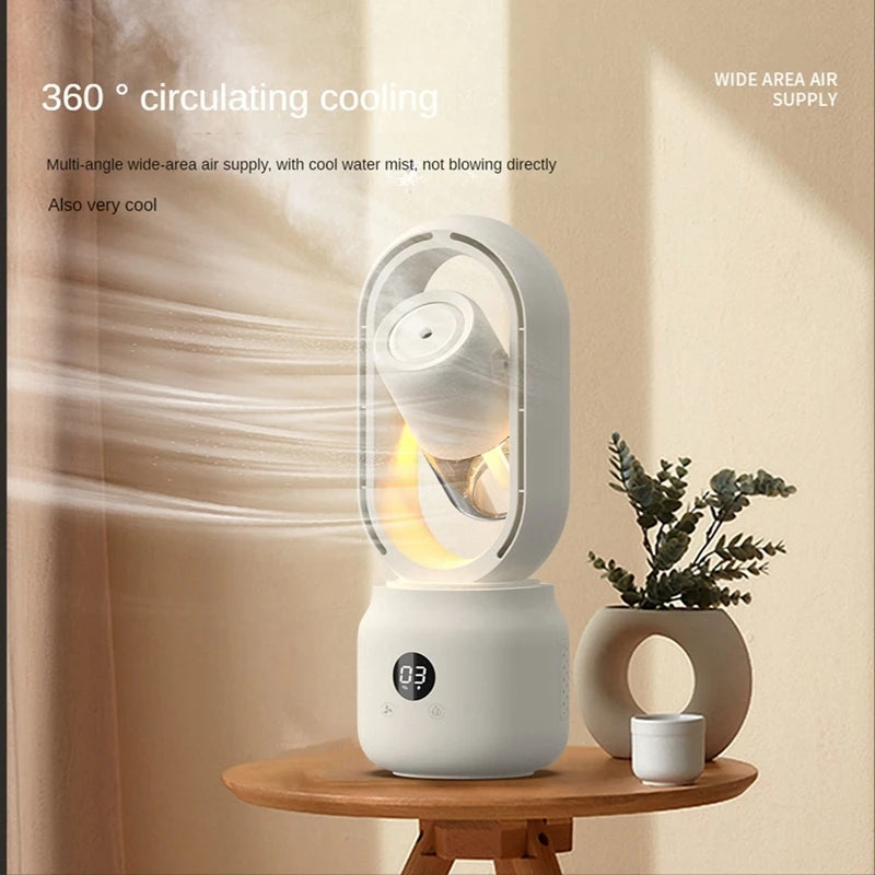 HX-872 USB Rechargeable Desktop Bladeless Fan Humidifier Summer Mute Rotatable Cooling Fan