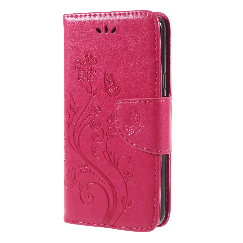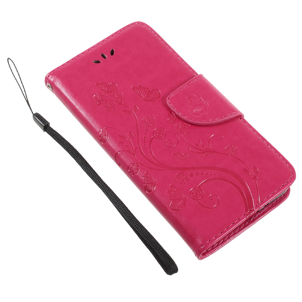Imprint Butterfly Flowers Magnetic Wallet Leather Stand Shell for LG Q6 M700N (EU Version) / Q6 Plus